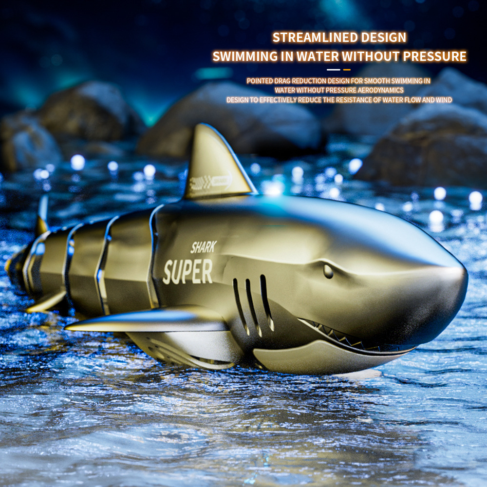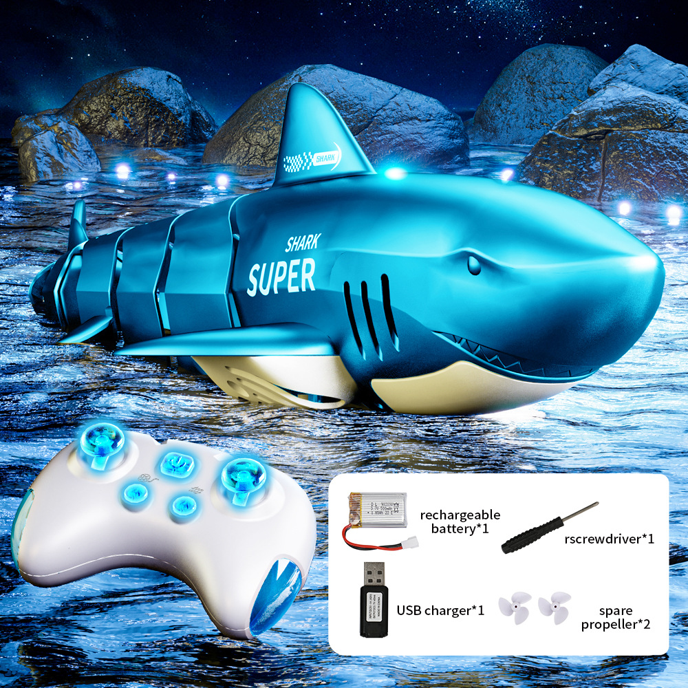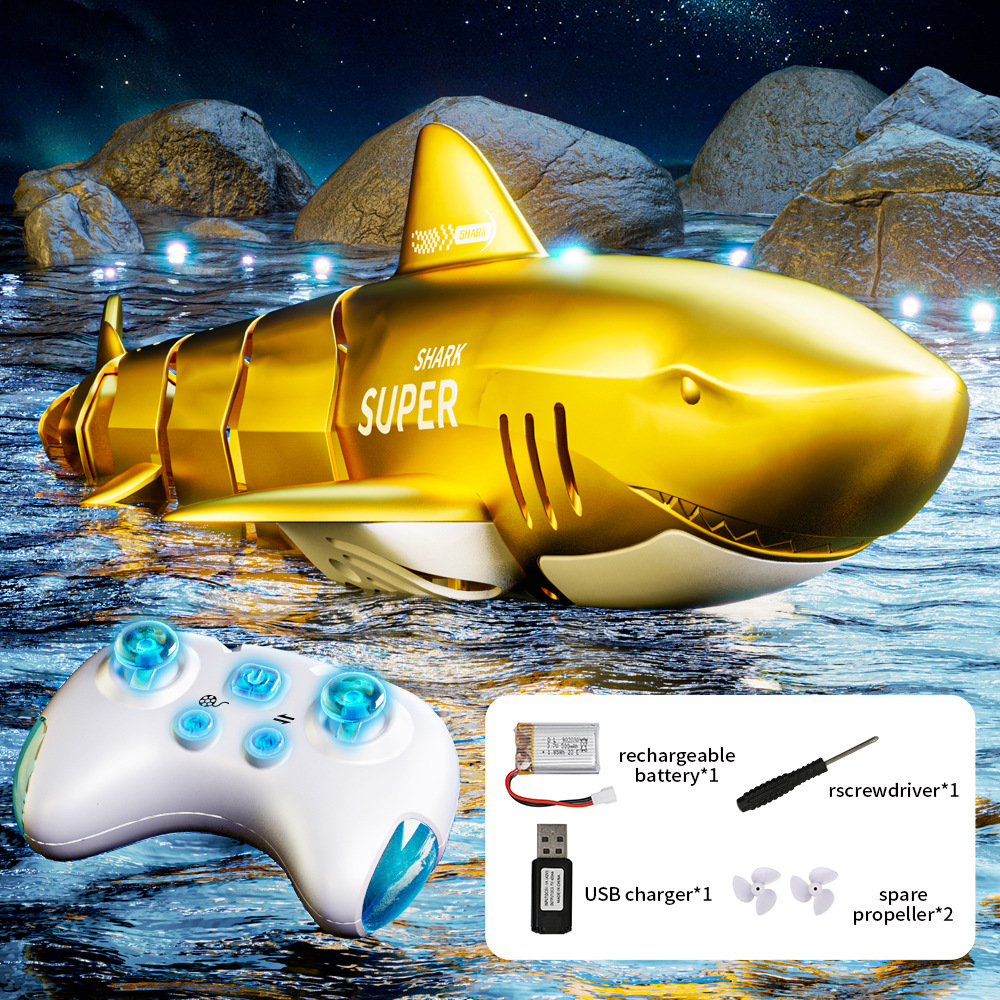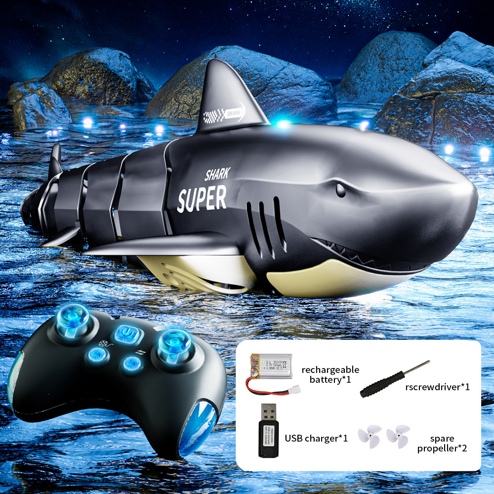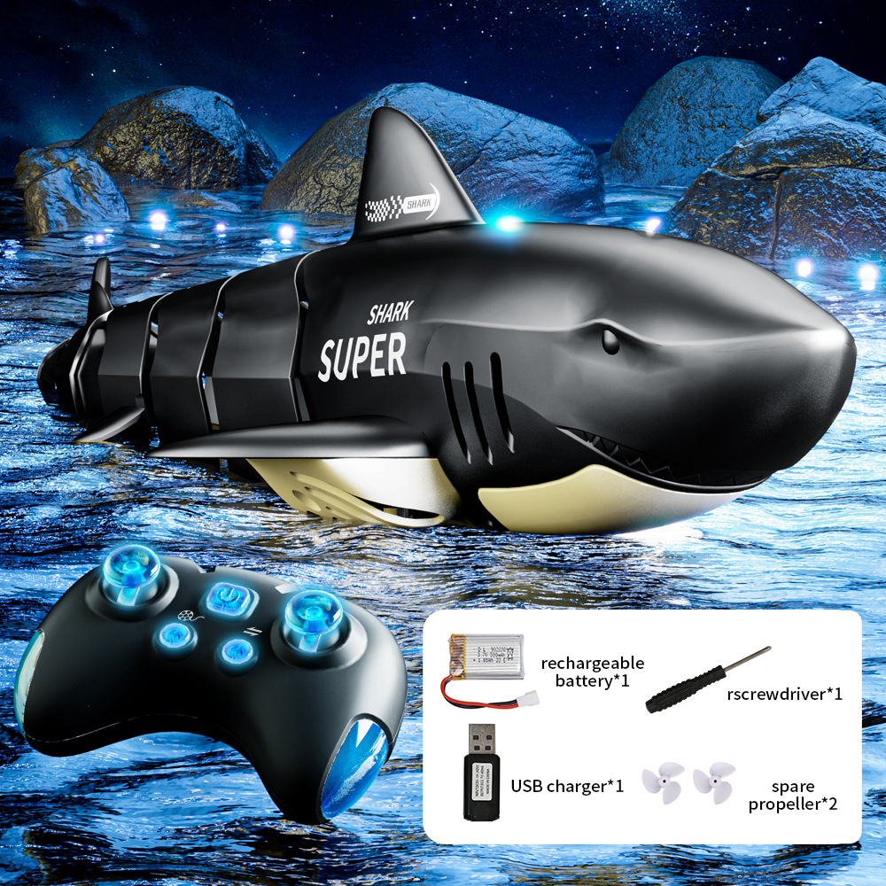 2.4G仿真电动遥控鲨鱼鲸鱼鳄鱼儿童充电遥控船戏水玩具