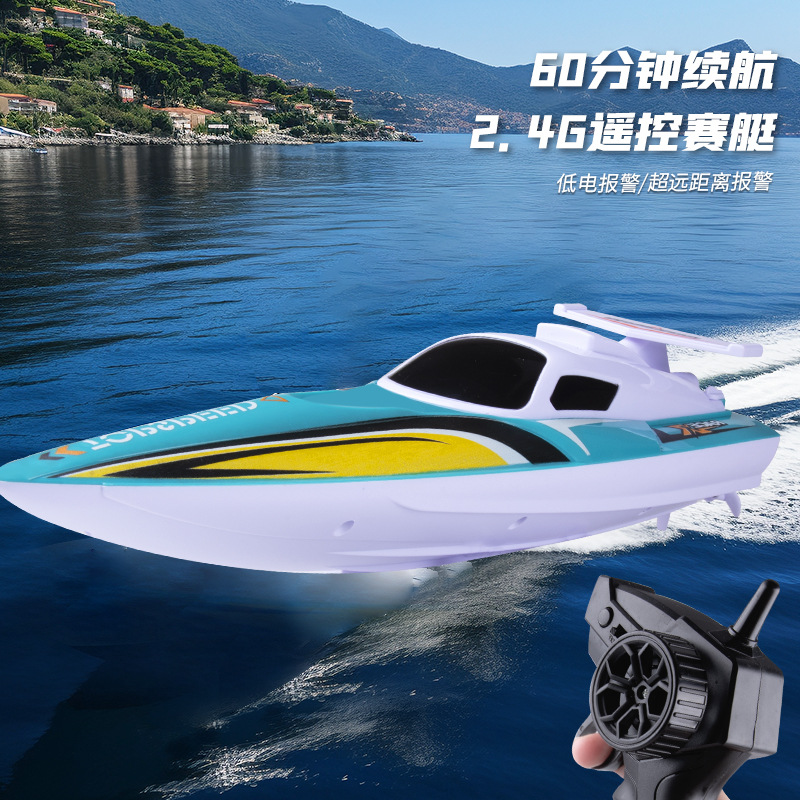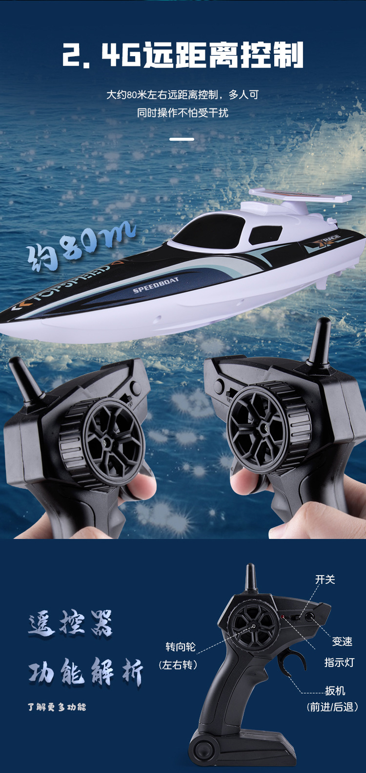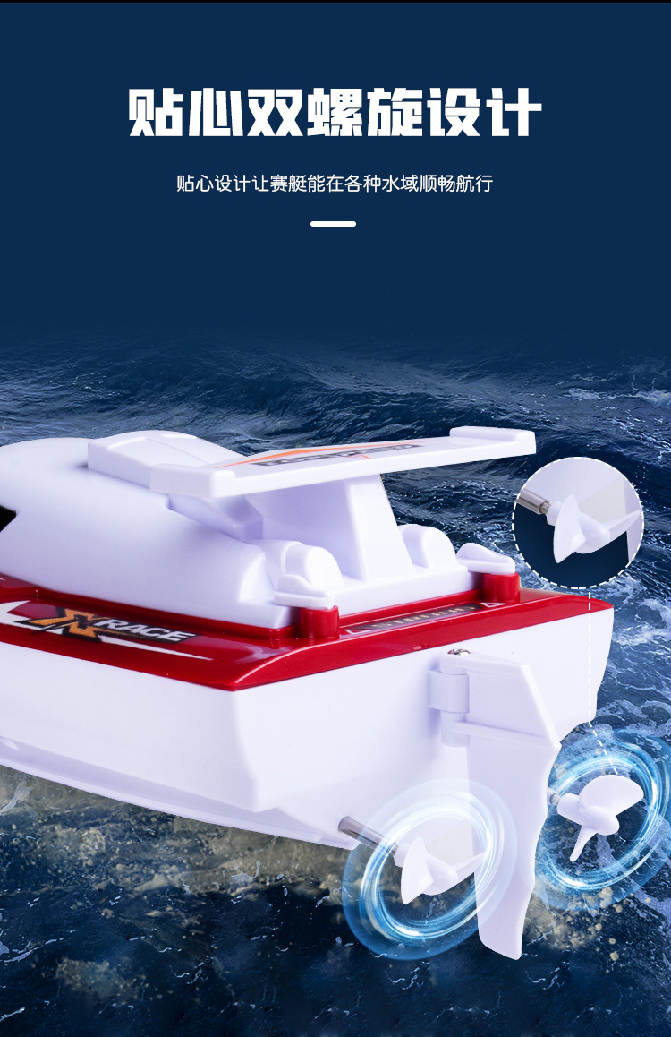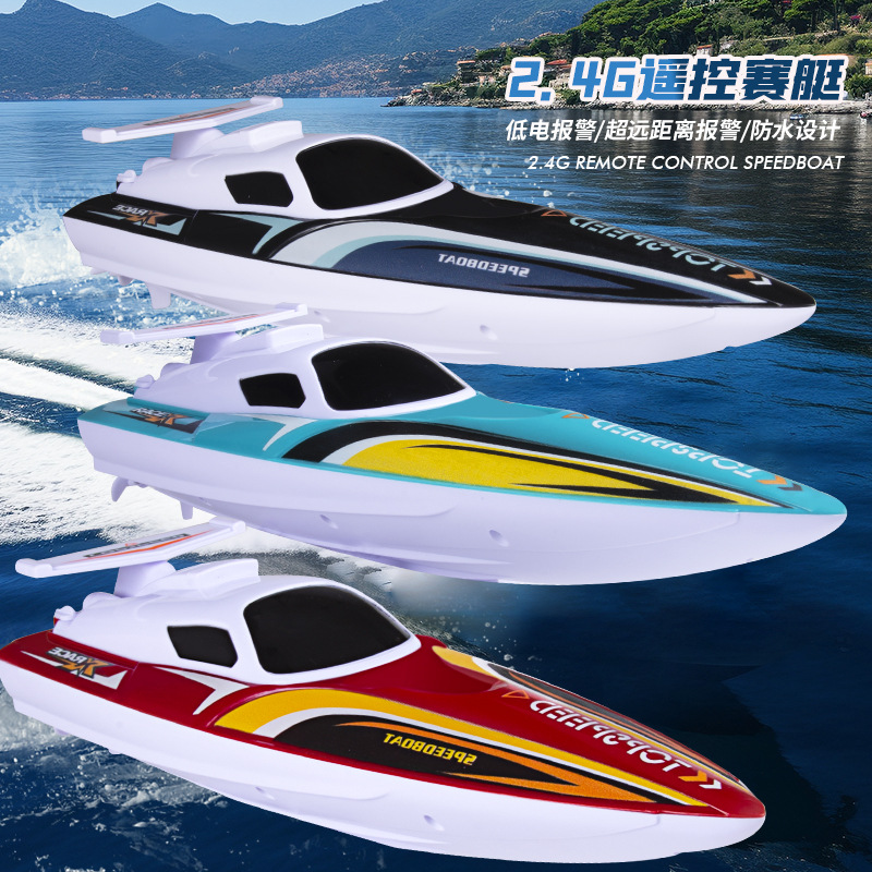 跨境2.4G儿童遥控玩具船快艇戏水儿童电动艇军舰游艇玩具船DIY