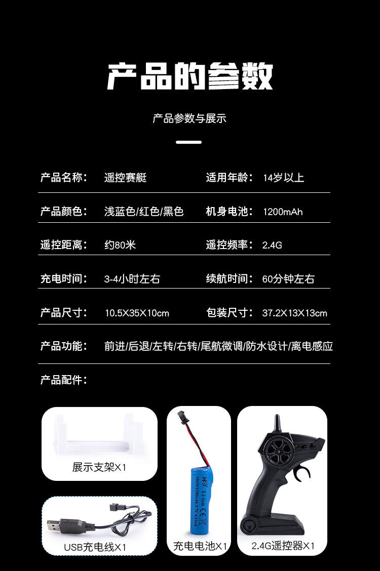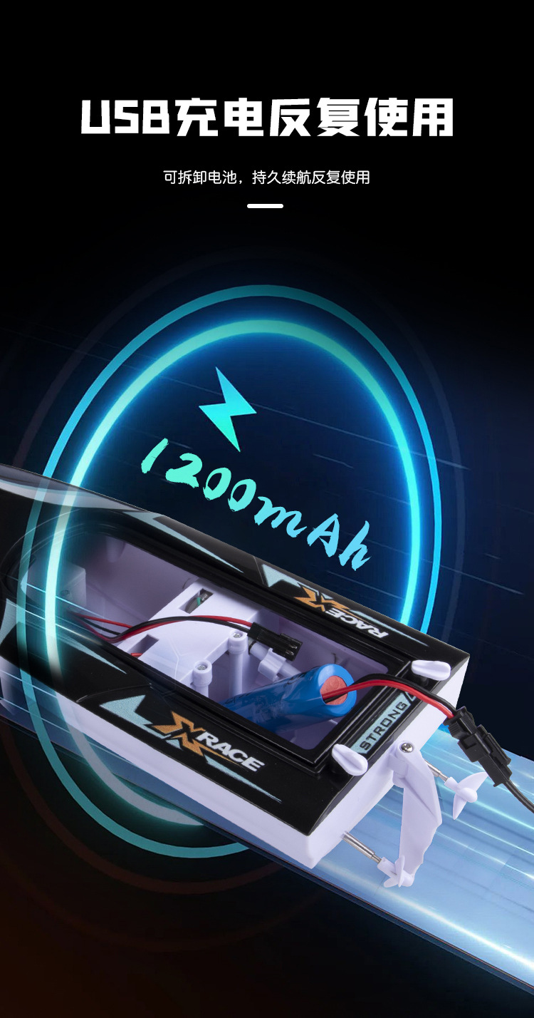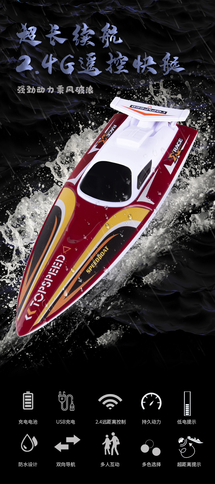 跨境2.4G儿童遥控玩具船快艇戏水儿童电动艇军舰游艇玩具船DIY