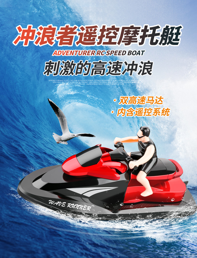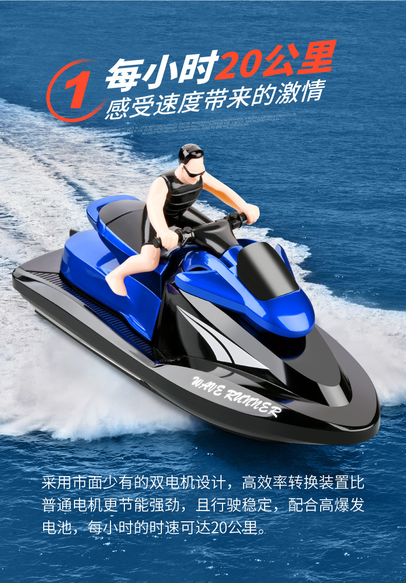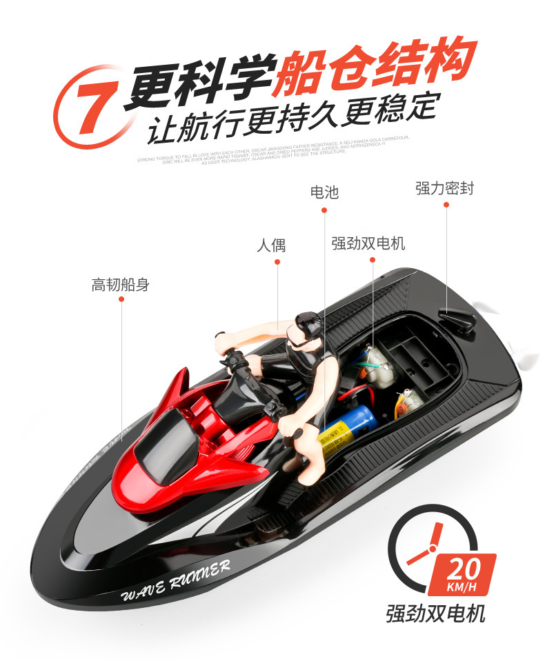 跨境竞技遥控船无线电动长续航高速2.4G快艇水上船模防水儿童玩具