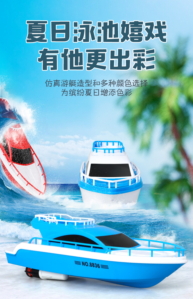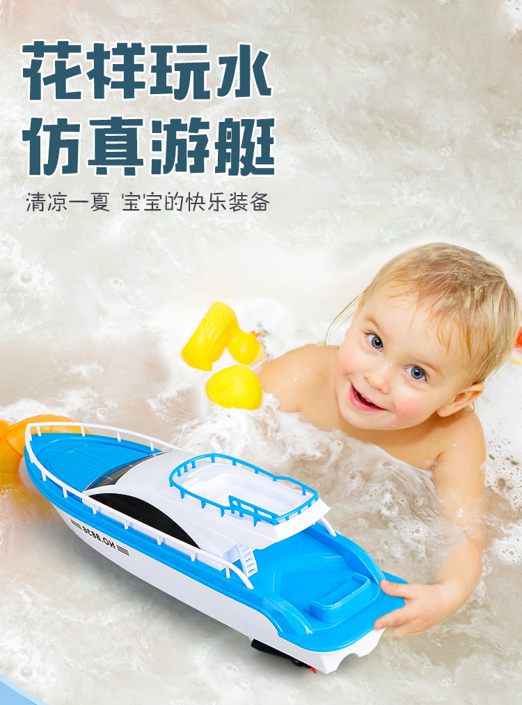 儿童电动船玩具游艇模型仿真快艇男孩宝宝洗澡轮船可下水非遥控