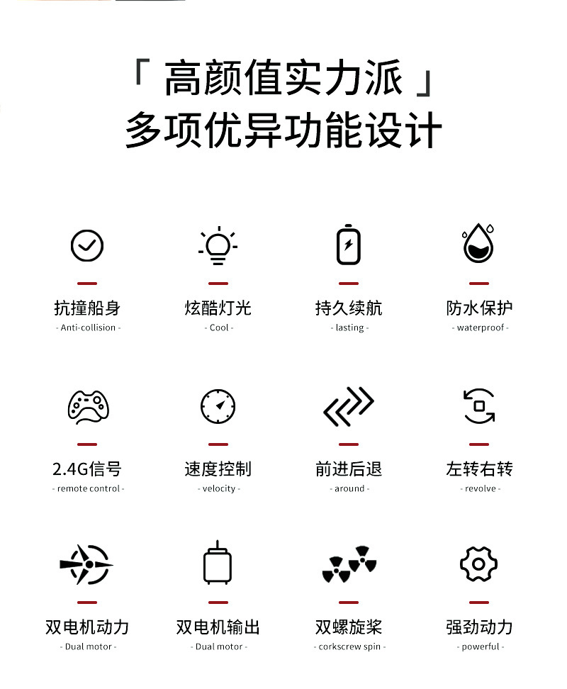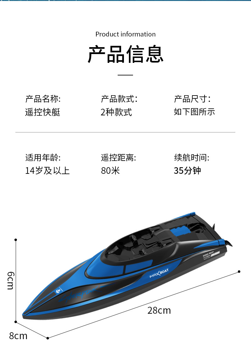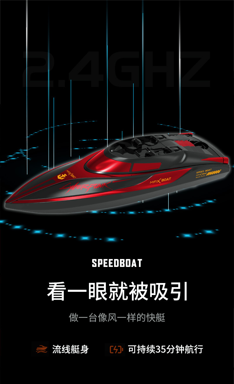 2.4G遥控船持久续航20分钟高速赛艇夏天水上快艇男孩航模玩具