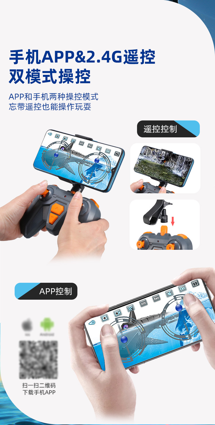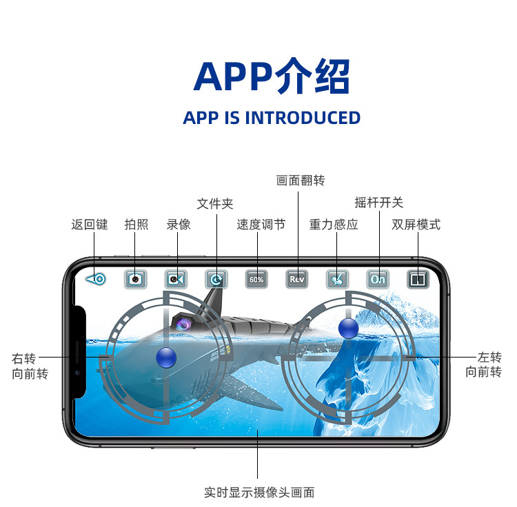 蓝鲨鱼遥控+app+摄像头款(内置锂电池+配件)