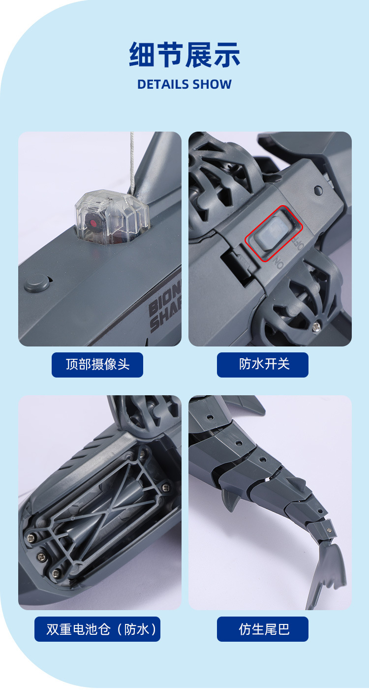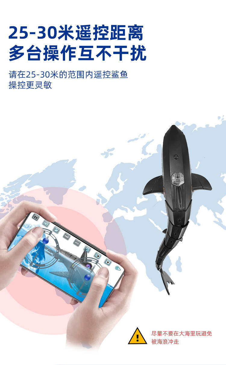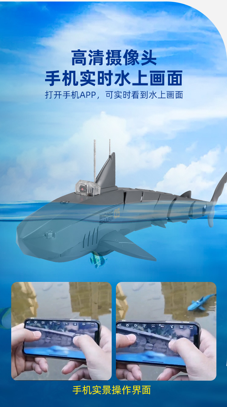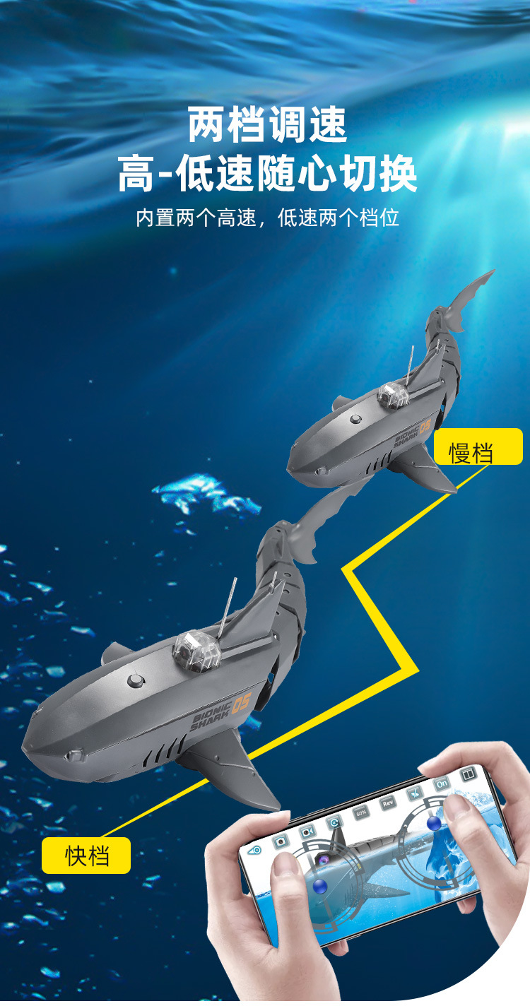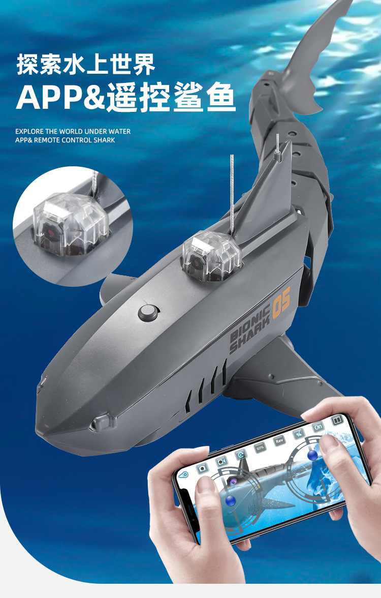鲨鱼遥控手机app摄像头30W充电动可下水摇摆的巨齿鲨模型儿童玩具