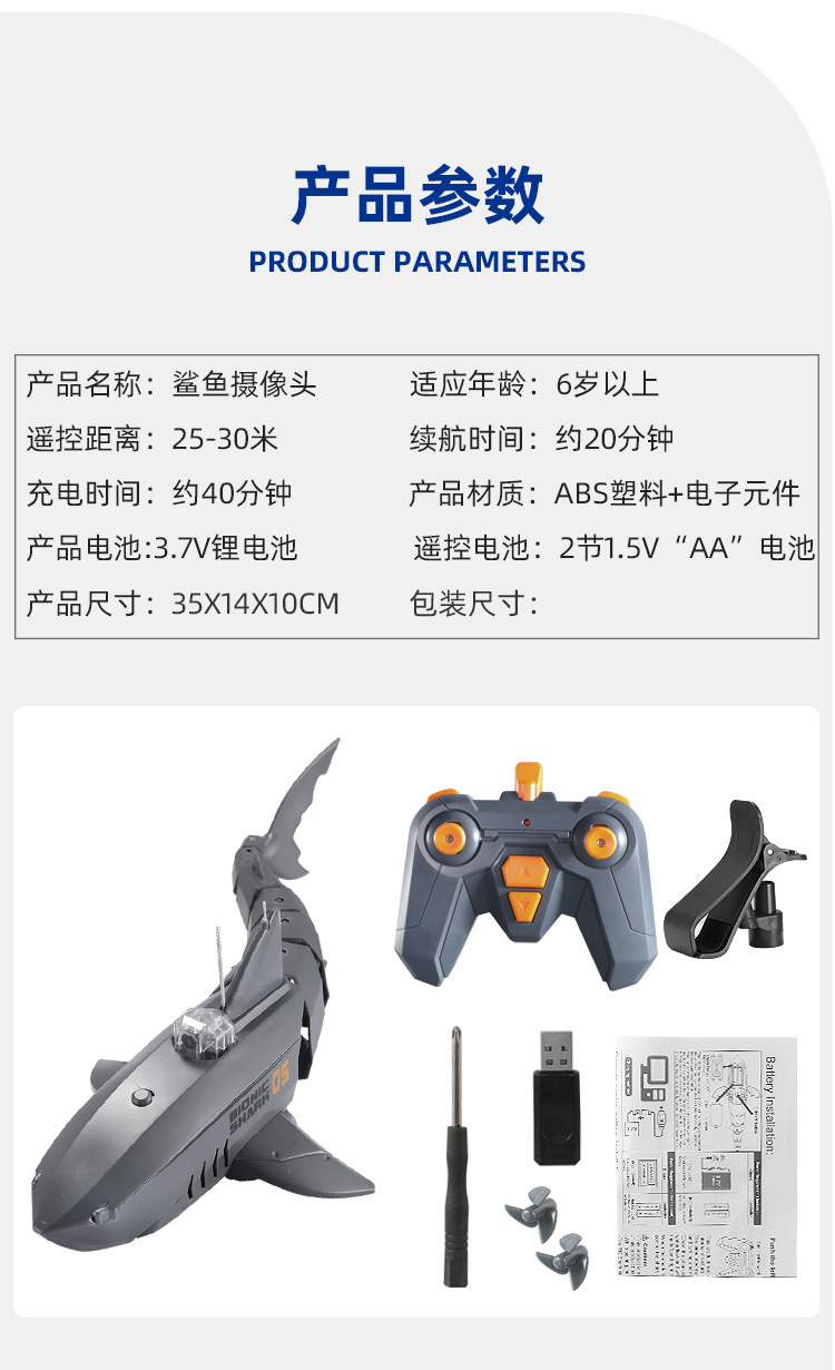灰鲨鱼遥控+app+摄像头款(内置锂电池+配件)