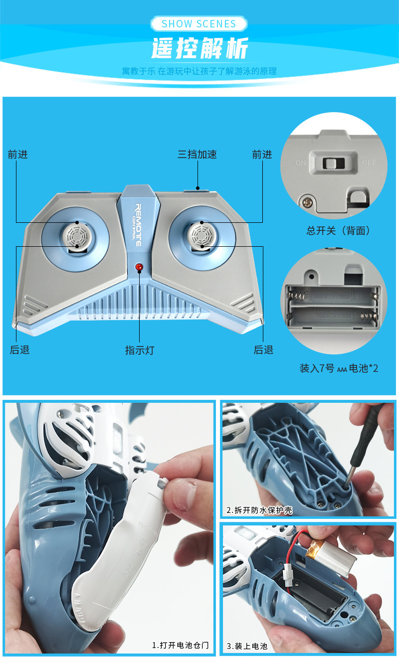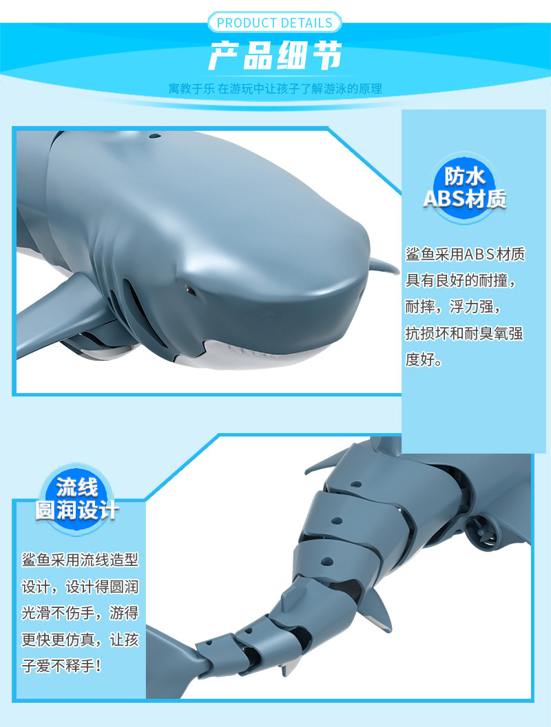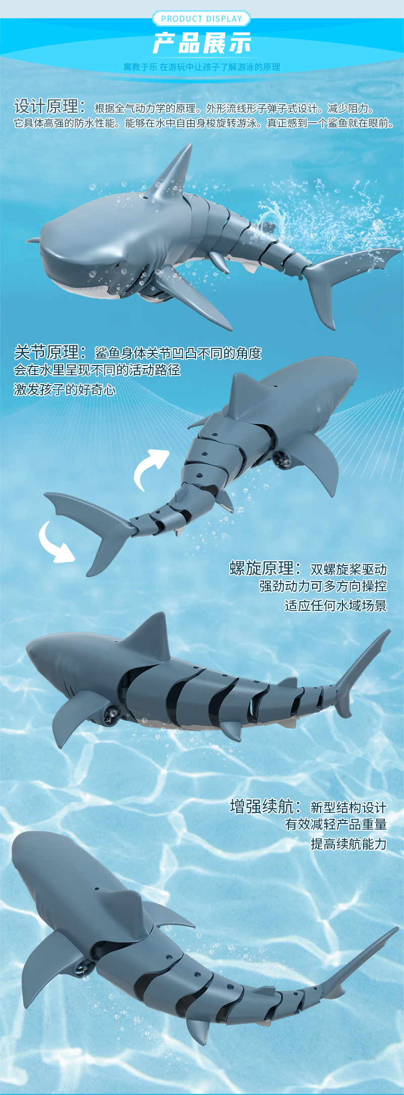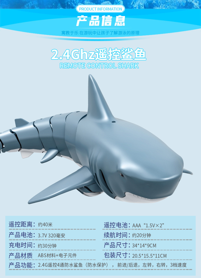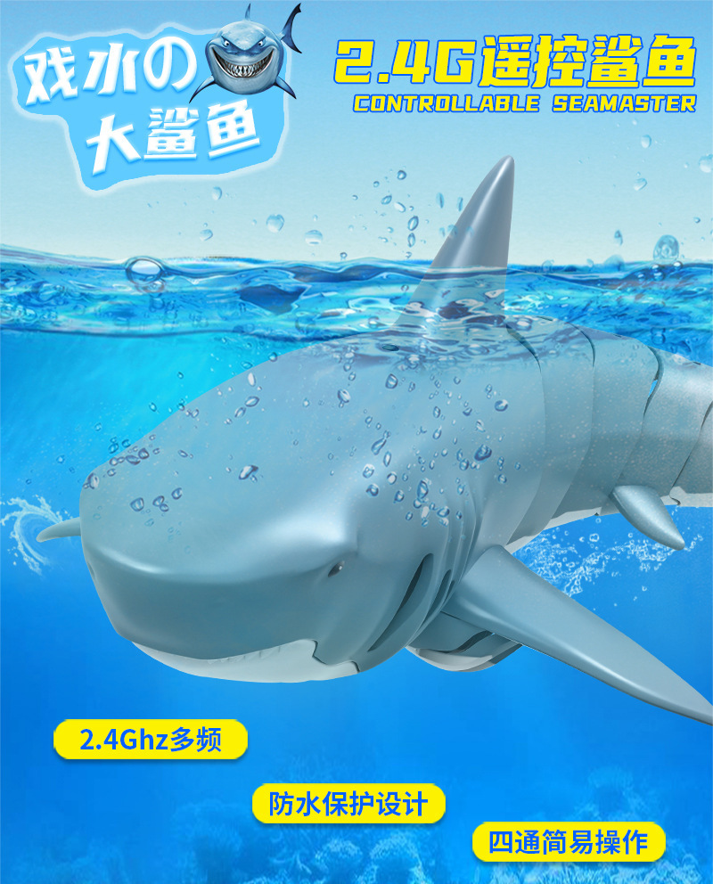 跨境爆款鲨鱼遥控仿真电动摇摆鲨鱼2.4G充电续航遥控鱼戏水玩具