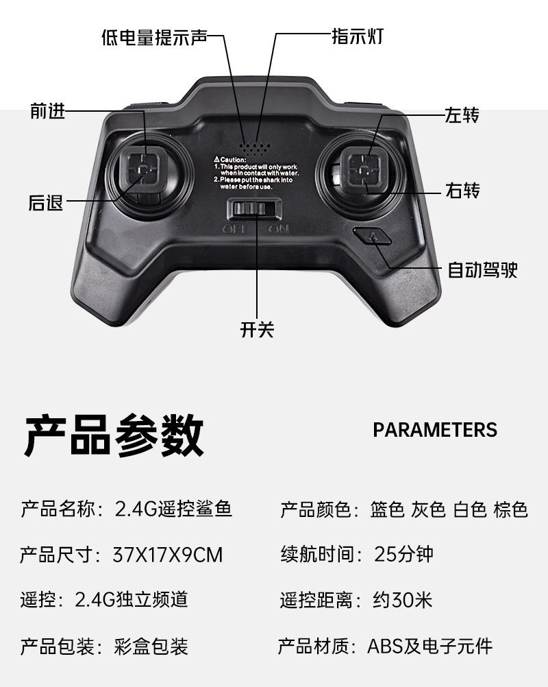 跨境新款2.4G无线遥控仿真鲨鱼超长续航玩具鱼儿童水上玩具船