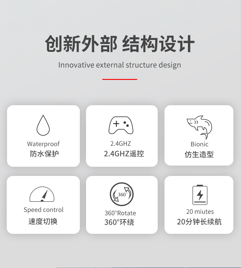 跨境新款2.4G仿真遥控鲨鱼无线电动仿生摇摆水上机械儿童戏水玩具