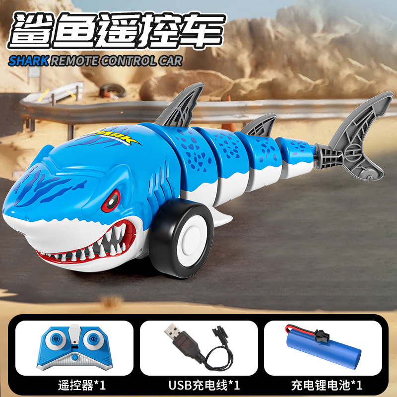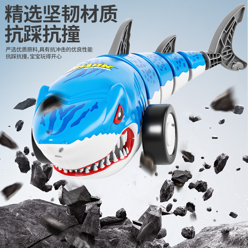 跨境新款儿童鲨鱼遥控车2.4G灯光充电四通遥控玩具车玩具男孩