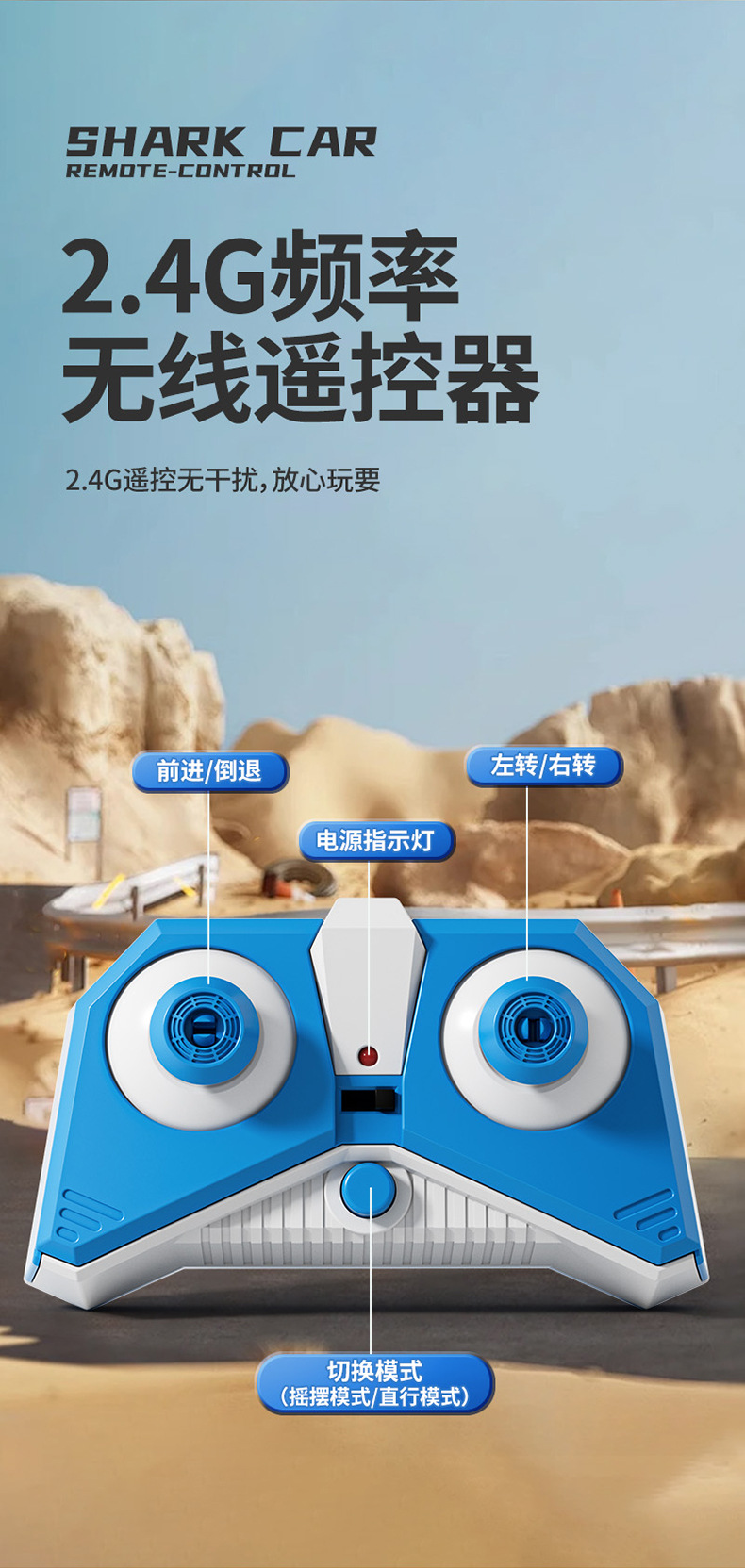 天蓝色丨2.4G灯光鲨鱼遥控车