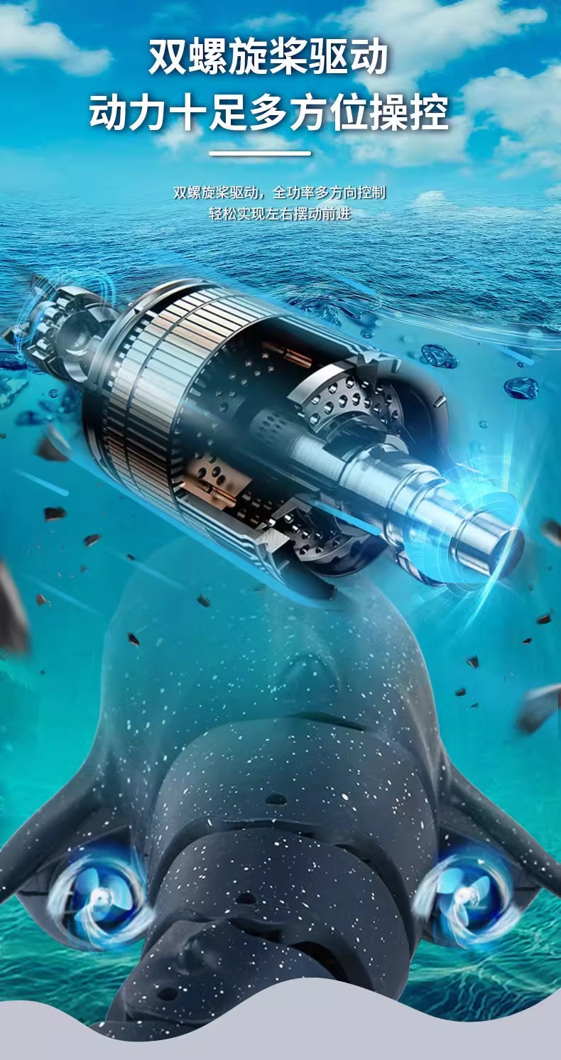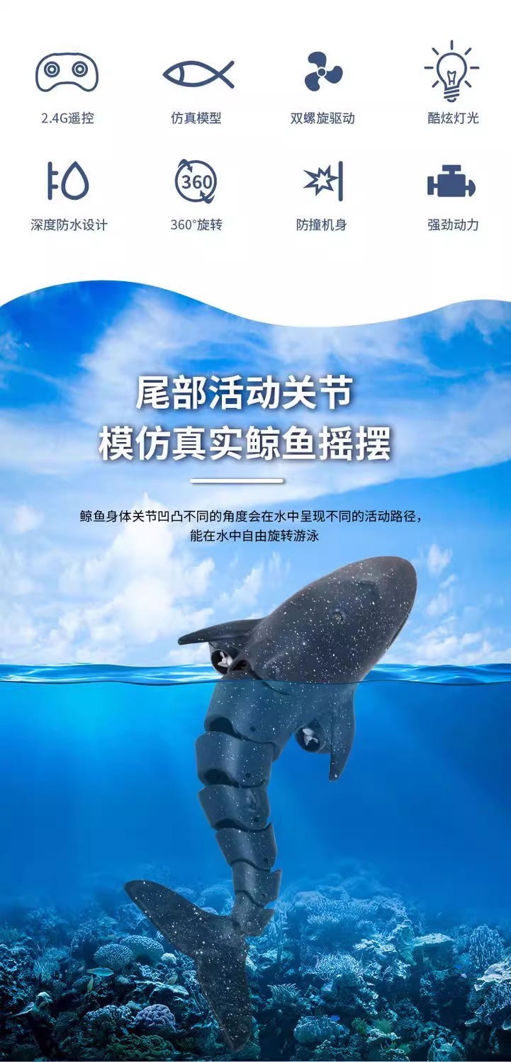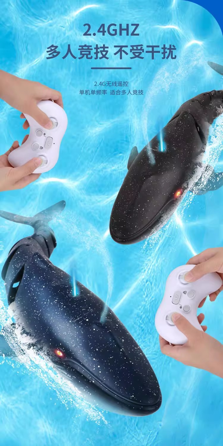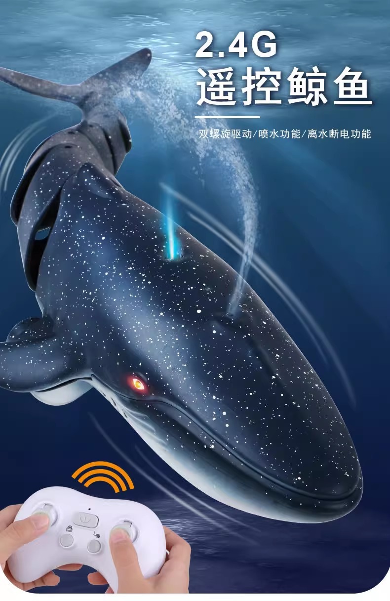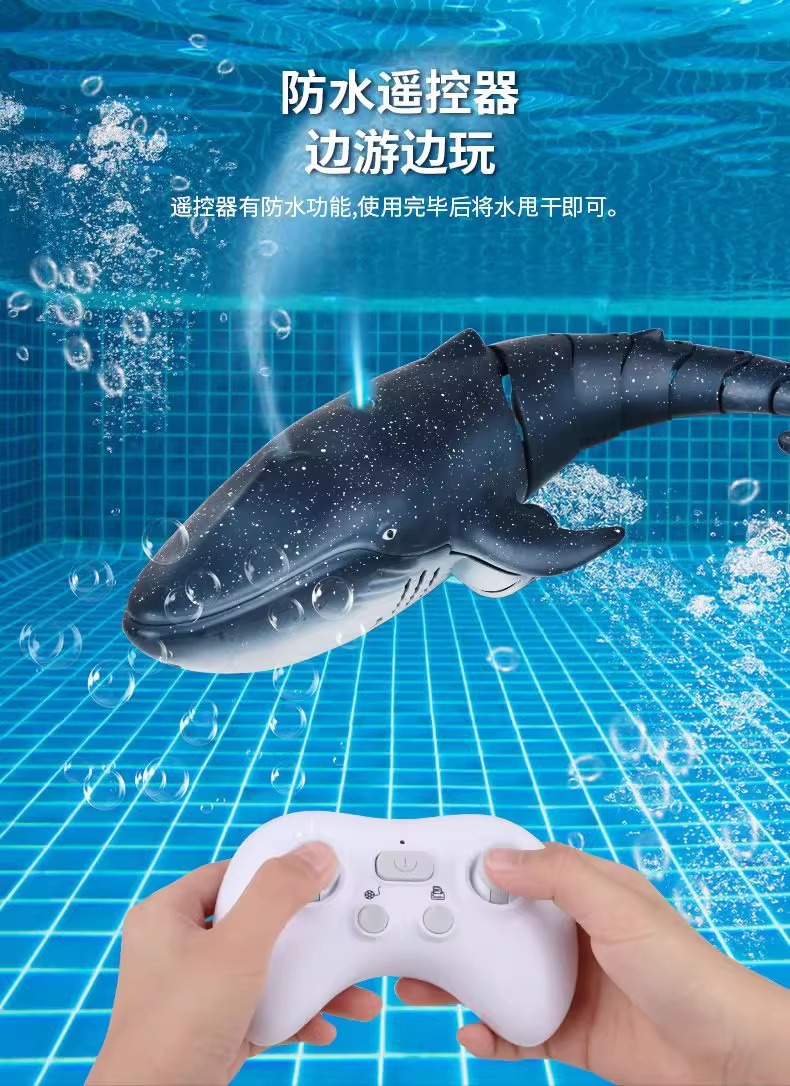 遥控喷水电动鲨鱼仿生鲸鱼戏水玩具rc仿真鲸鱼模型可充电儿童玩具