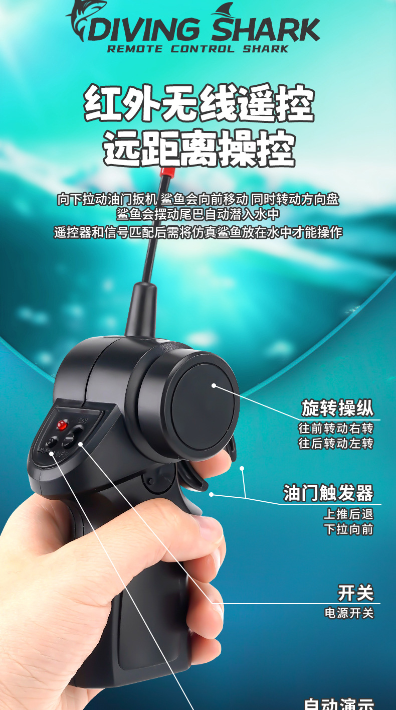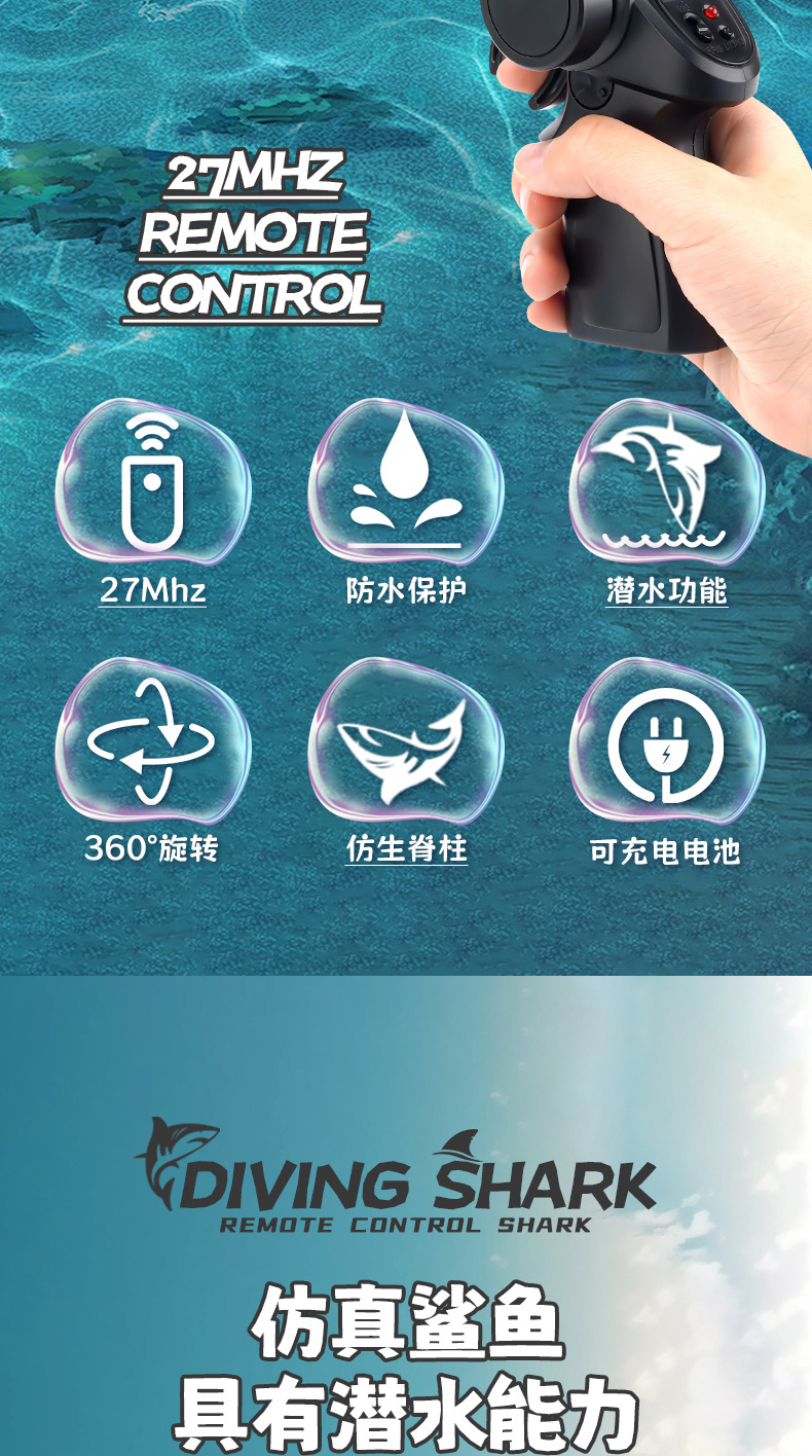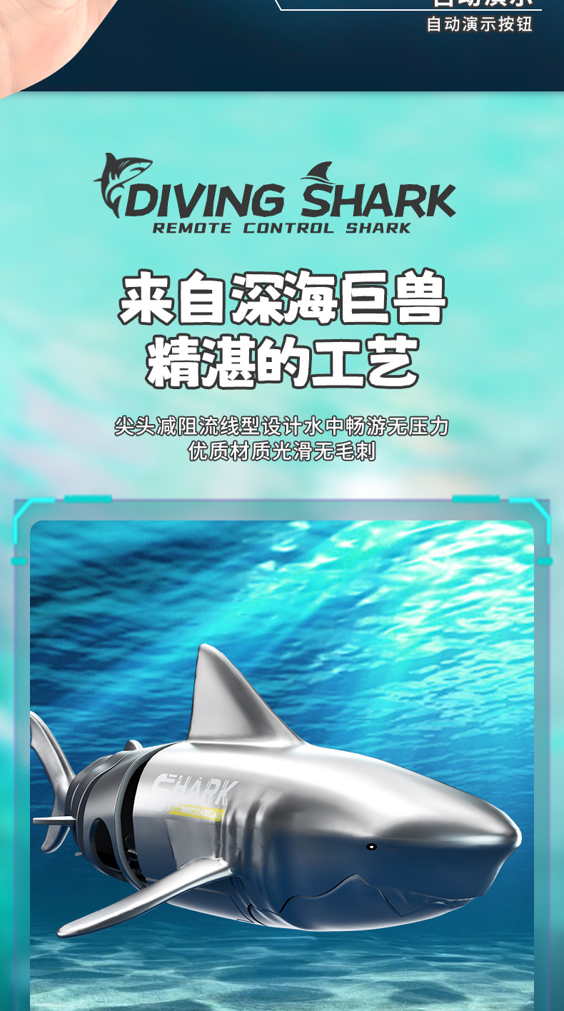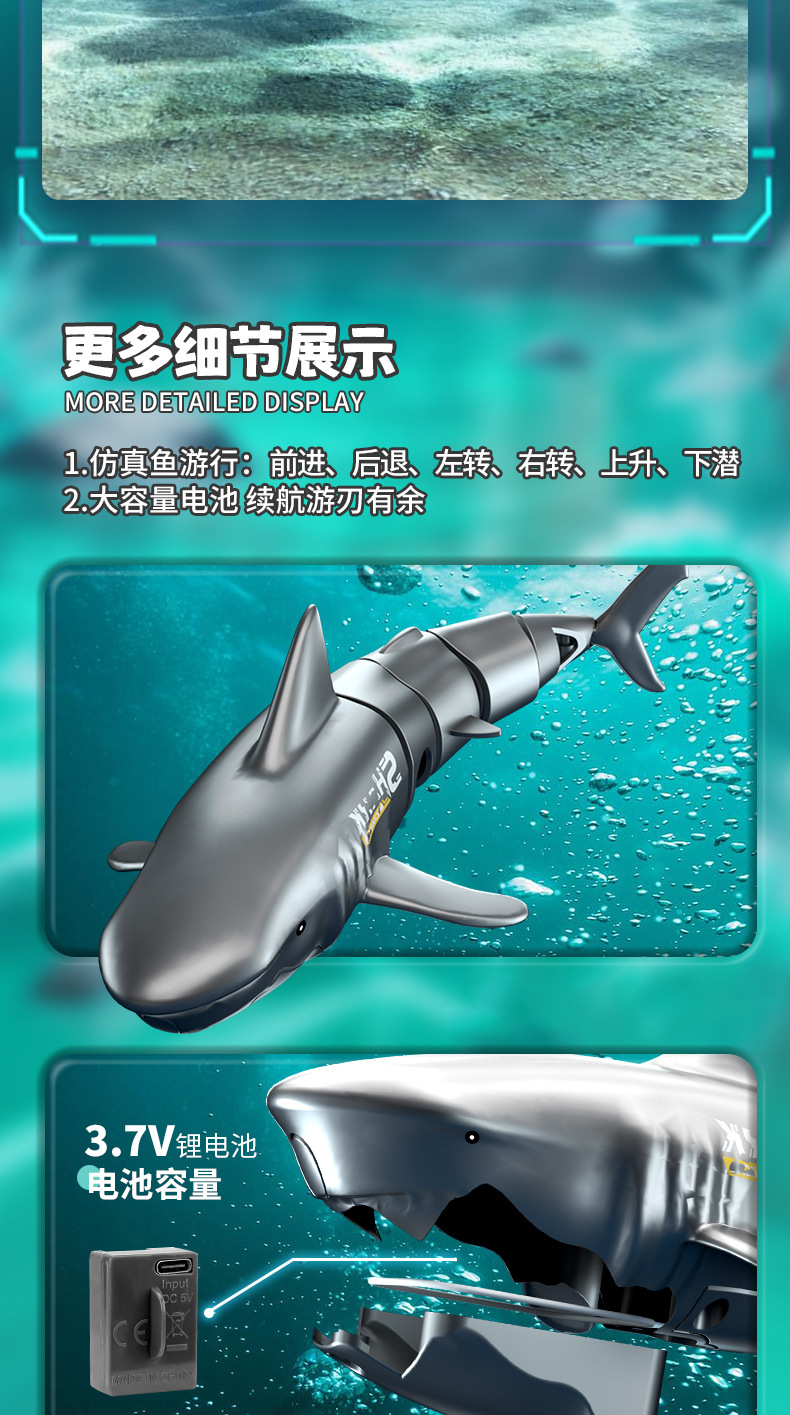 跨境RC遥控鲨鱼潜水艇玩具可下潜仿生鱼电动水上儿童迷你遥控鱼