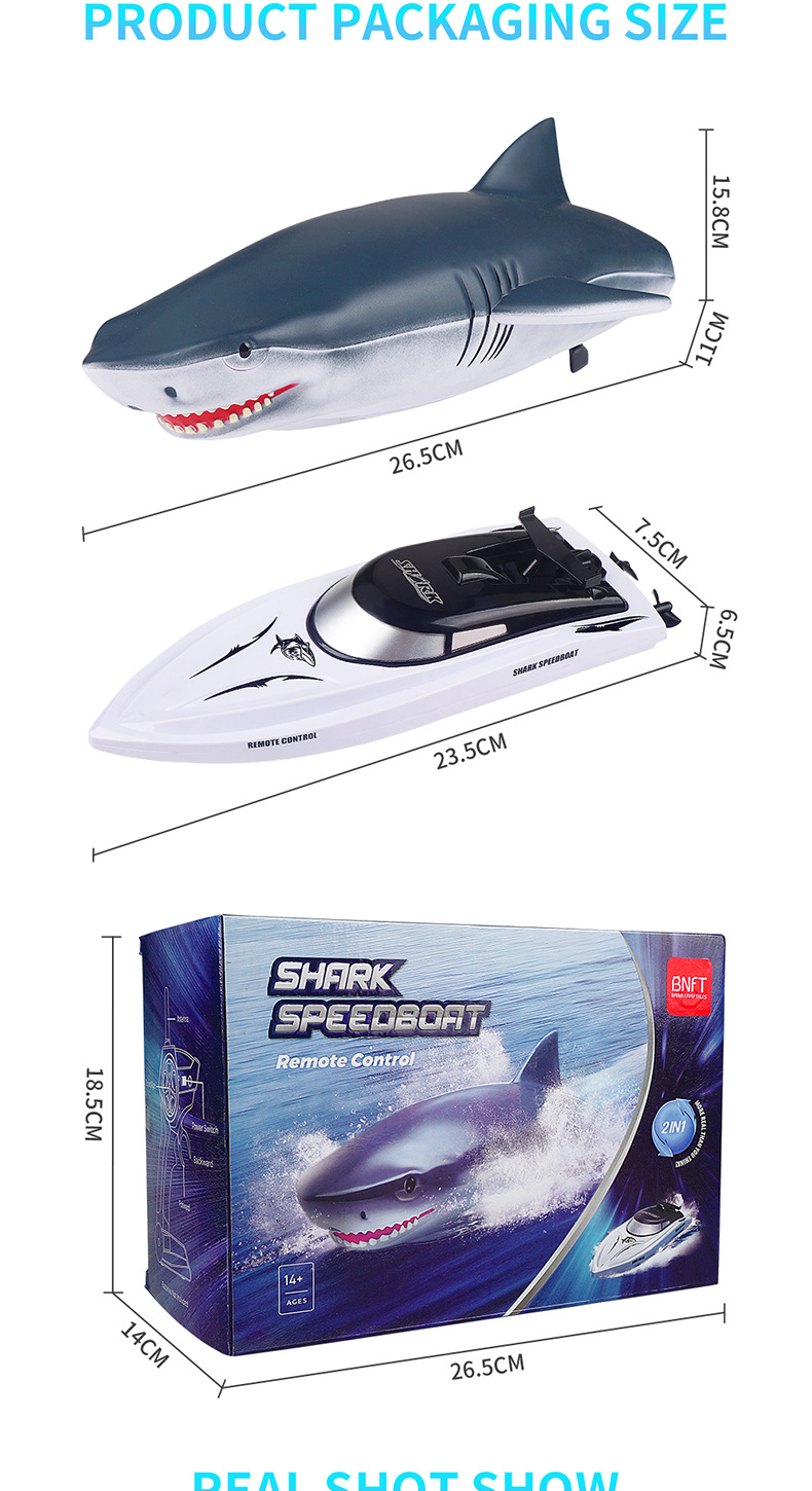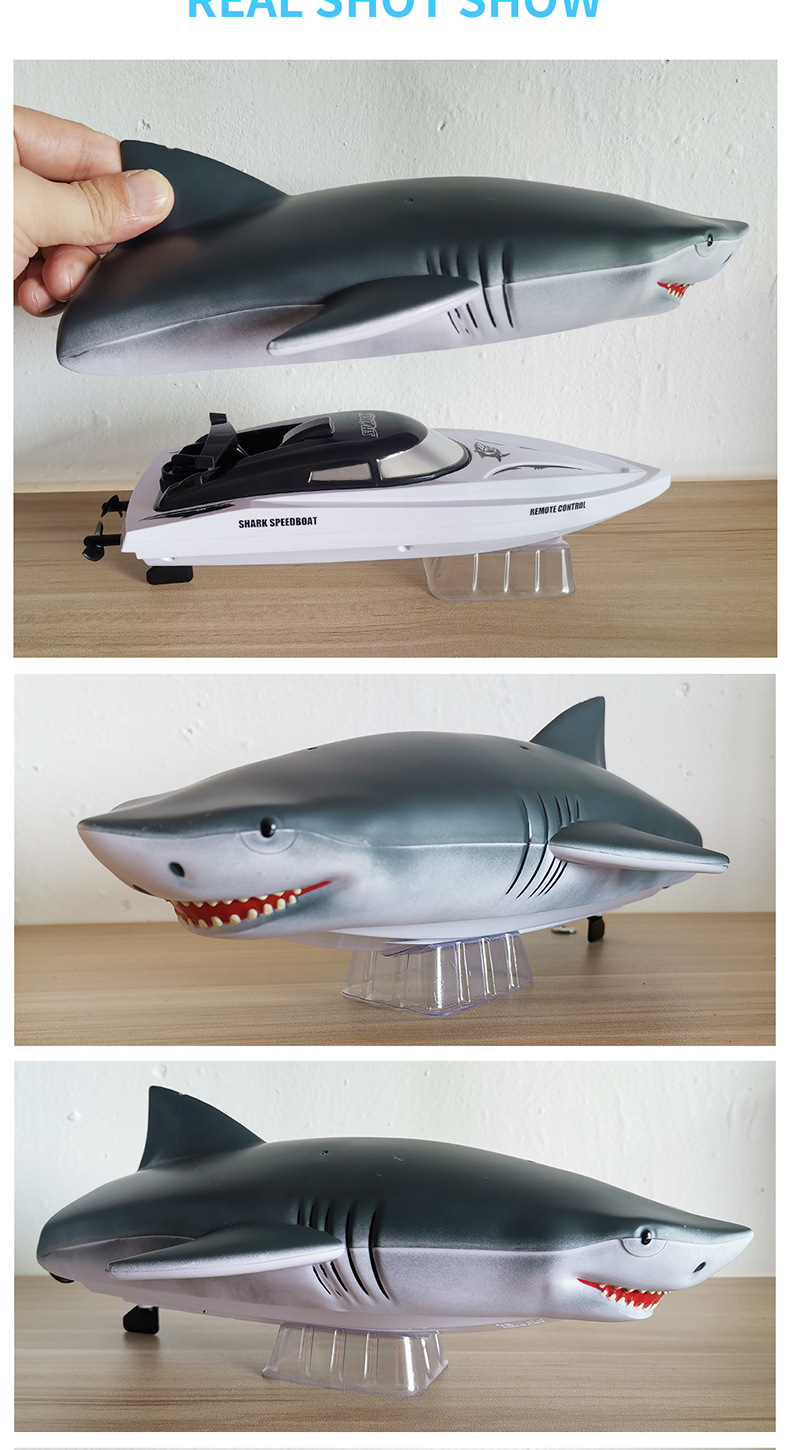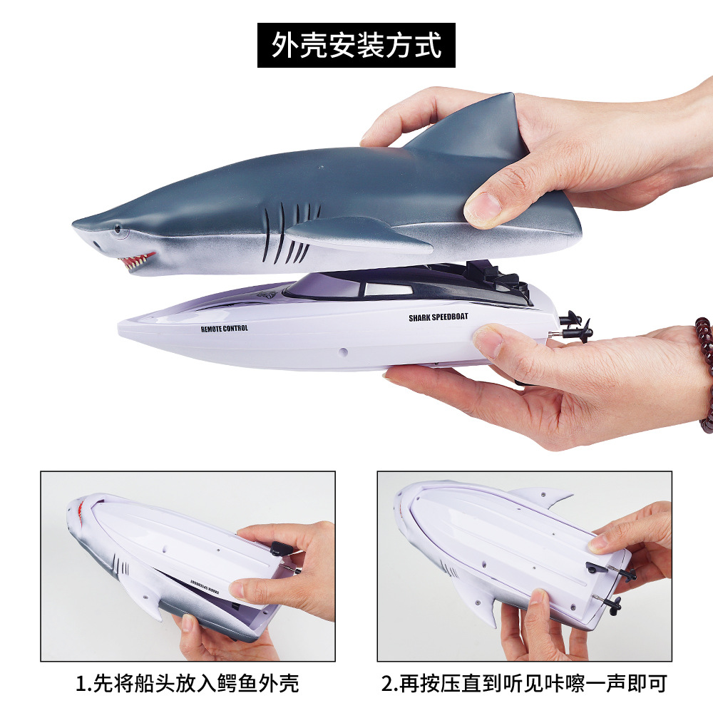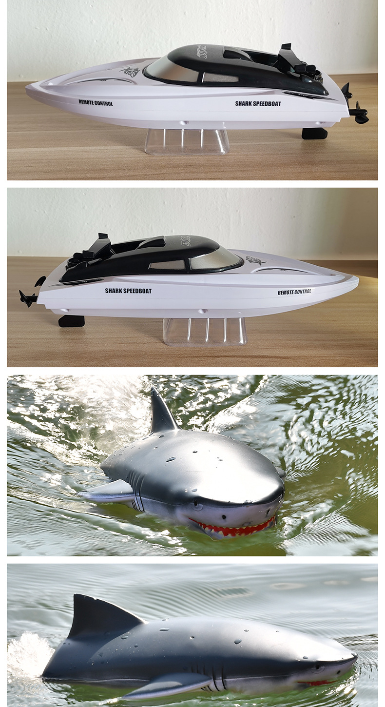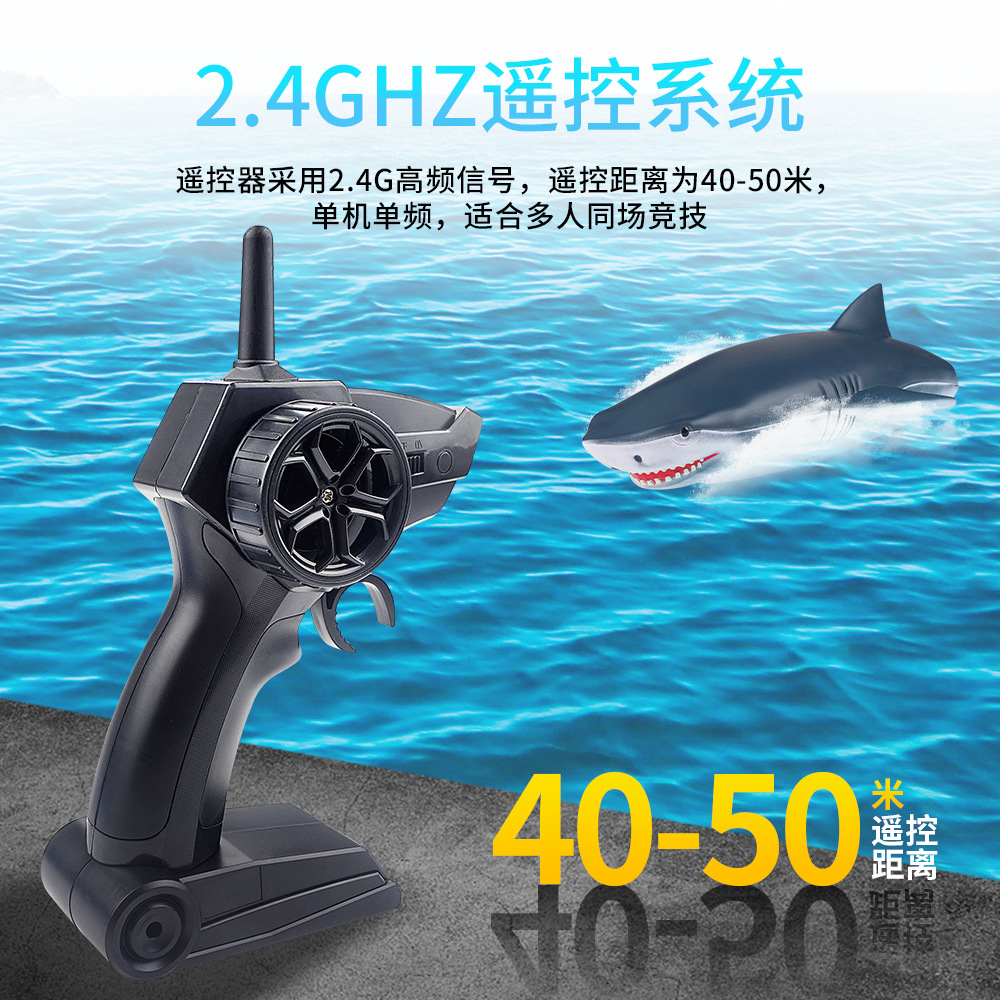 新款2.4G遥控鲨鱼二合一高速快艇夏天水上儿童电动遥控船玩具