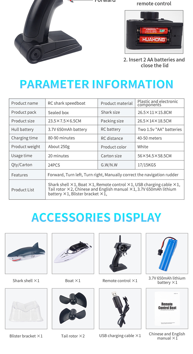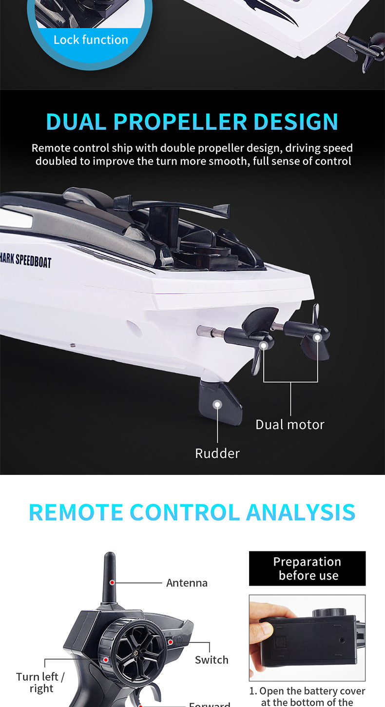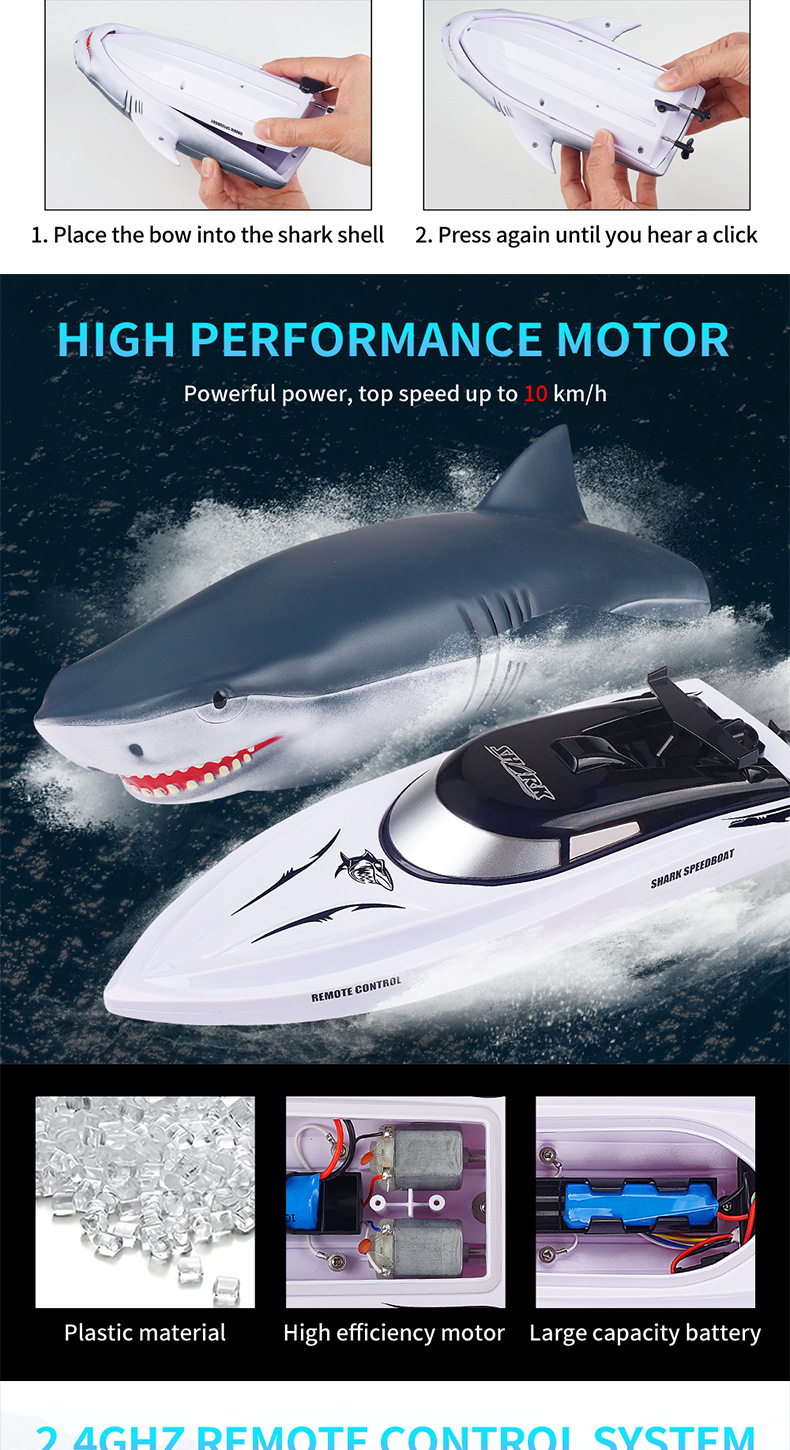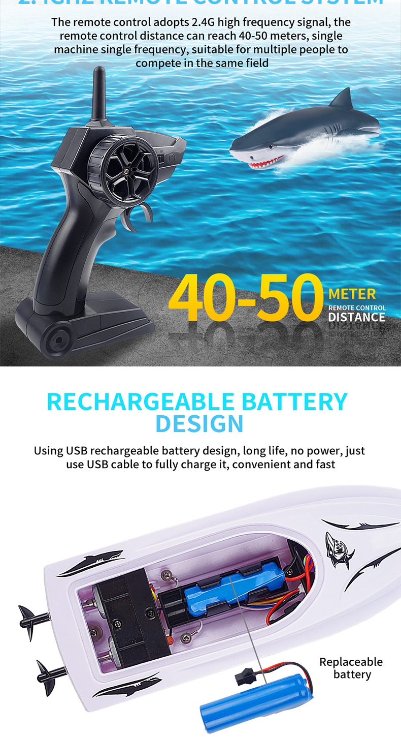 新款2.4G遥控鲨鱼二合一高速快艇夏天水上儿童电动遥控船玩具