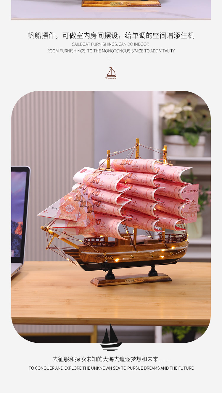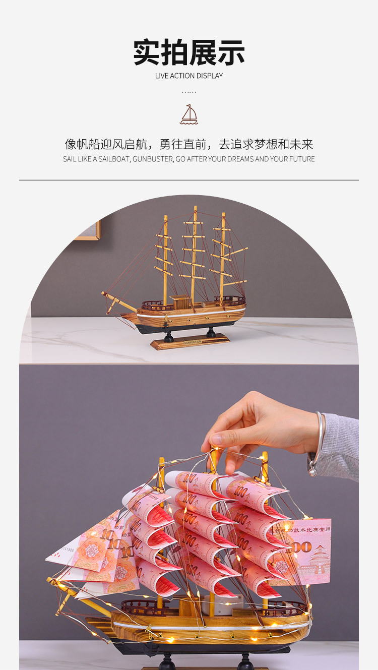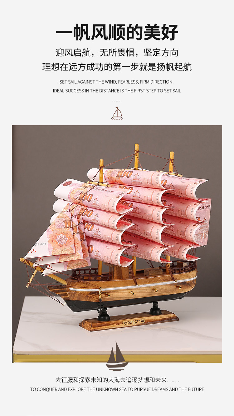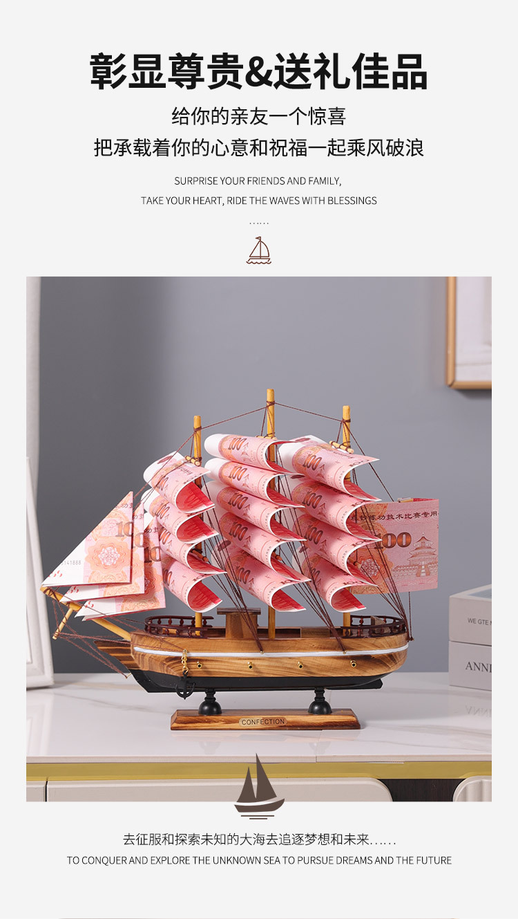 一帆风顺DIY木质帆船模型家居酒柜桌面小摆件节日有钱花纪念礼品