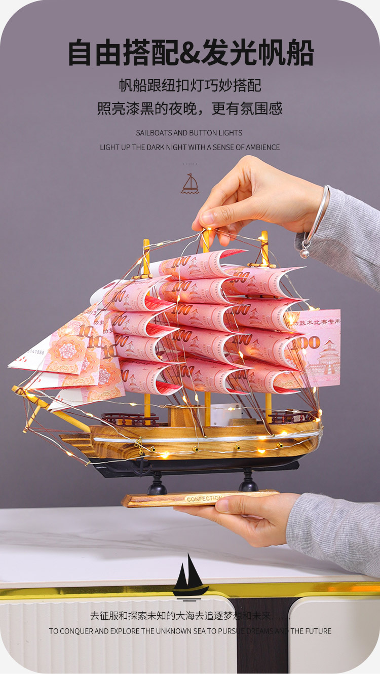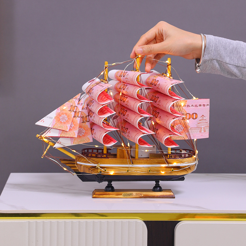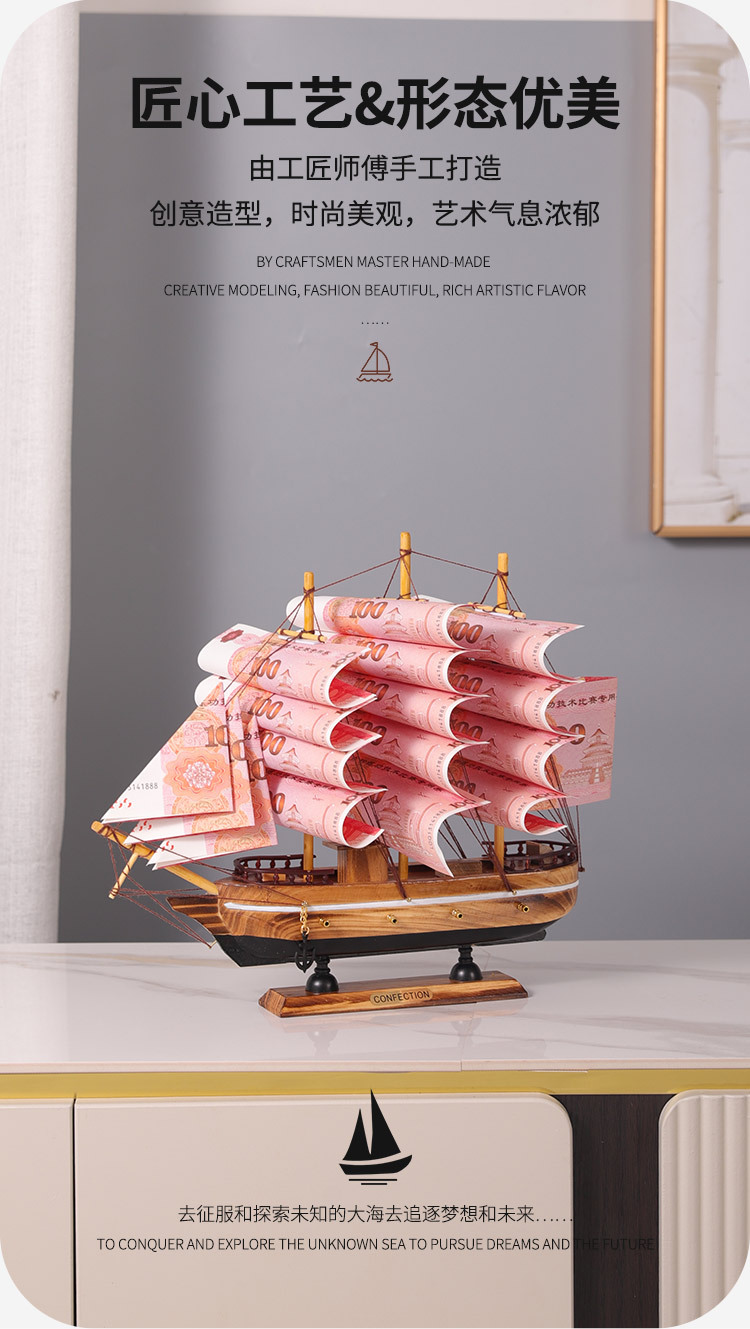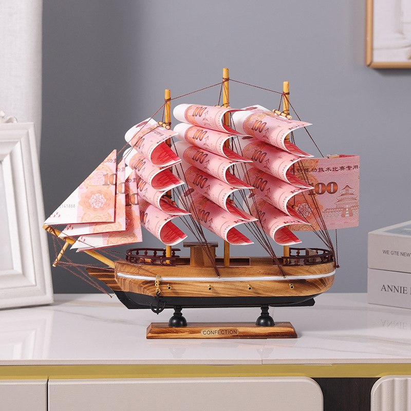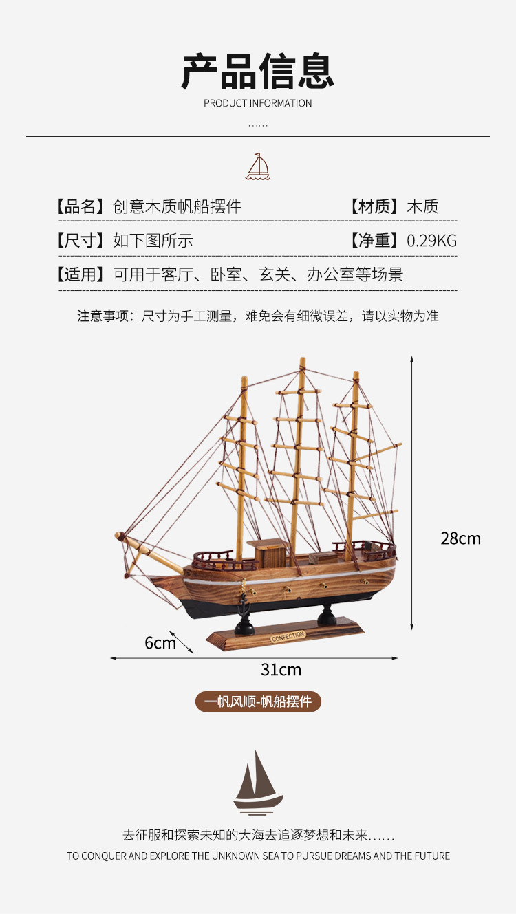 一帆风顺DIY木质帆船模型家居酒柜桌面小摆件节日有钱花纪念礼品