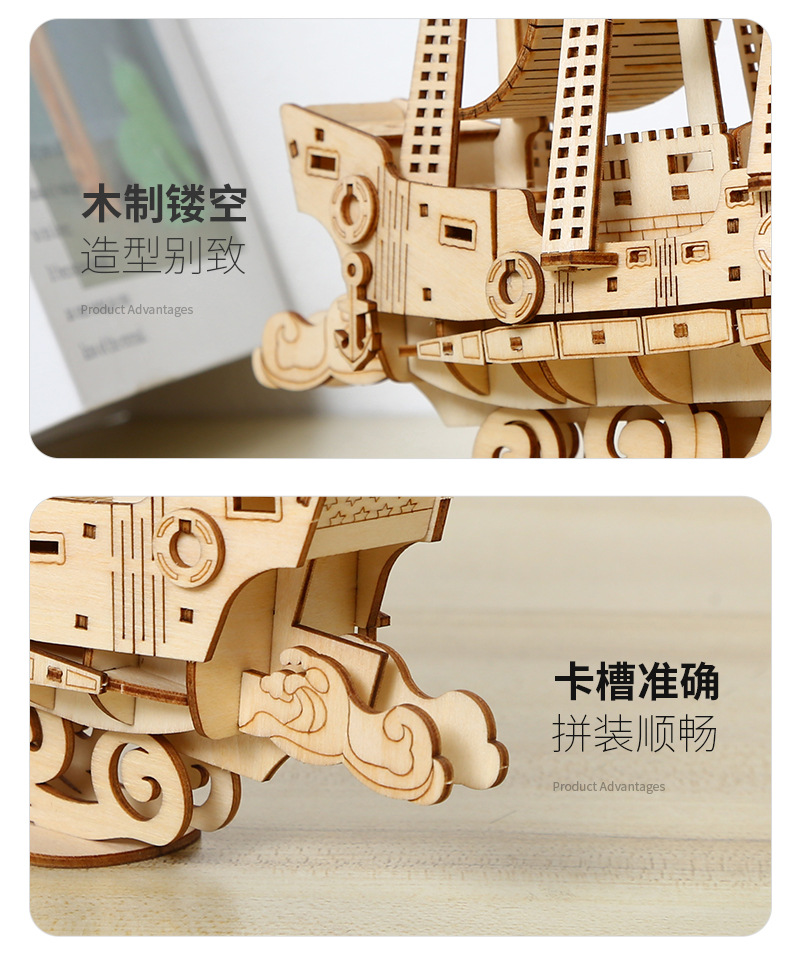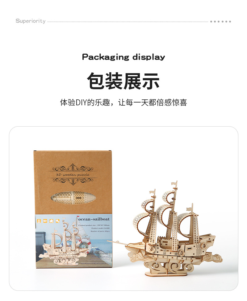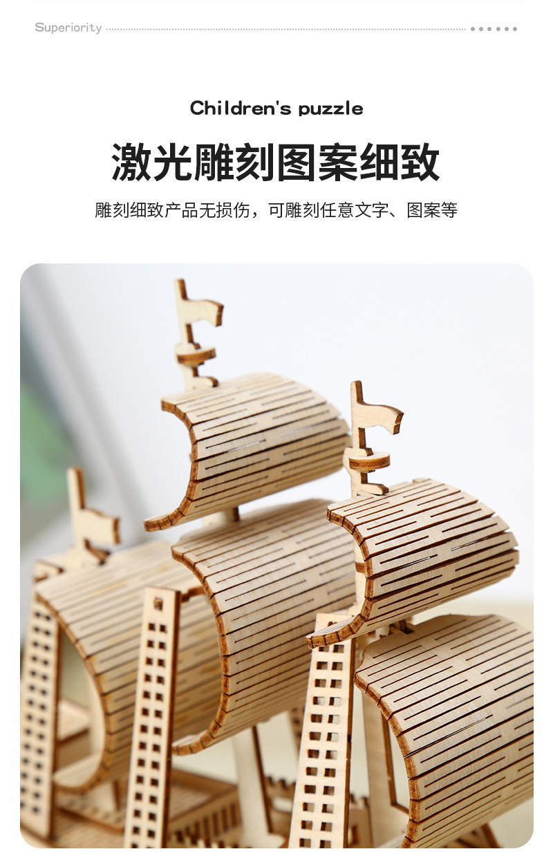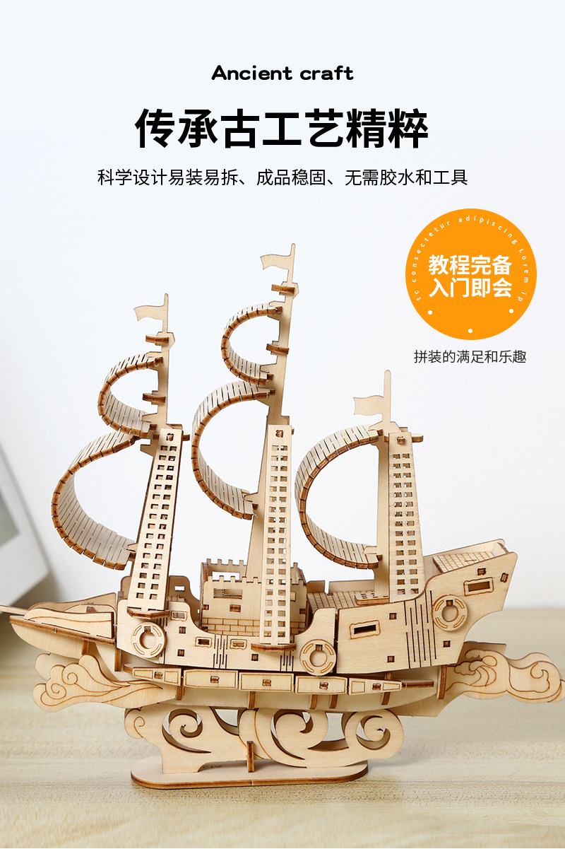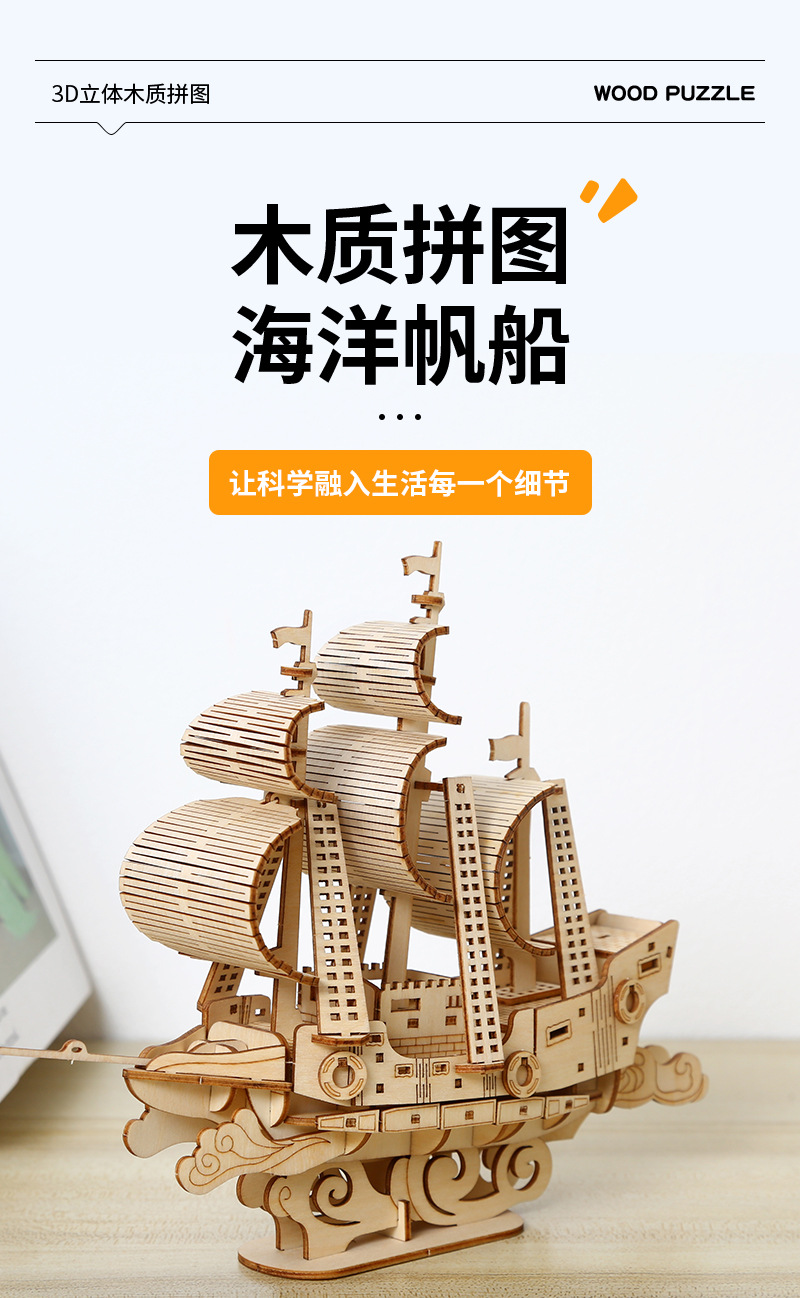 DIY手工制作木质海洋帆船模型3d立体拼图礼物儿童玩具桌面摆设