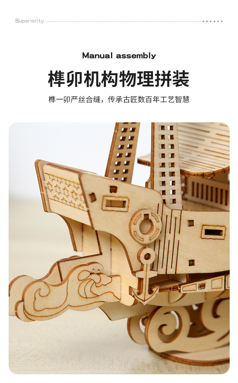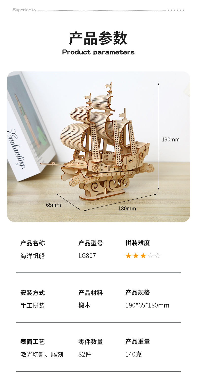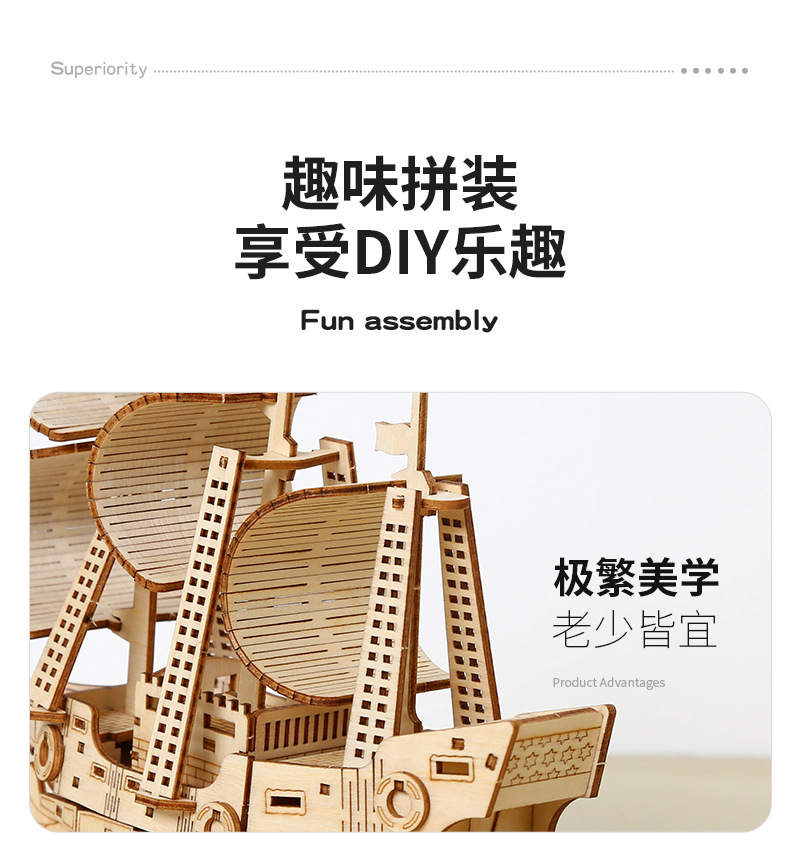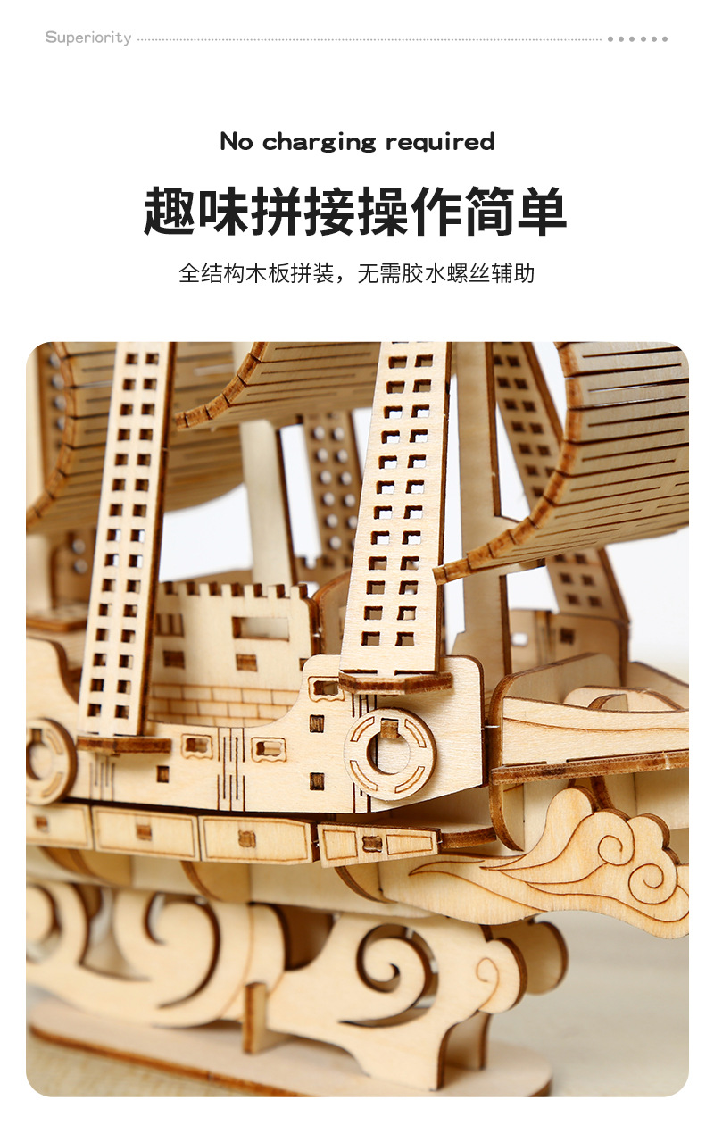 DIY手工制作木质海洋帆船模型3d立体拼图礼物儿童玩具桌面摆设