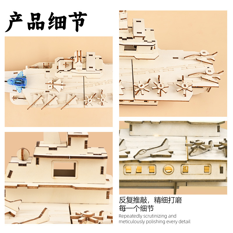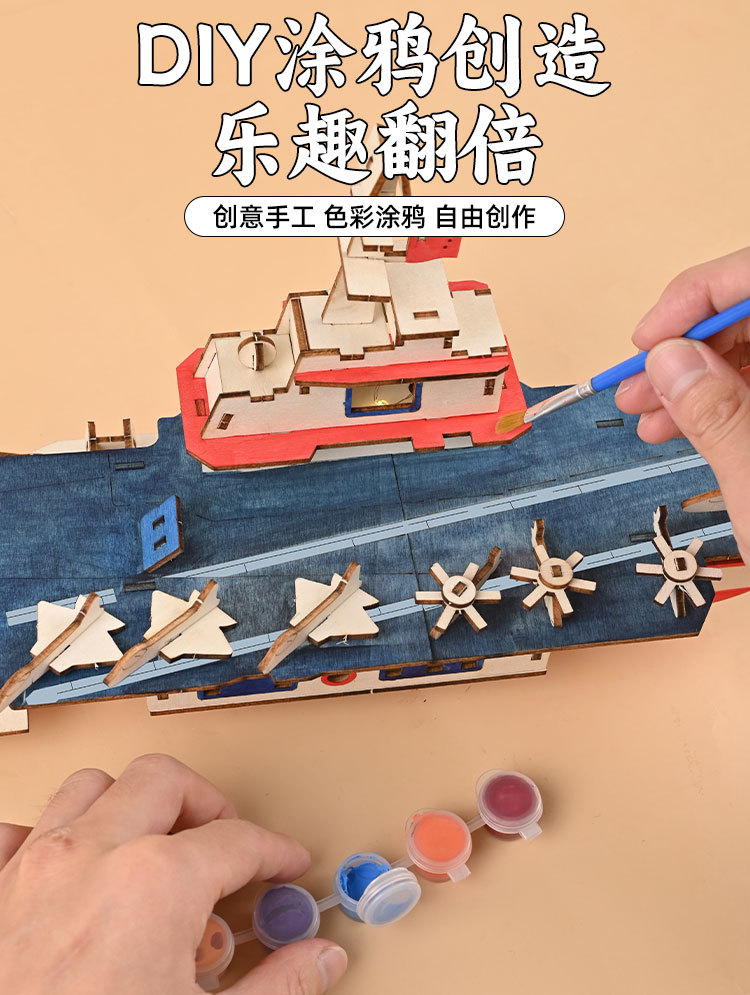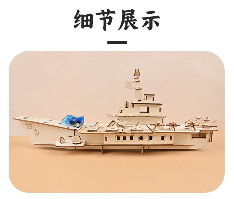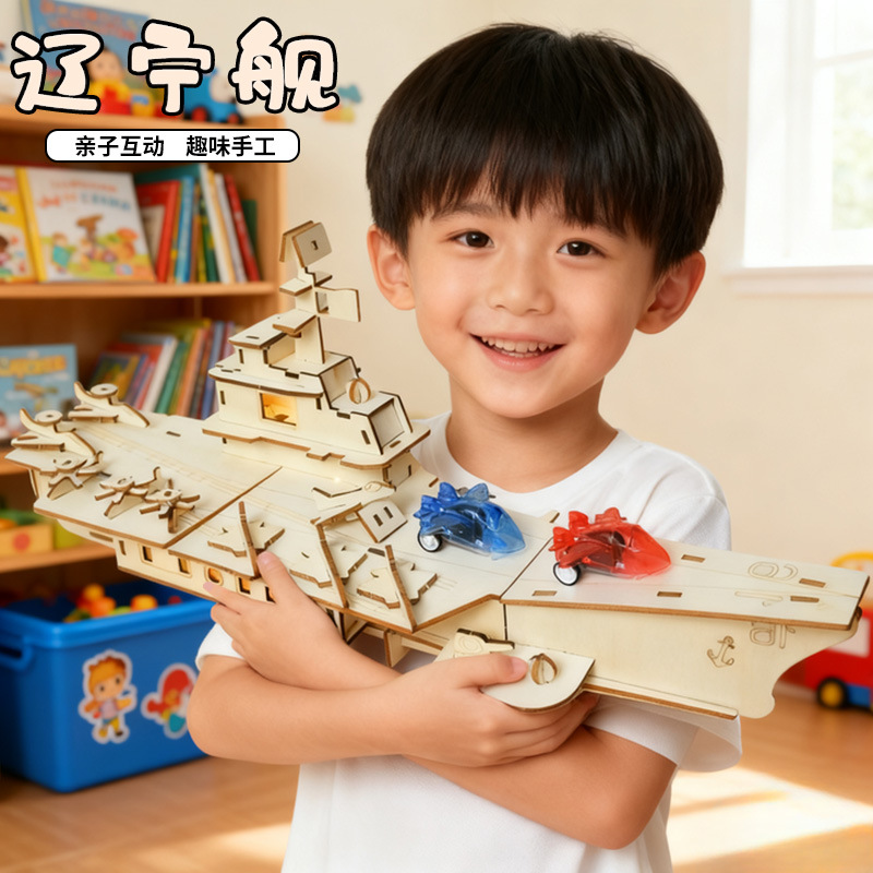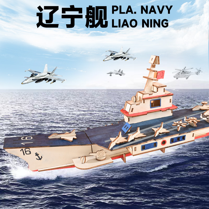 中国辽宁舰模型木质航空母舰拼装3diy爱国材料包儿童手工玩具