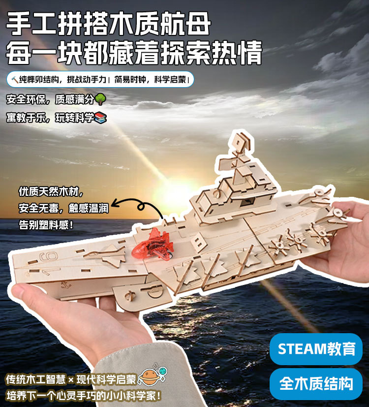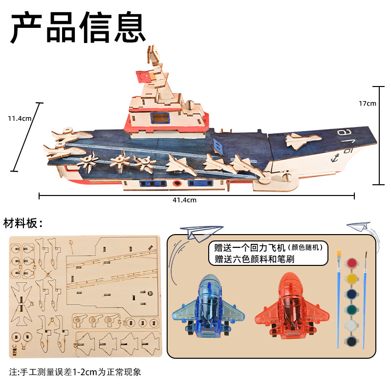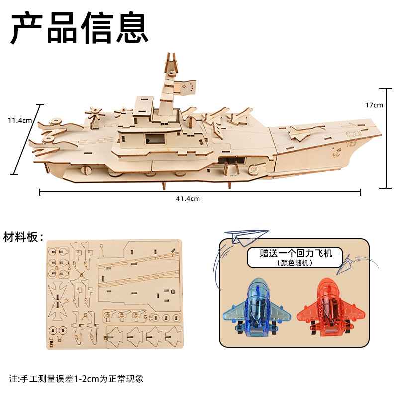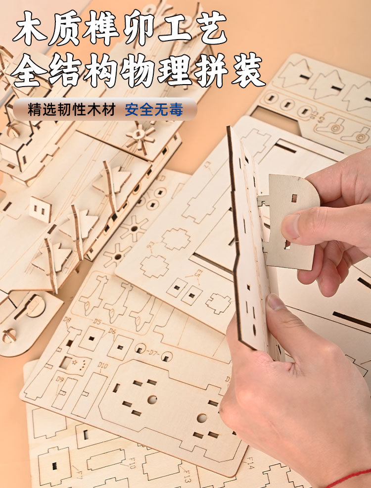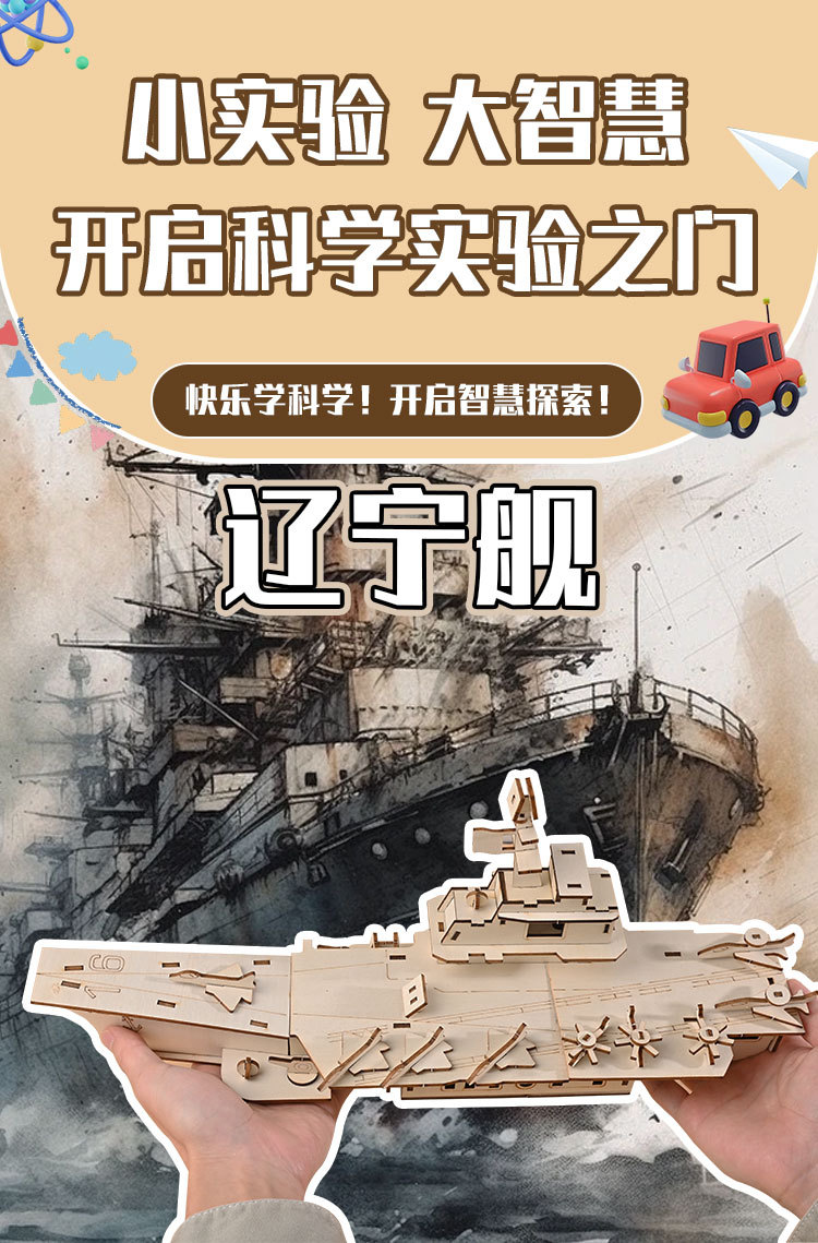 中国辽宁舰模型木质航空母舰拼装3diy爱国材料包儿童手工玩具