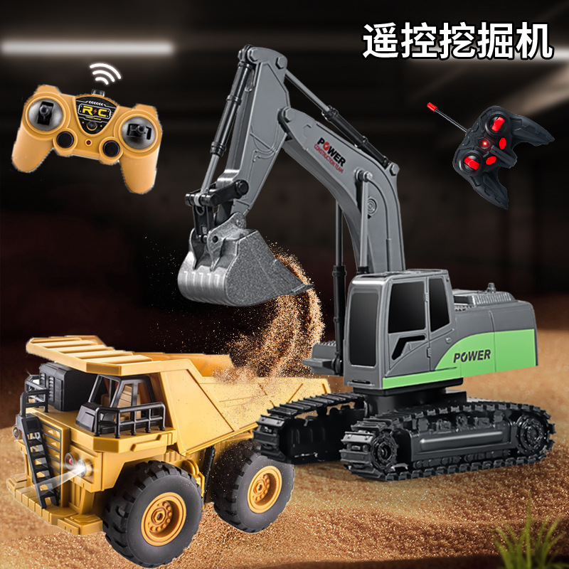 儿童6通遥控挖掘机电动运输车4通铲车充电式履带式挖机玩具工程车