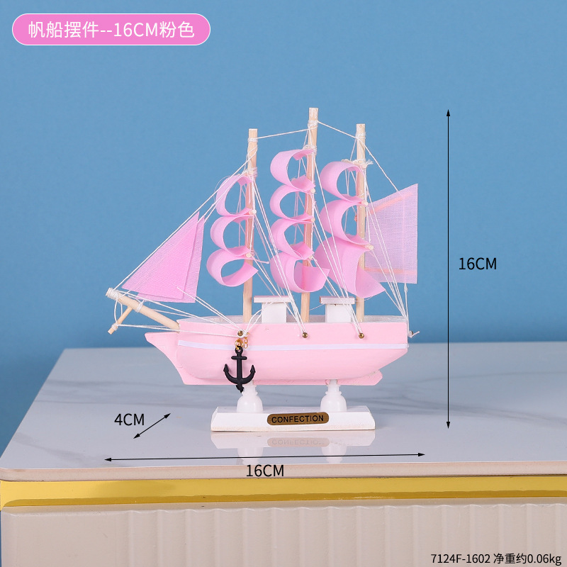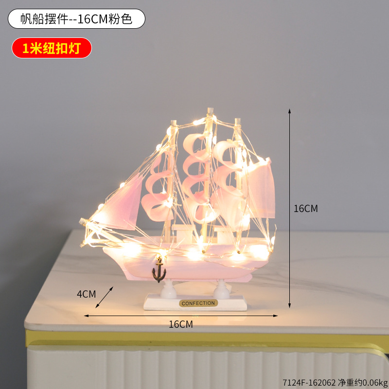 7124F-162062帆船摆件--16CM粉色+1米纽扣灯