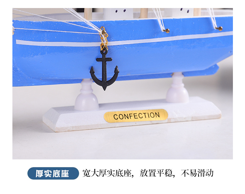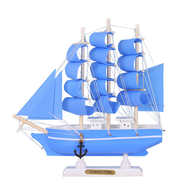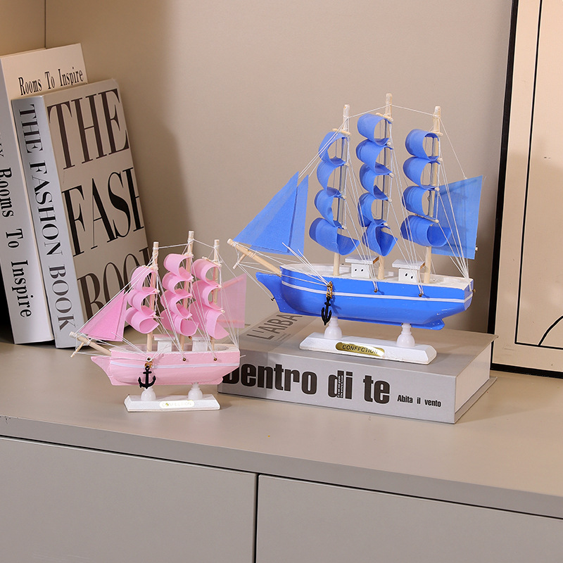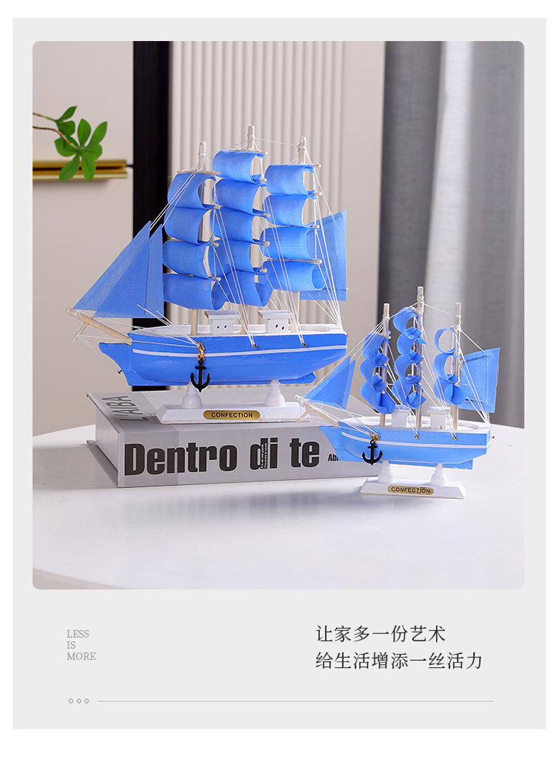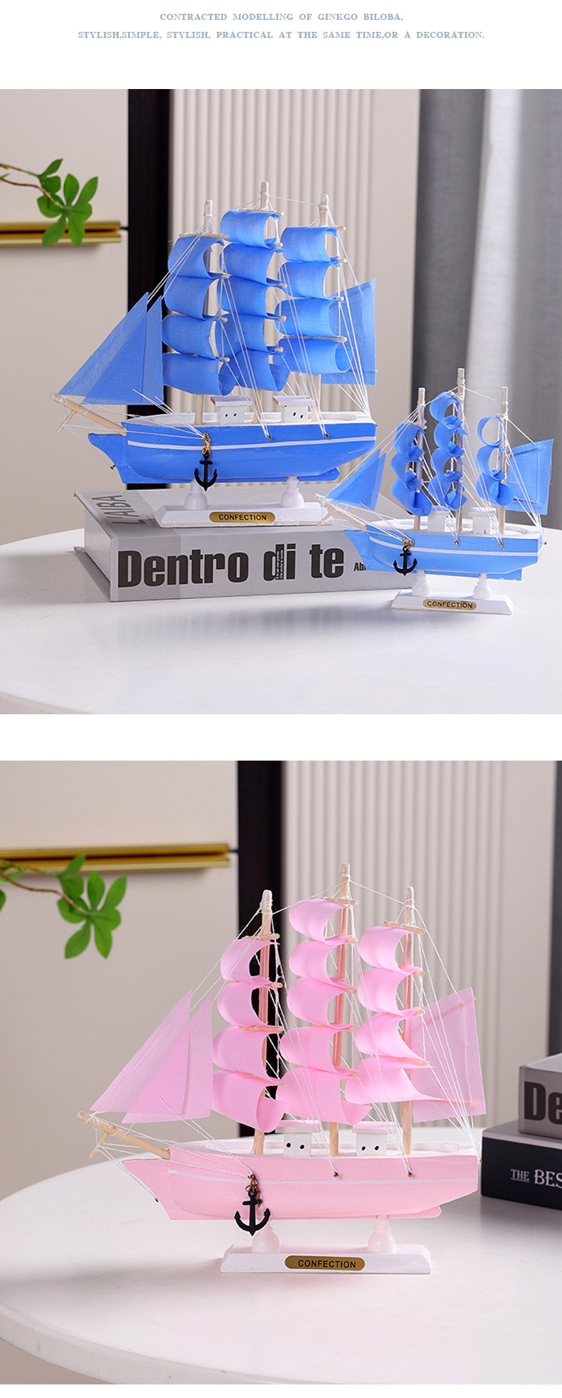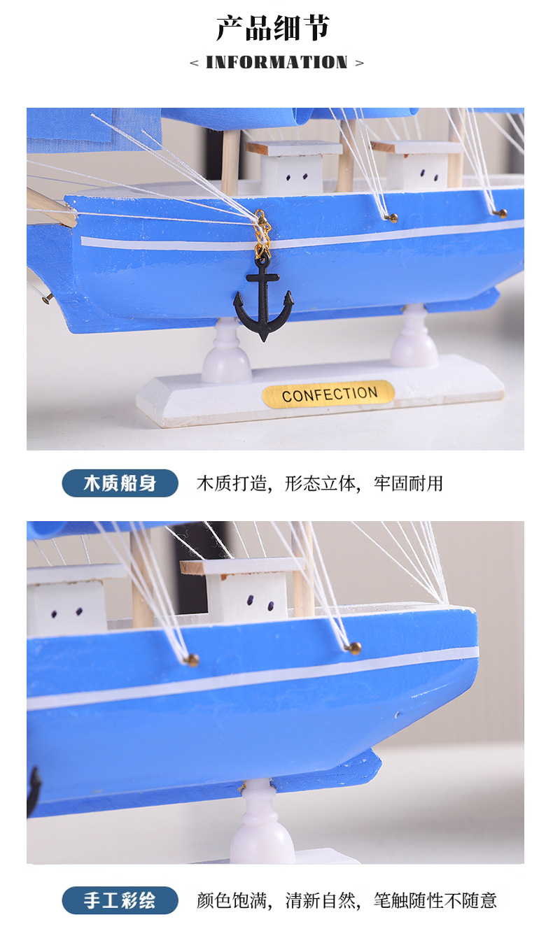 一帆风顺粉蓝地中海木质帆船摆件家居店铺装饰品帆船模型工艺品