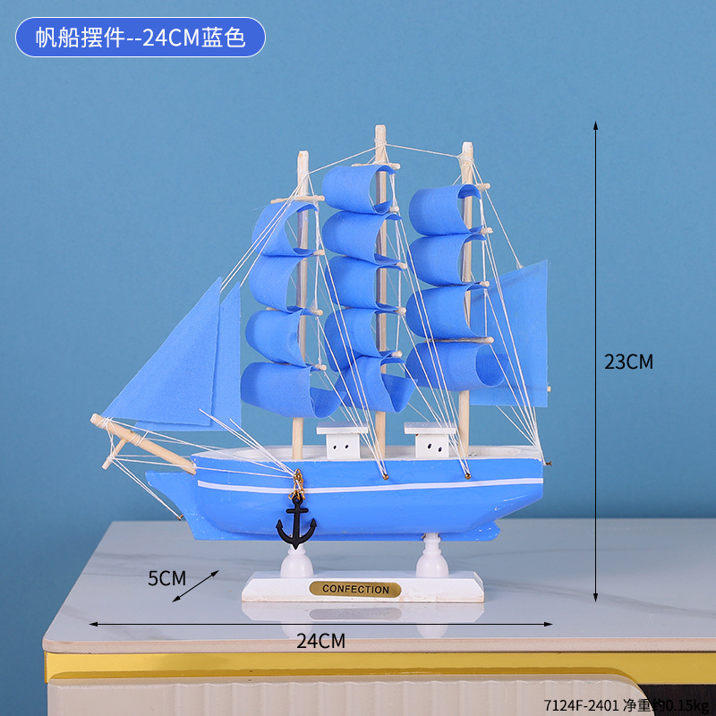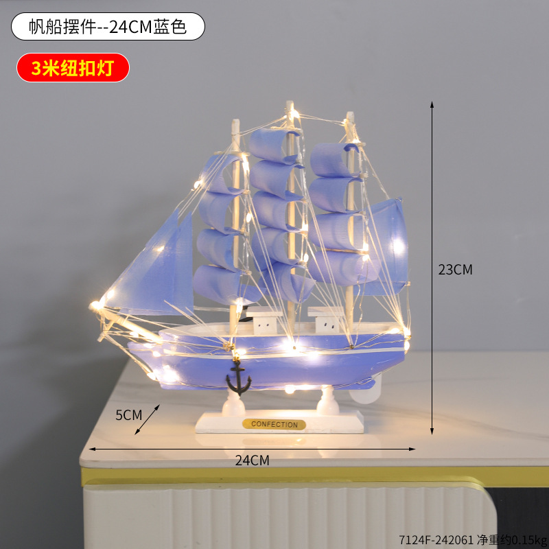 7124F-242061帆船摆件--24CM蓝色+3米纽扣灯