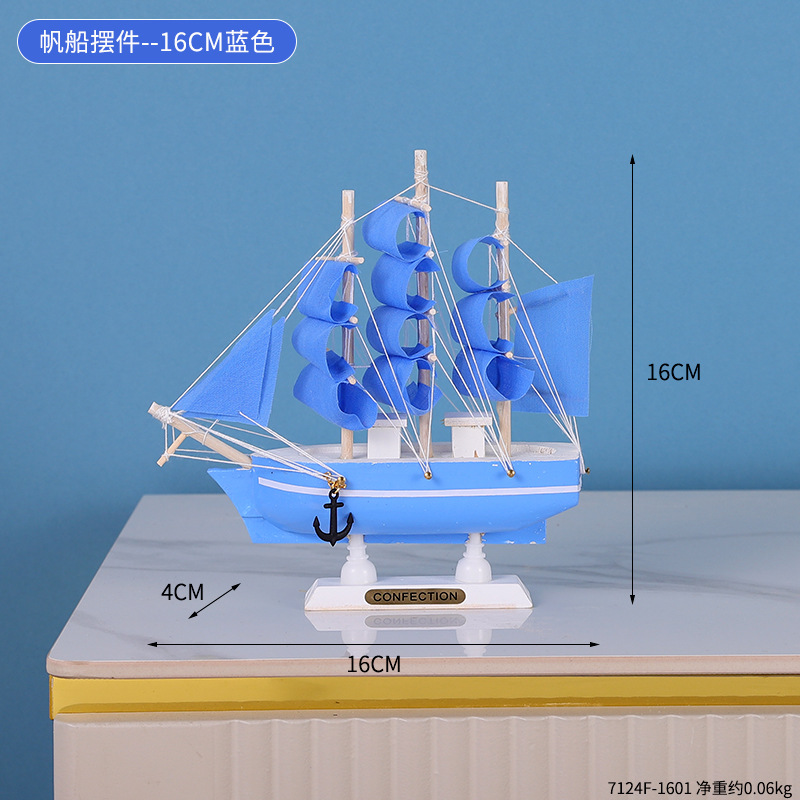 7124F-162061帆船摆件--16CM蓝色+1米纽扣灯