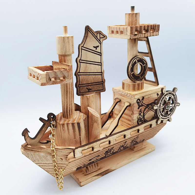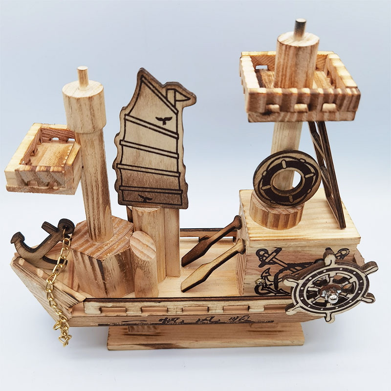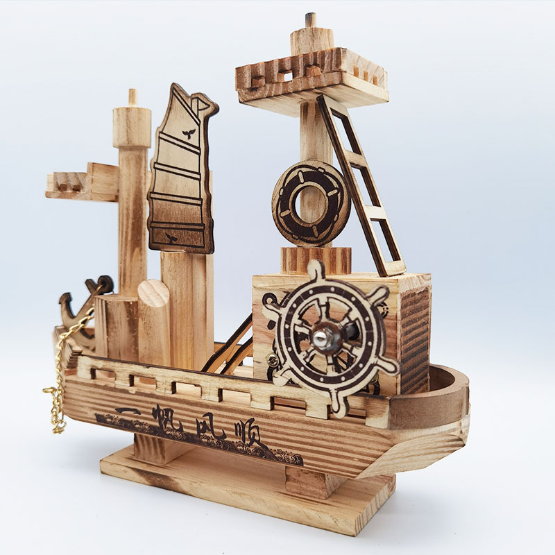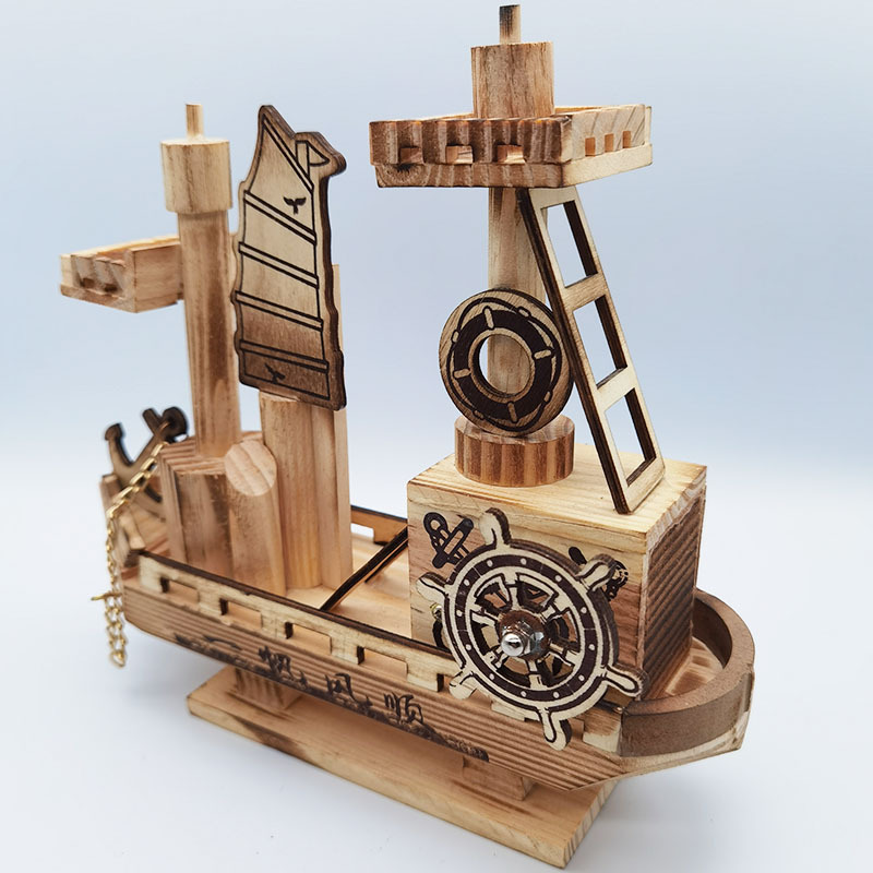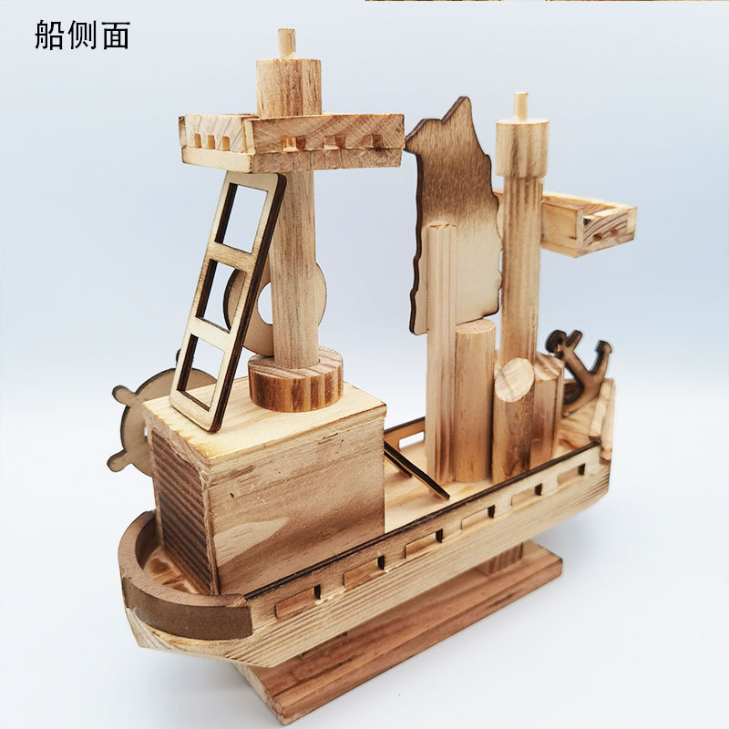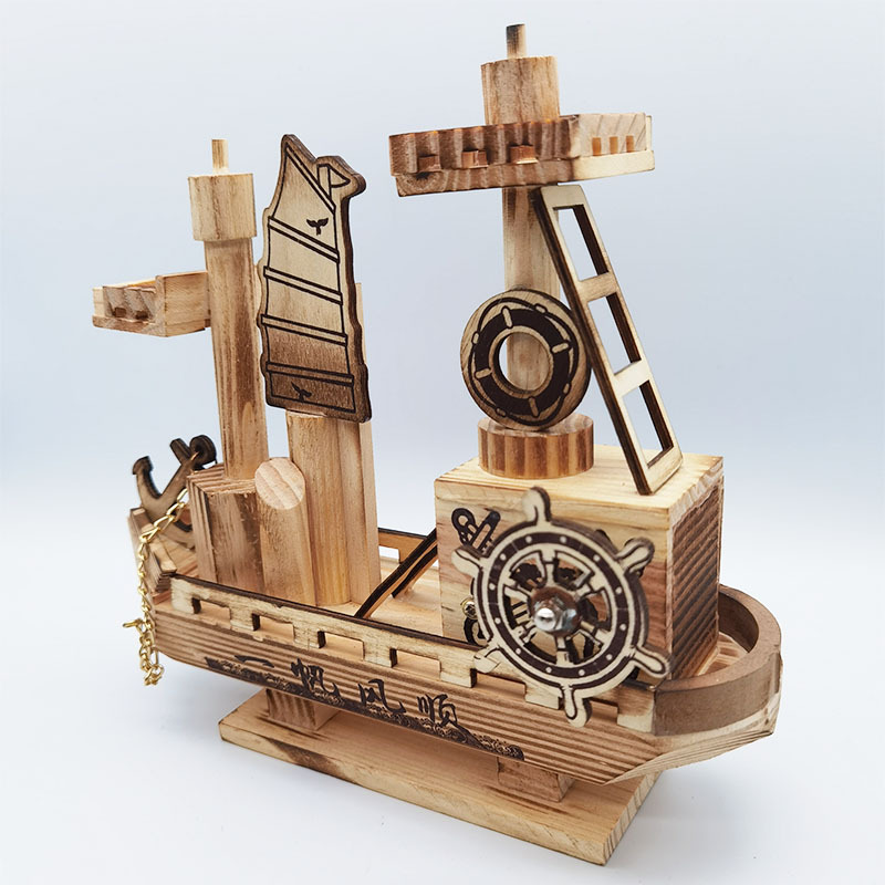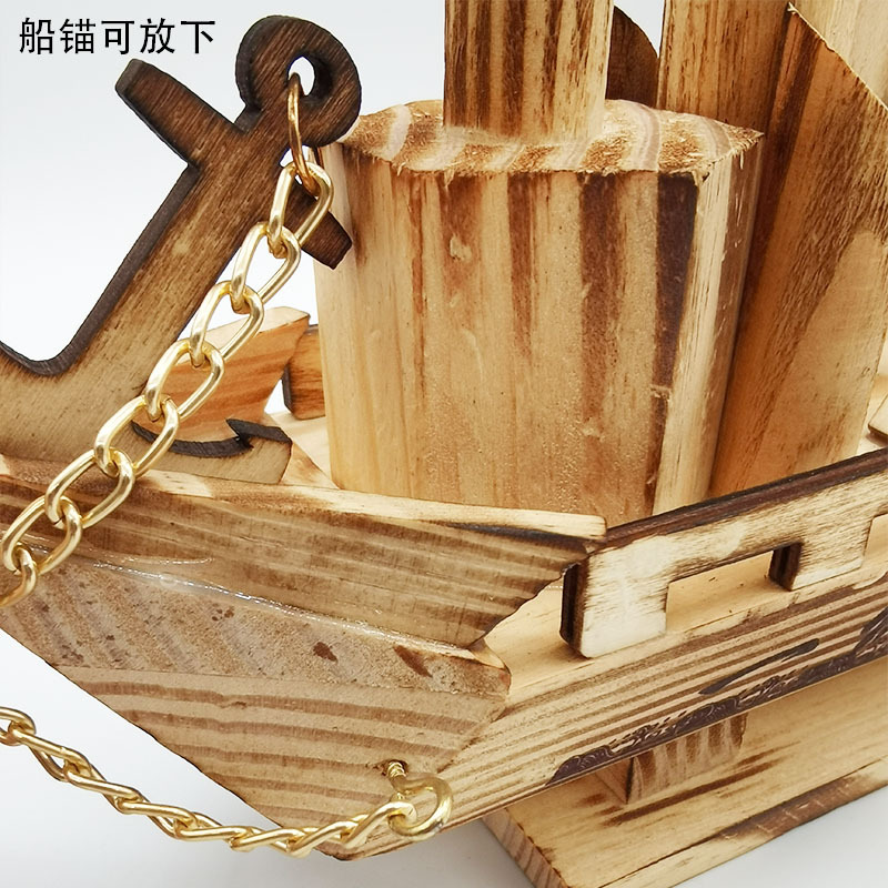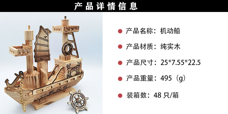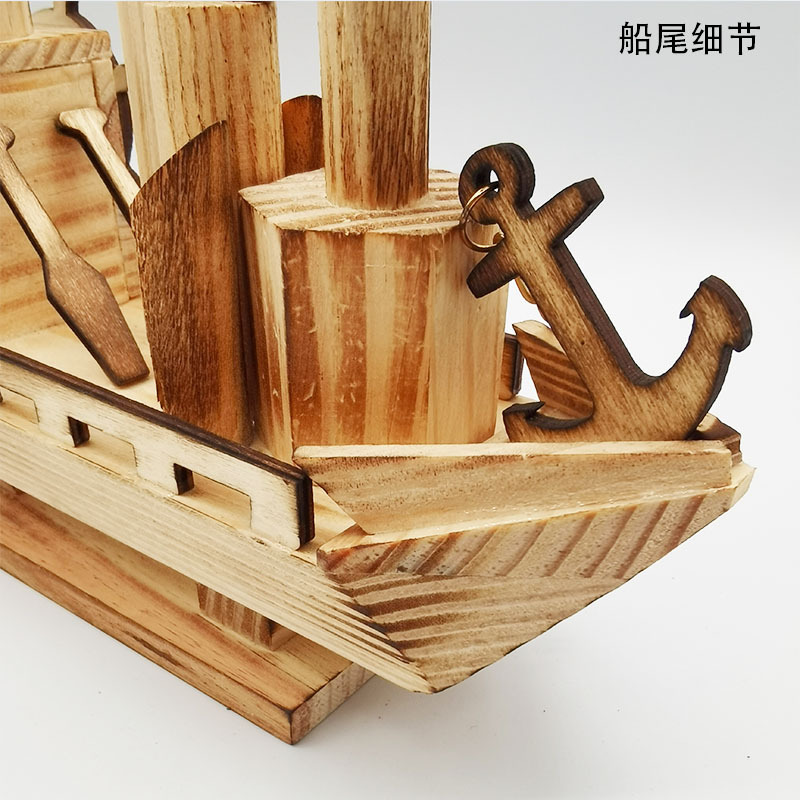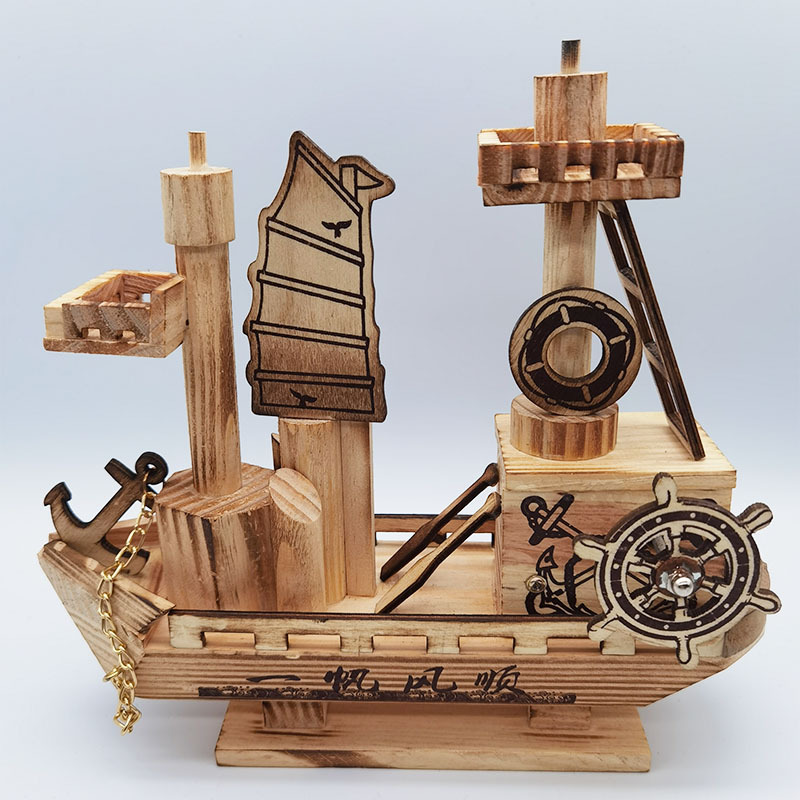 木质机动船新款一帆风顺音乐帆船模型办公室摆件木制学生礼品