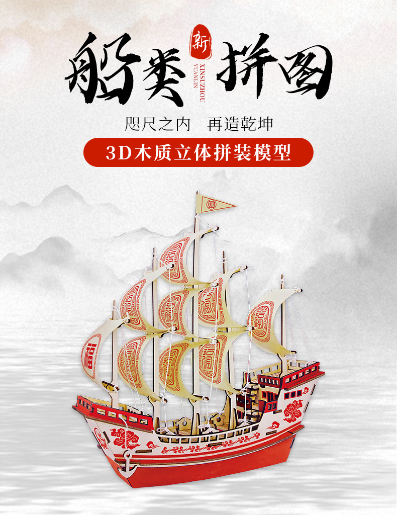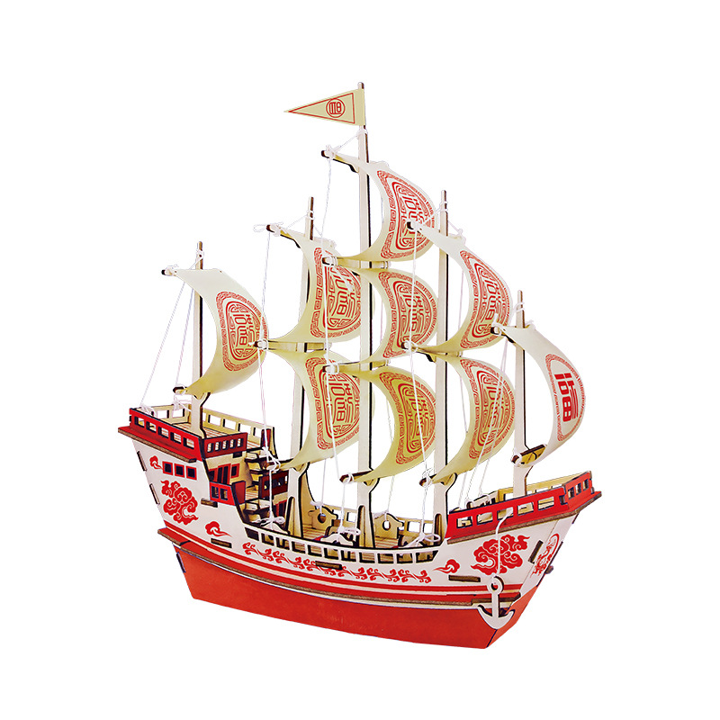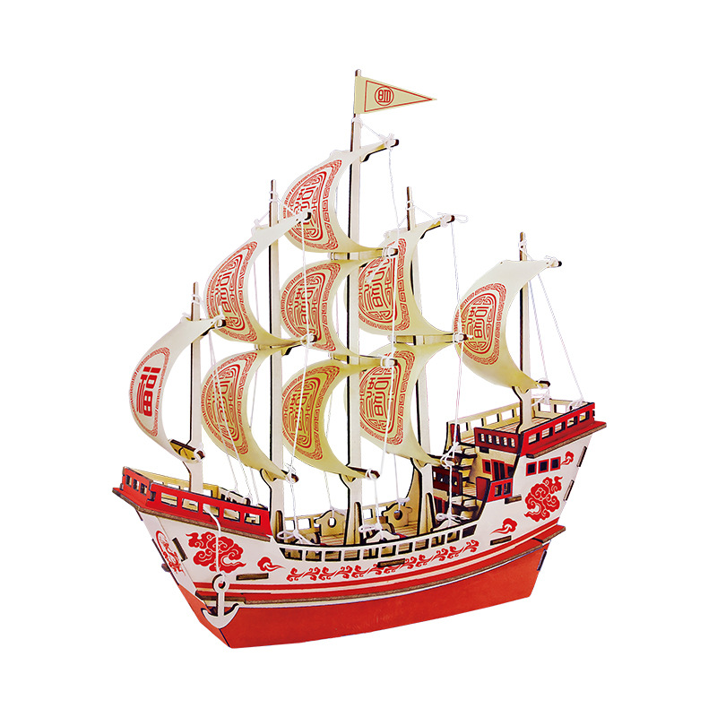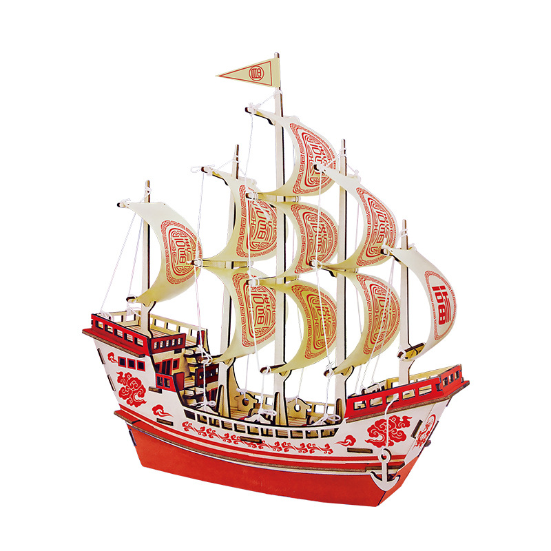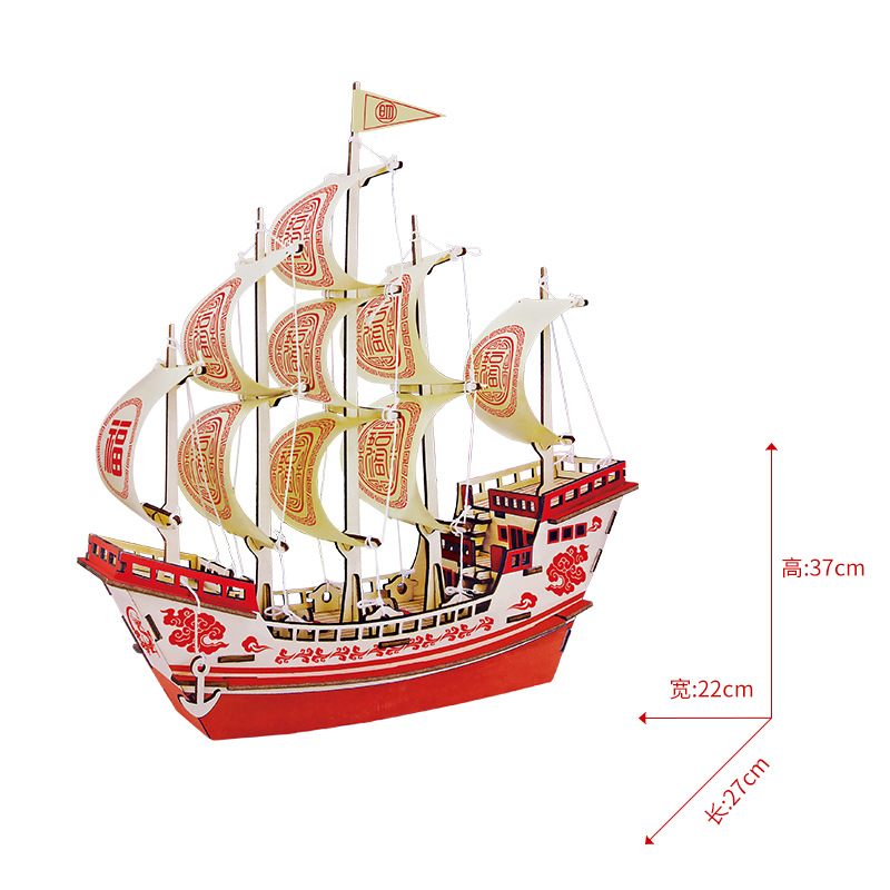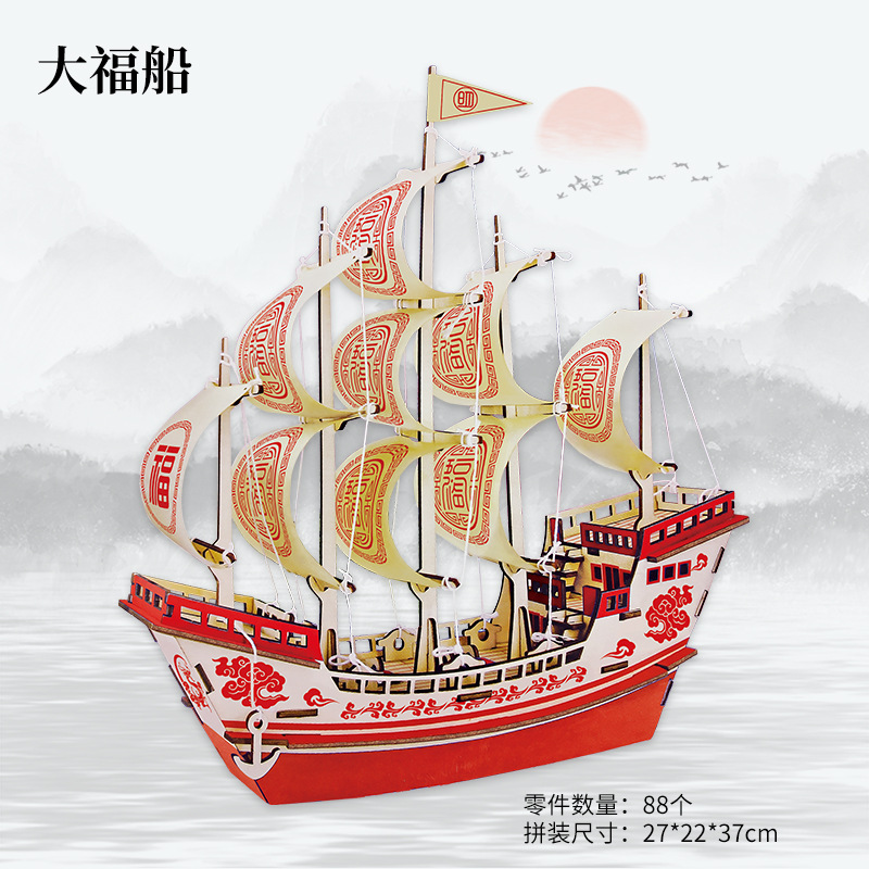 3d立体拼图大福船木制仿真拼装帆船模型手工diy船舰玩具