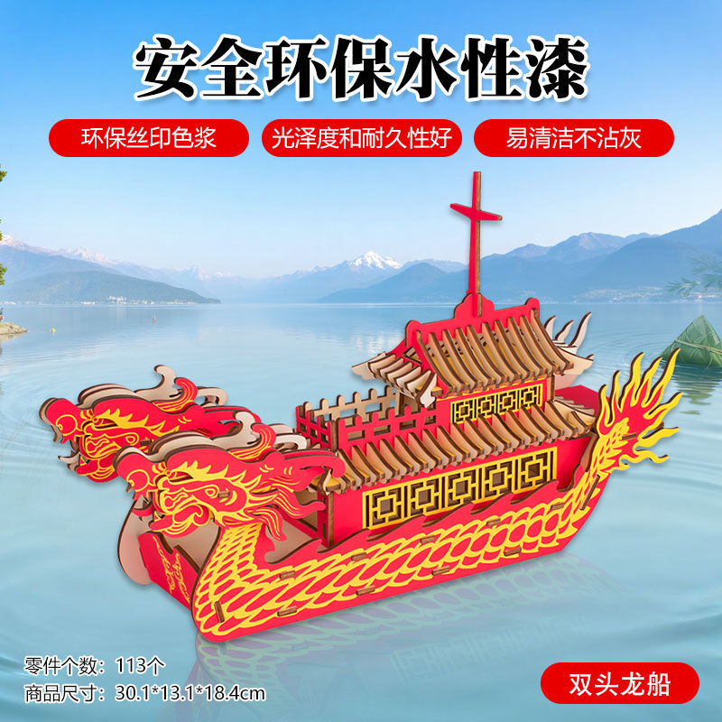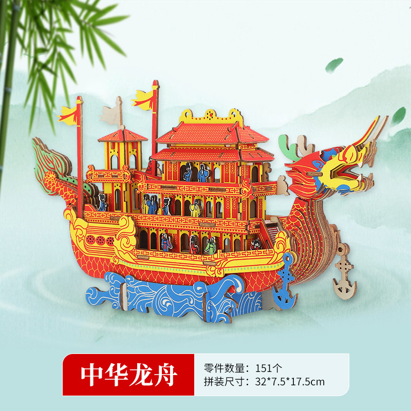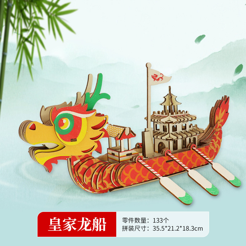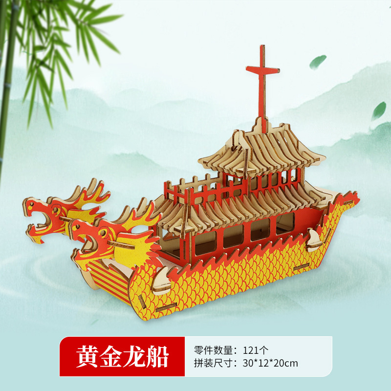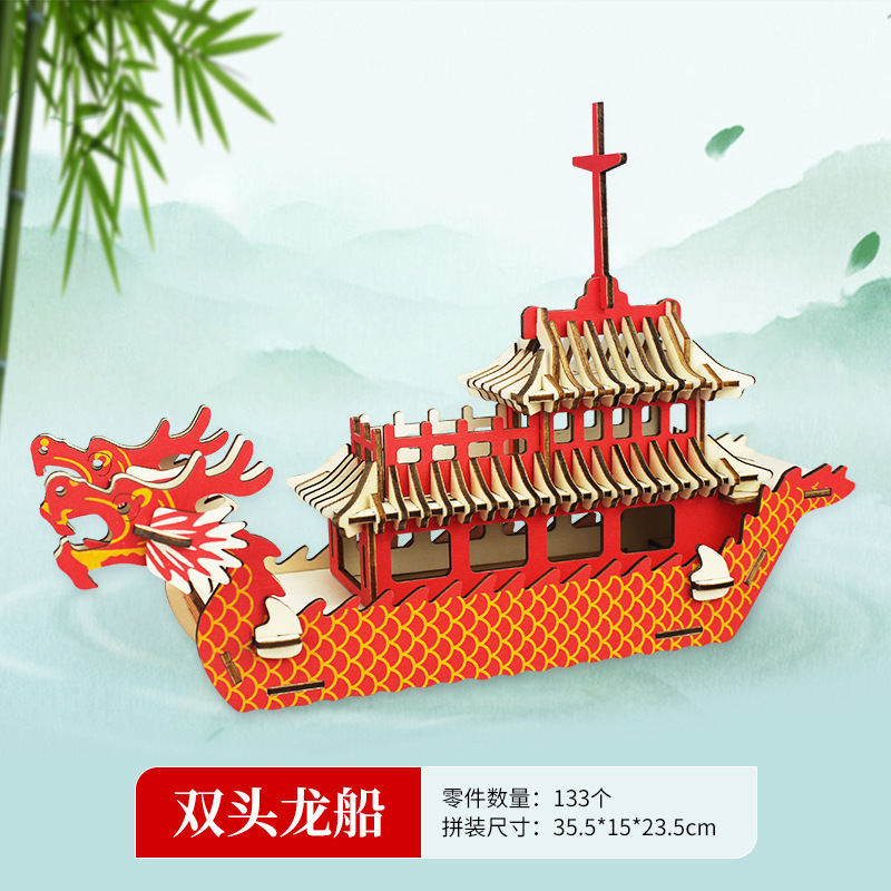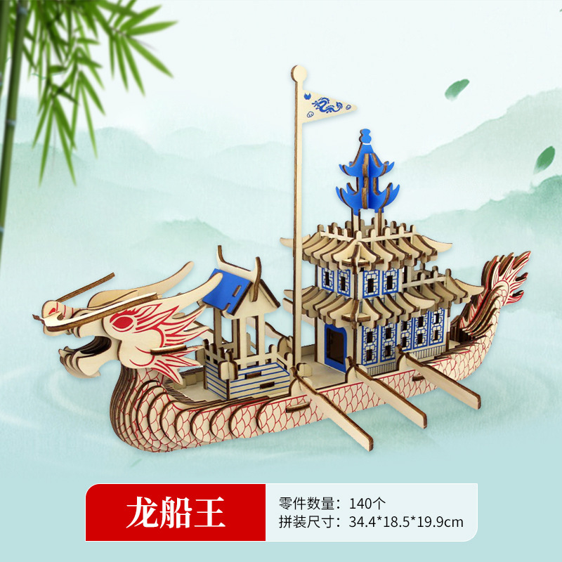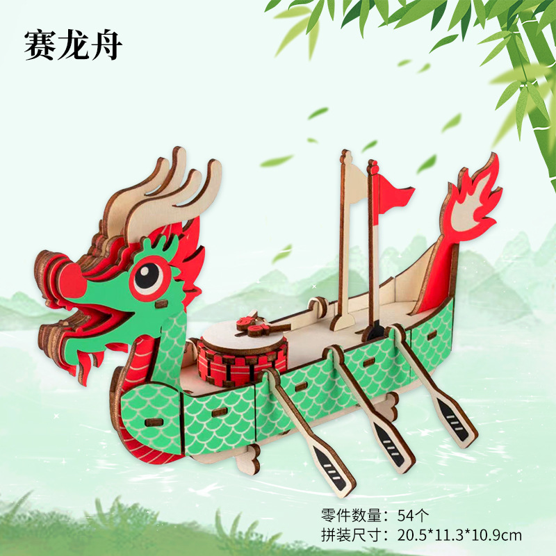 木质3D立体拼图龙舟模型手工DIY拼装传统工艺船装饰