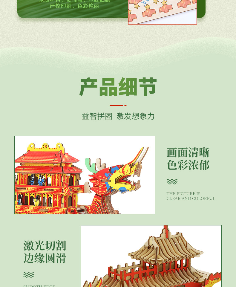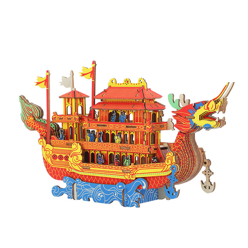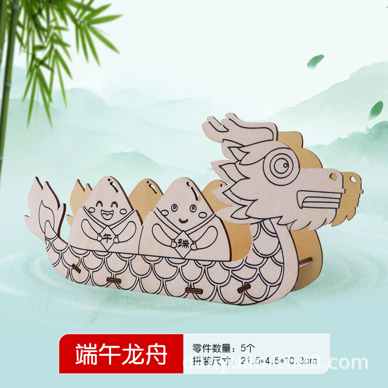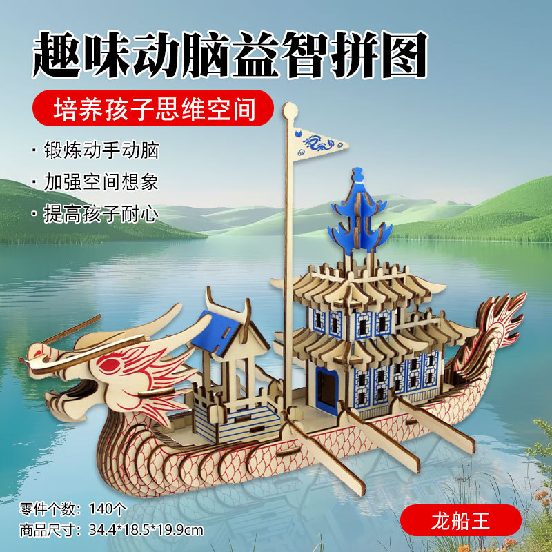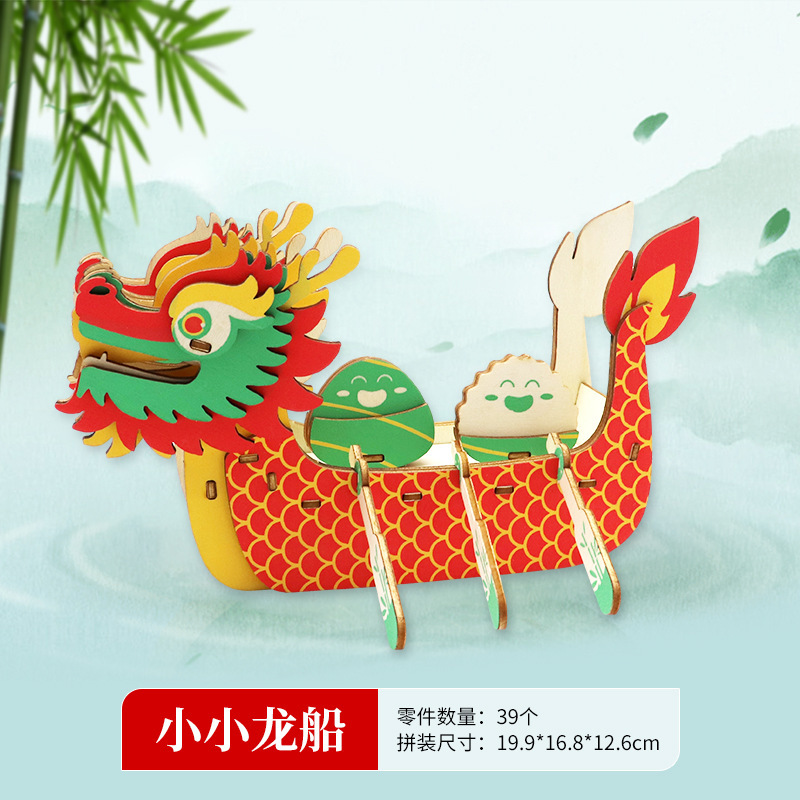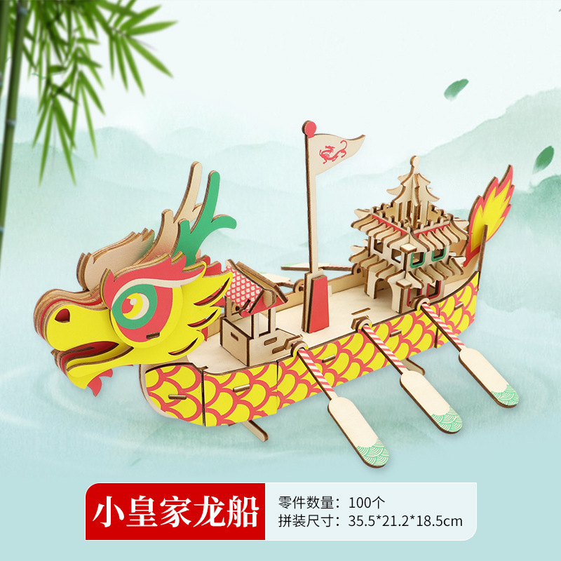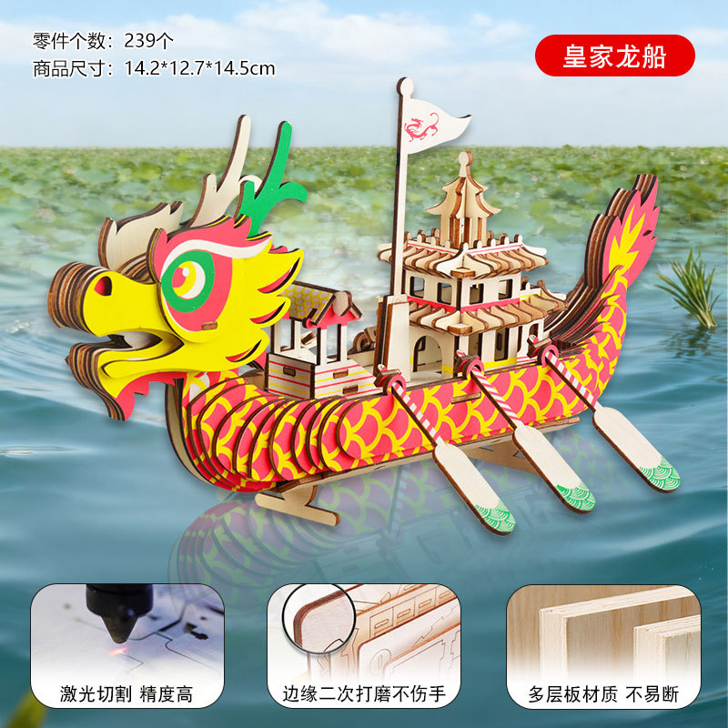 木质3D立体拼图龙舟模型手工DIY拼装传统工艺船装饰