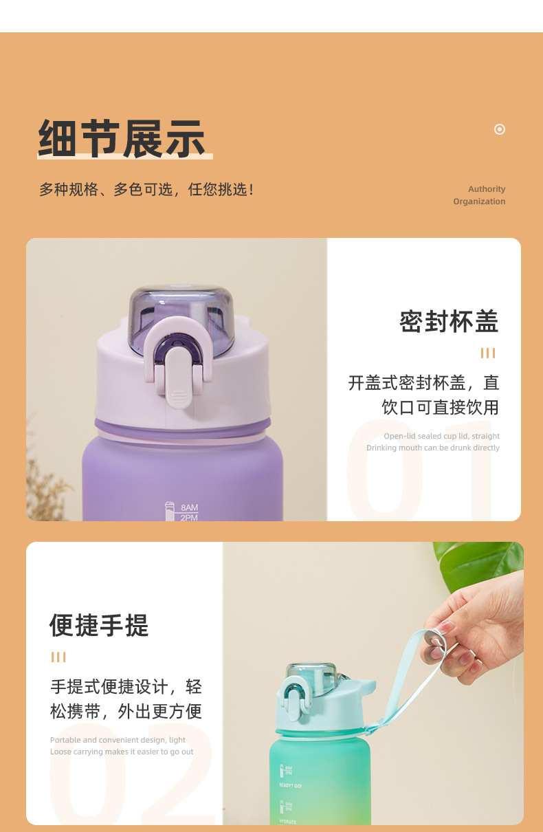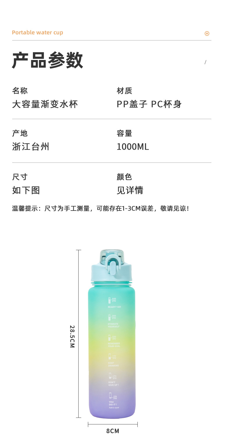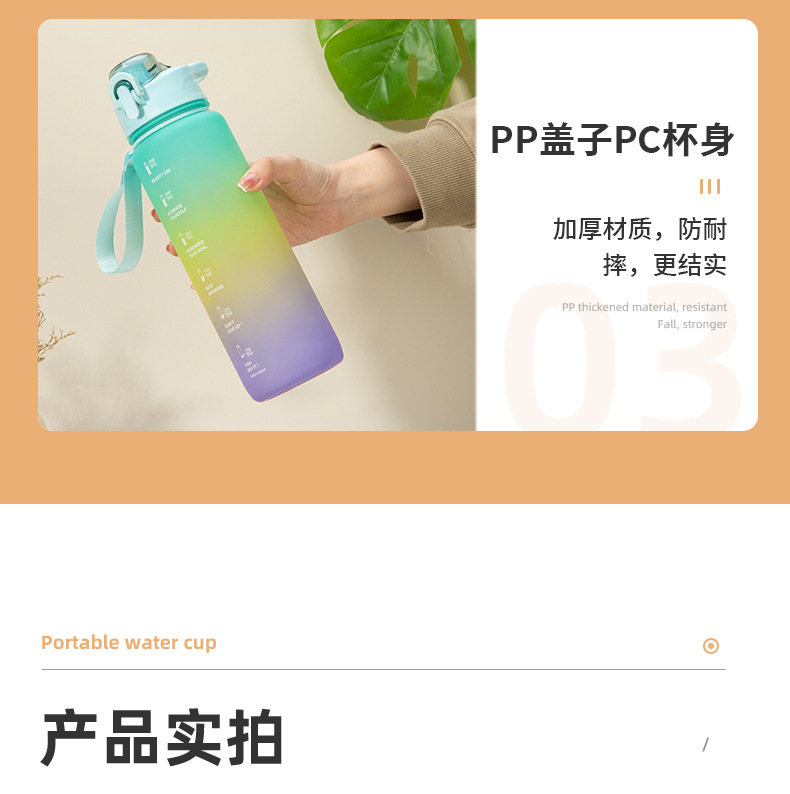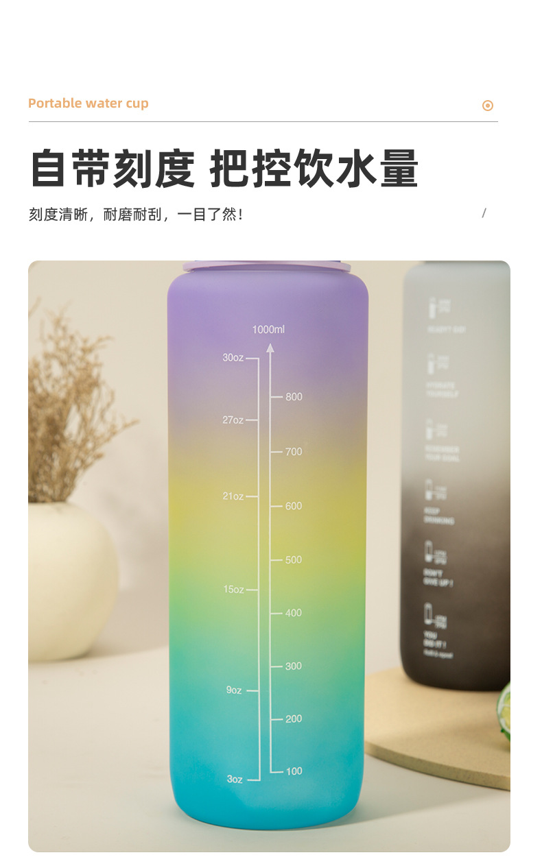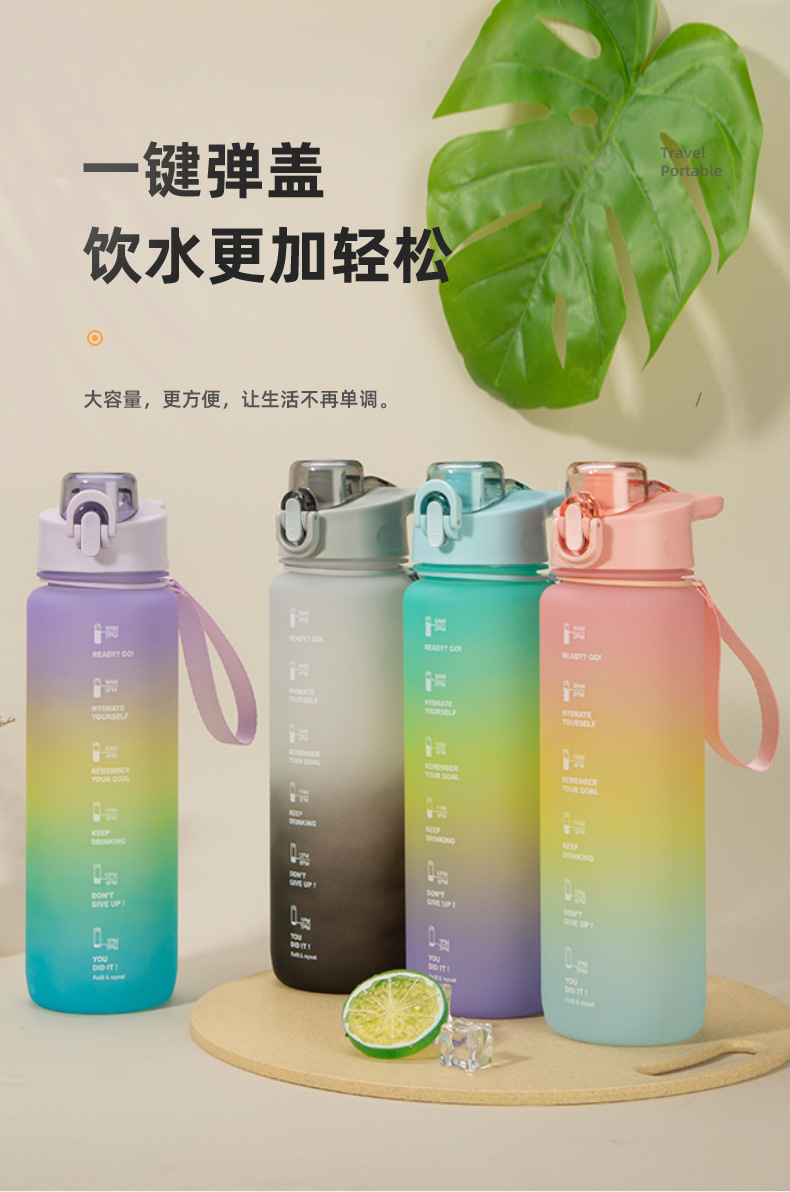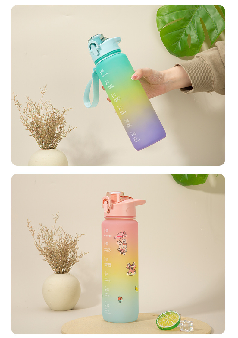 三色渐变杯子南美骑行水瓶户外磨砂彩虹运动水杯塑料