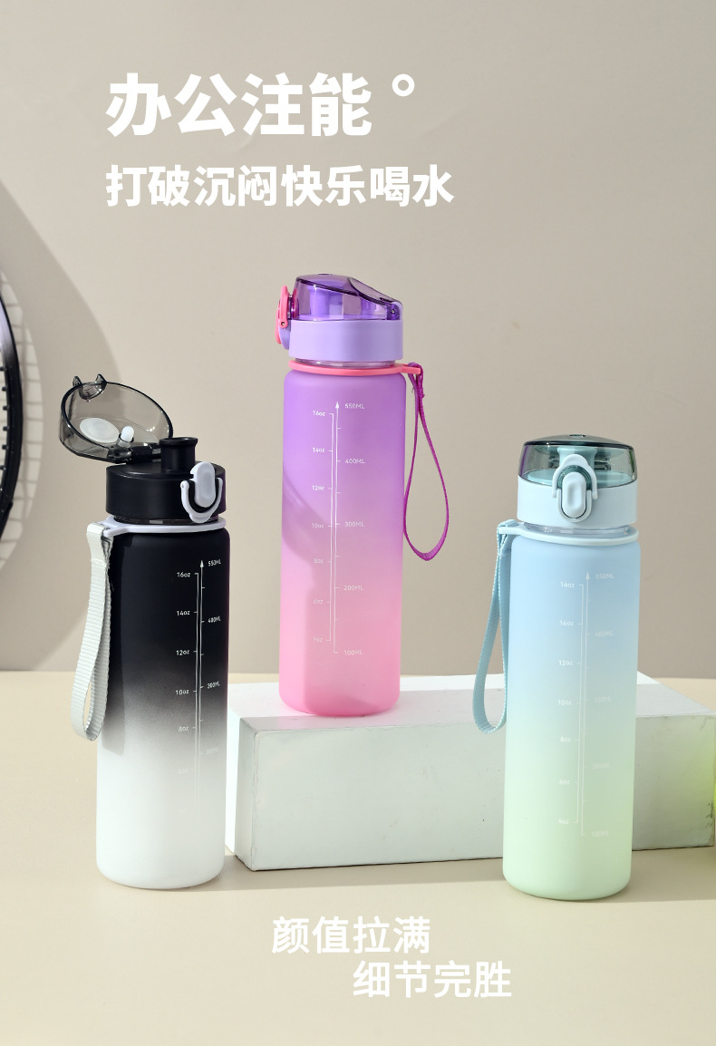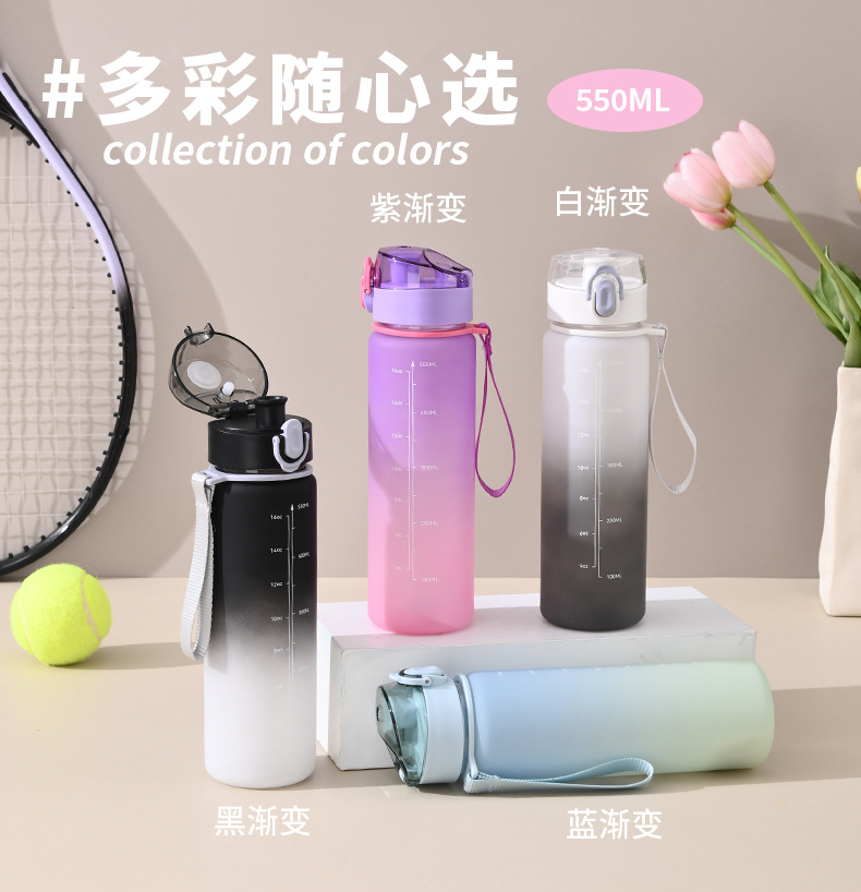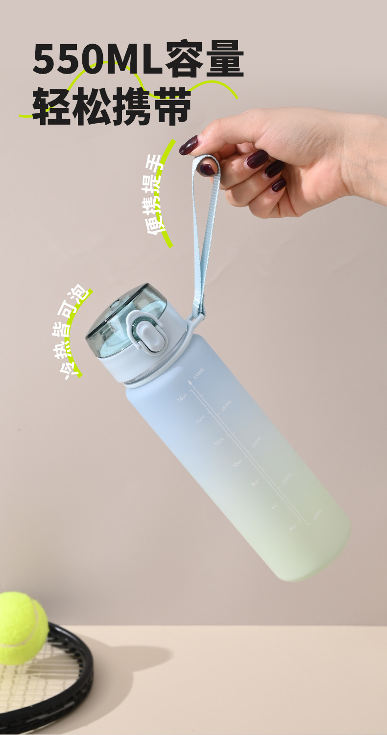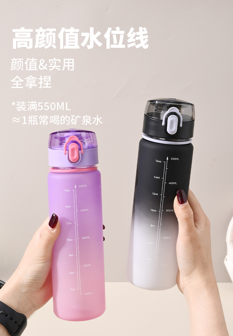 16oz渐变色塑料杯子女党运动水壶便携太空杯高级感水杯夏季