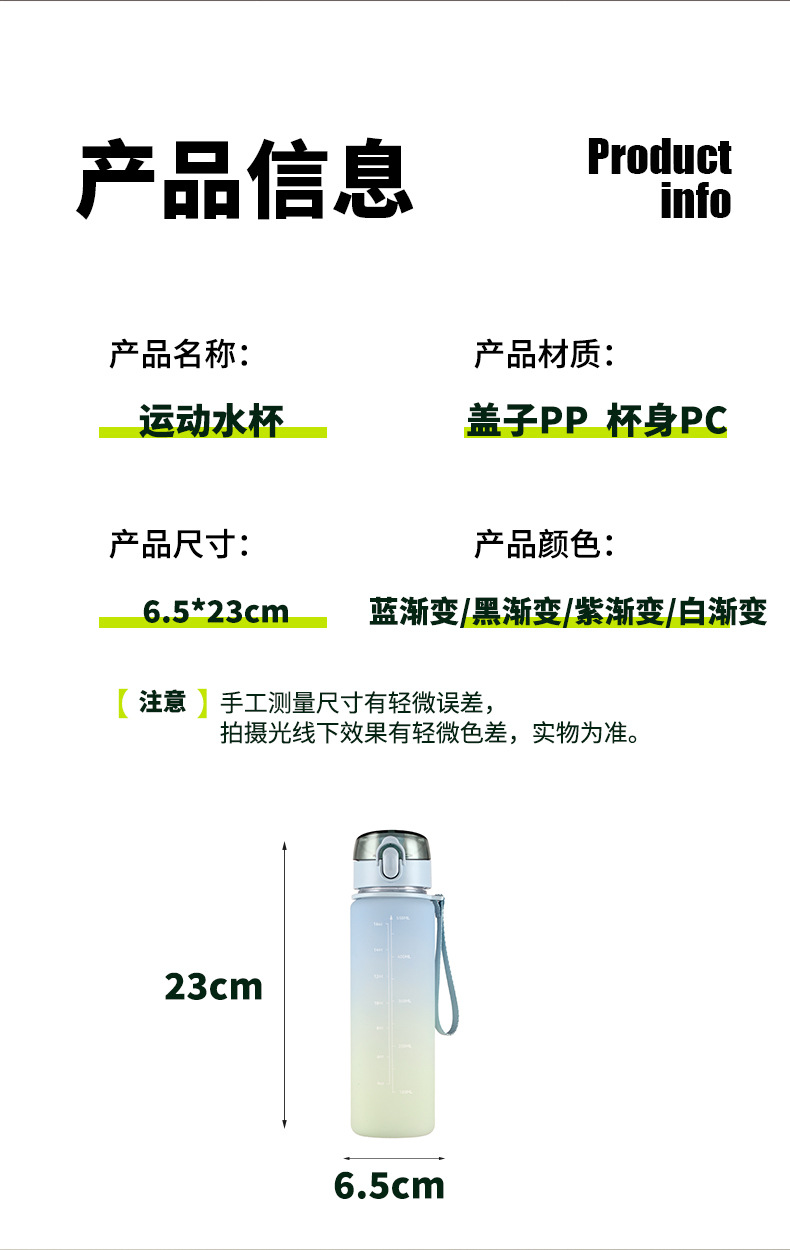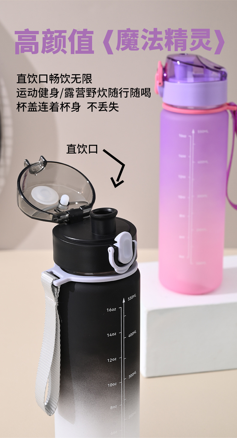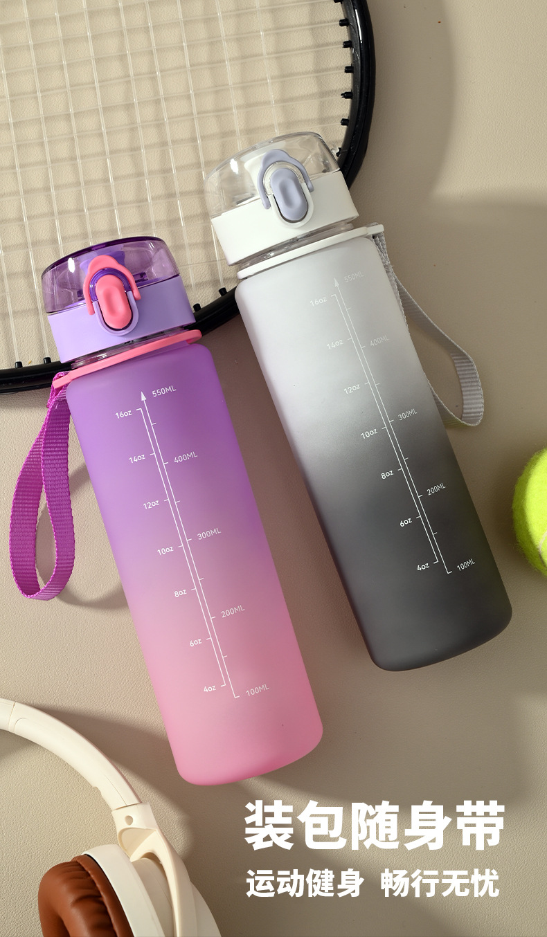16oz渐变色塑料杯子女党运动水壶便携太空杯高级感水杯夏季