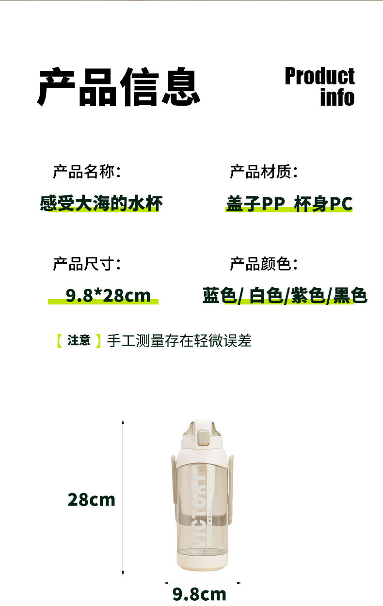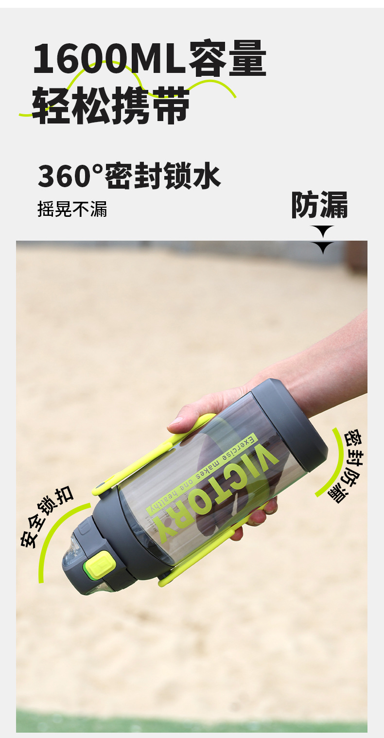 运动水壶1600ml运动水杯夏季手提大容量水桶杯户外高颜值塑料杯子
