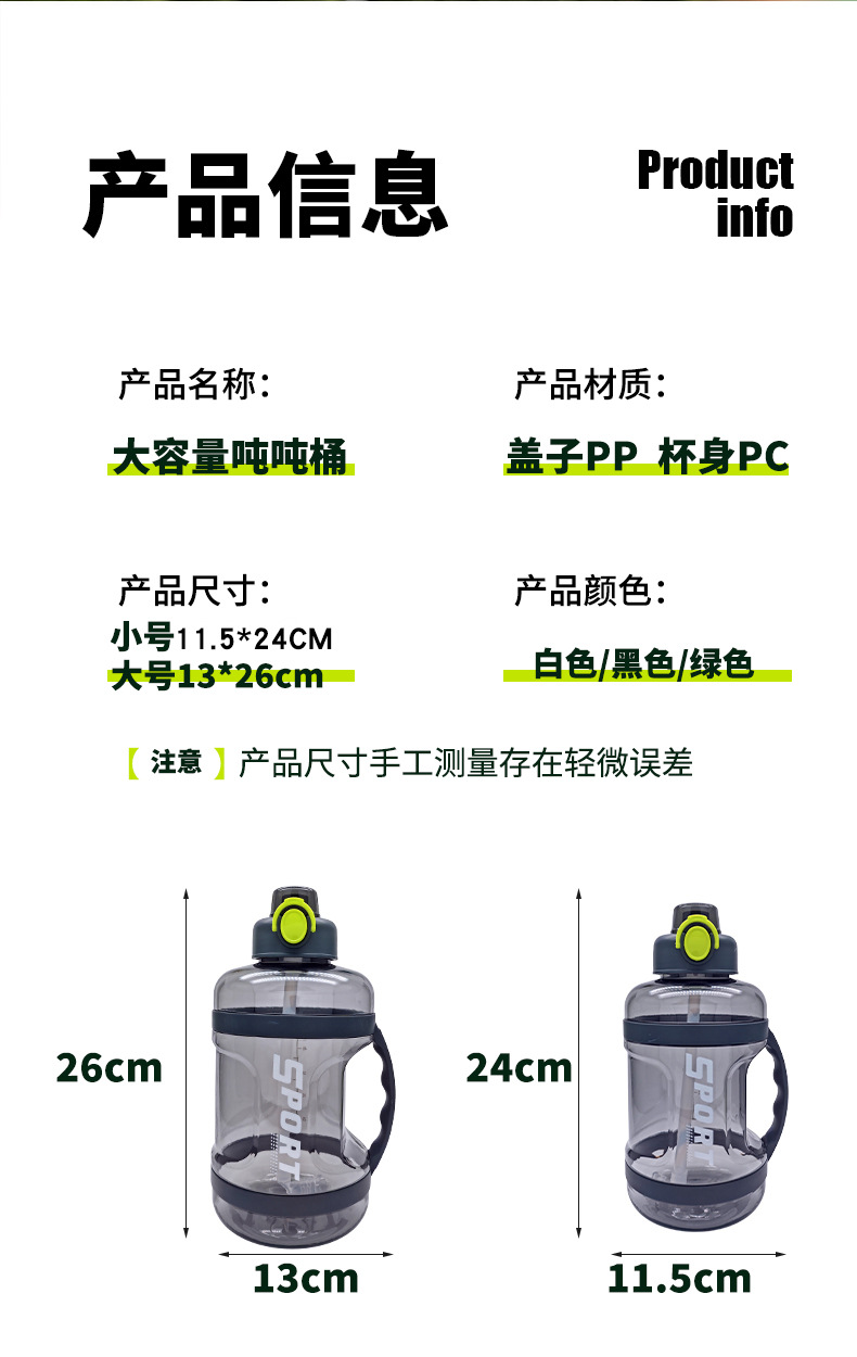 大容量骑行水杯吨桶吨防烫手柄运动健身大水壶耐高温吸管顿顿桶