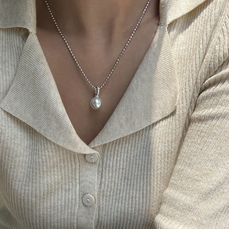 莹润澳白色水晶珍珠万能扣闪珠项链轻奢小众毛衣链女
