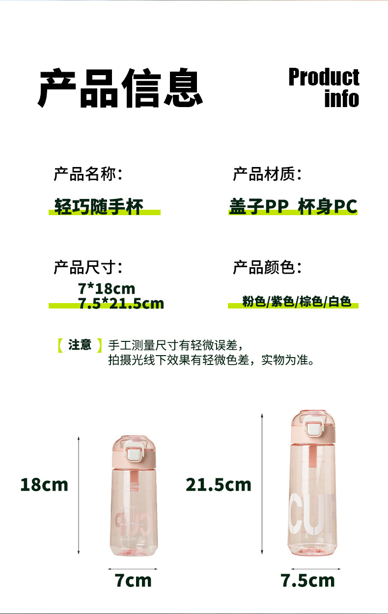 随手杯女生高颜值塑料杯子带提绳直饮杯户外运动健身水杯