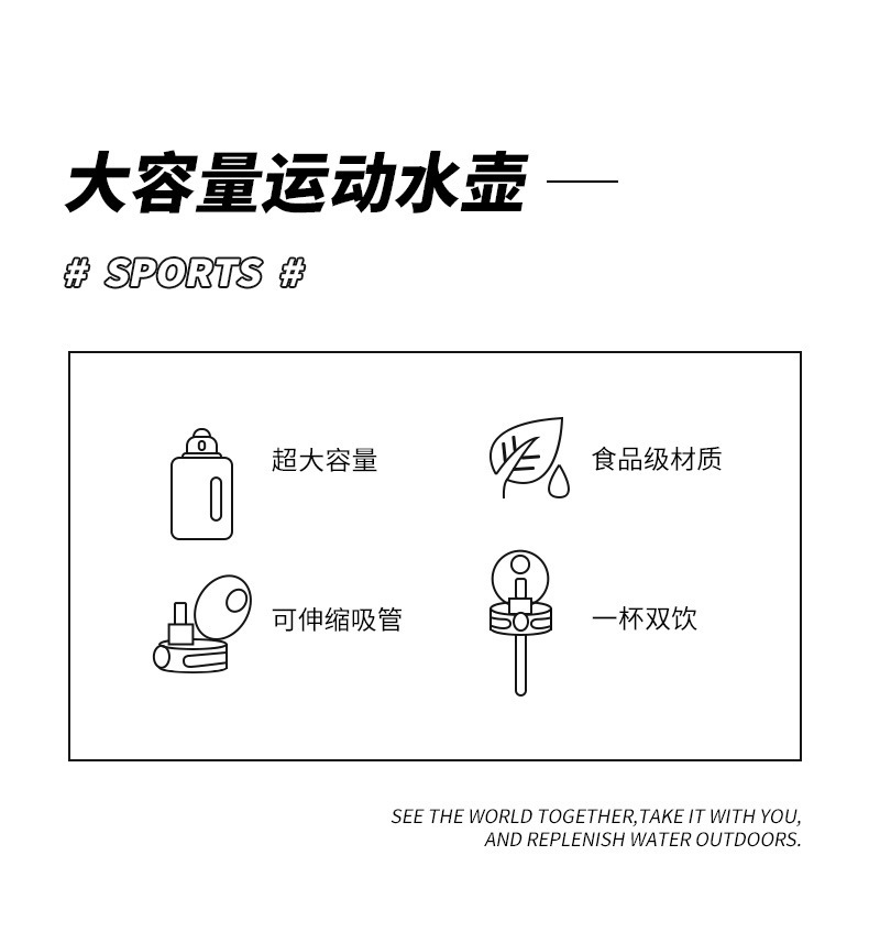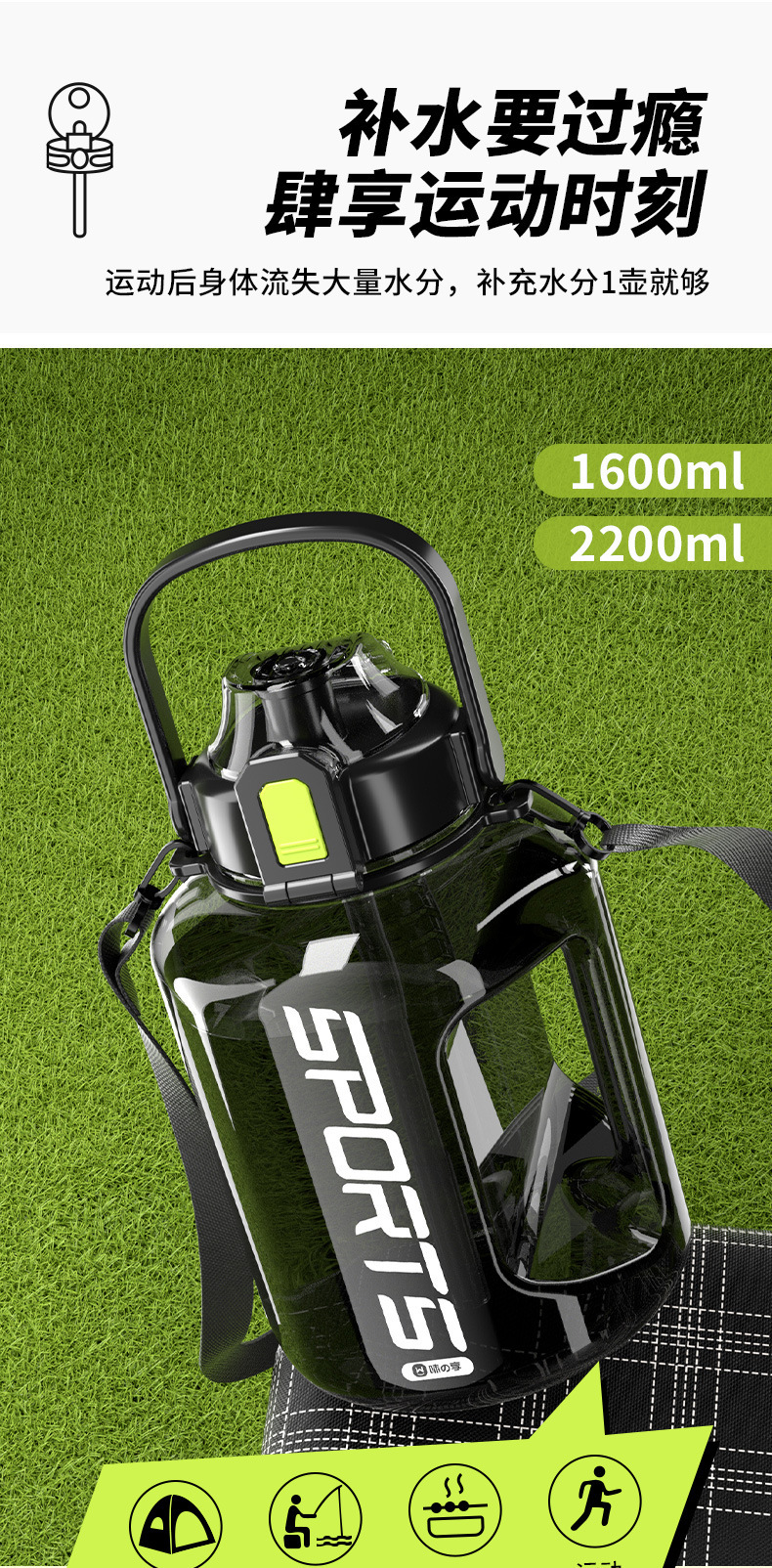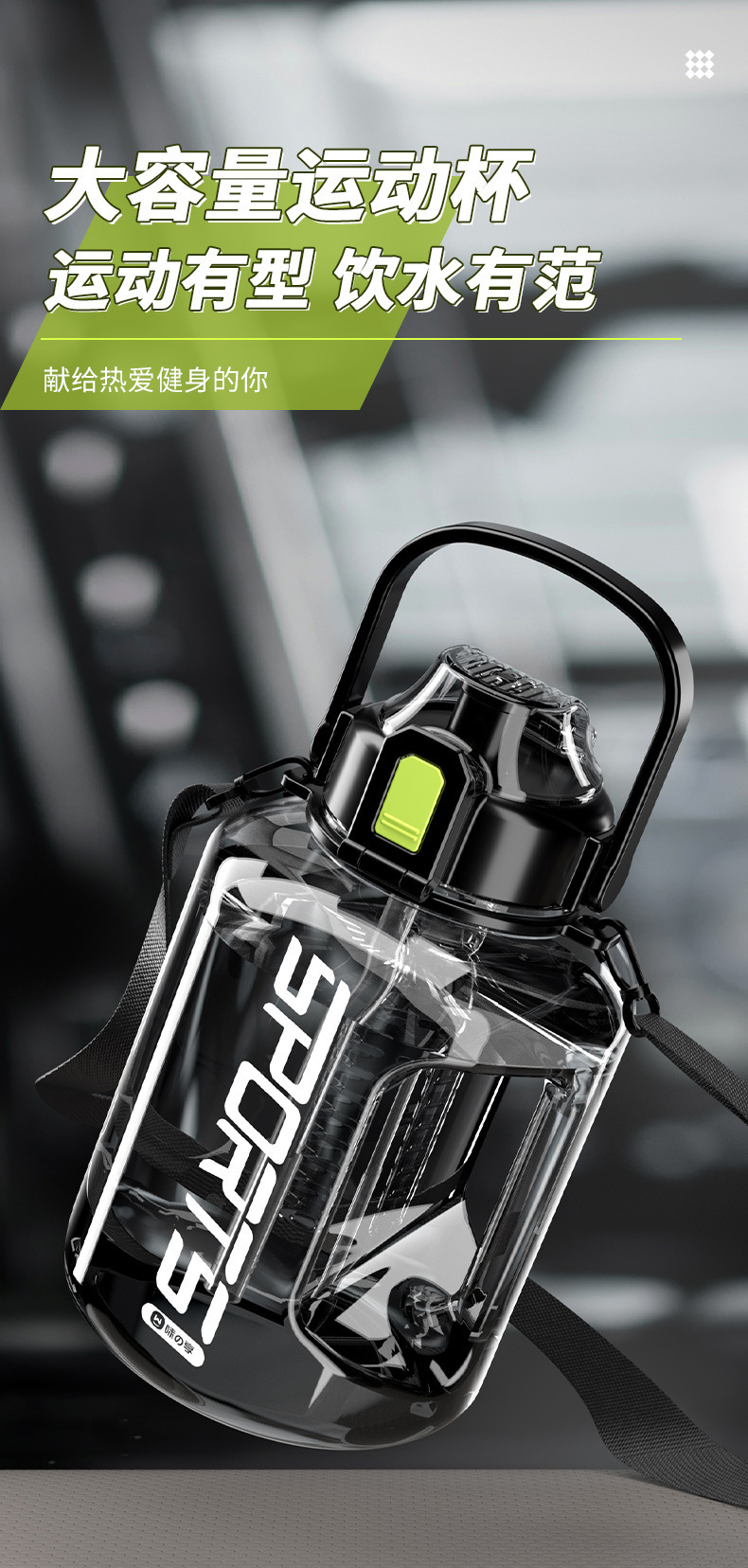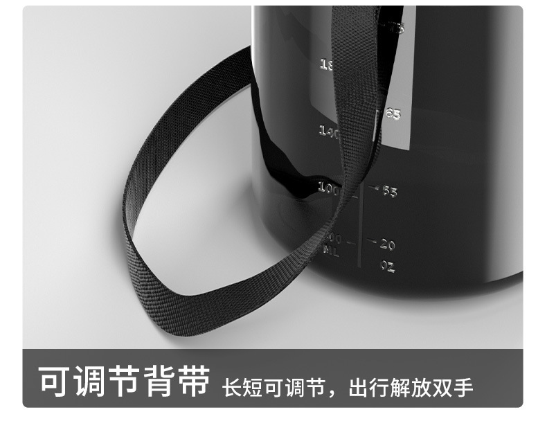 - 【背带款】运动黑1.8L(能装开水)加厚PC