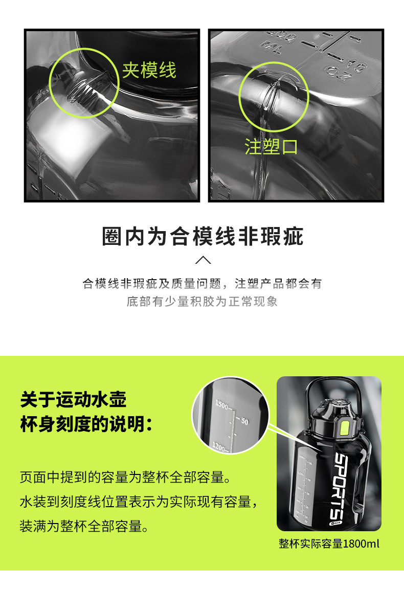 - 【提手款】运动黑1.8L【可装开水】加厚PC