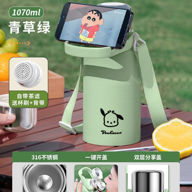 - 【手机架款】清凉绿1270ML送背带-茶隔+真空锁温