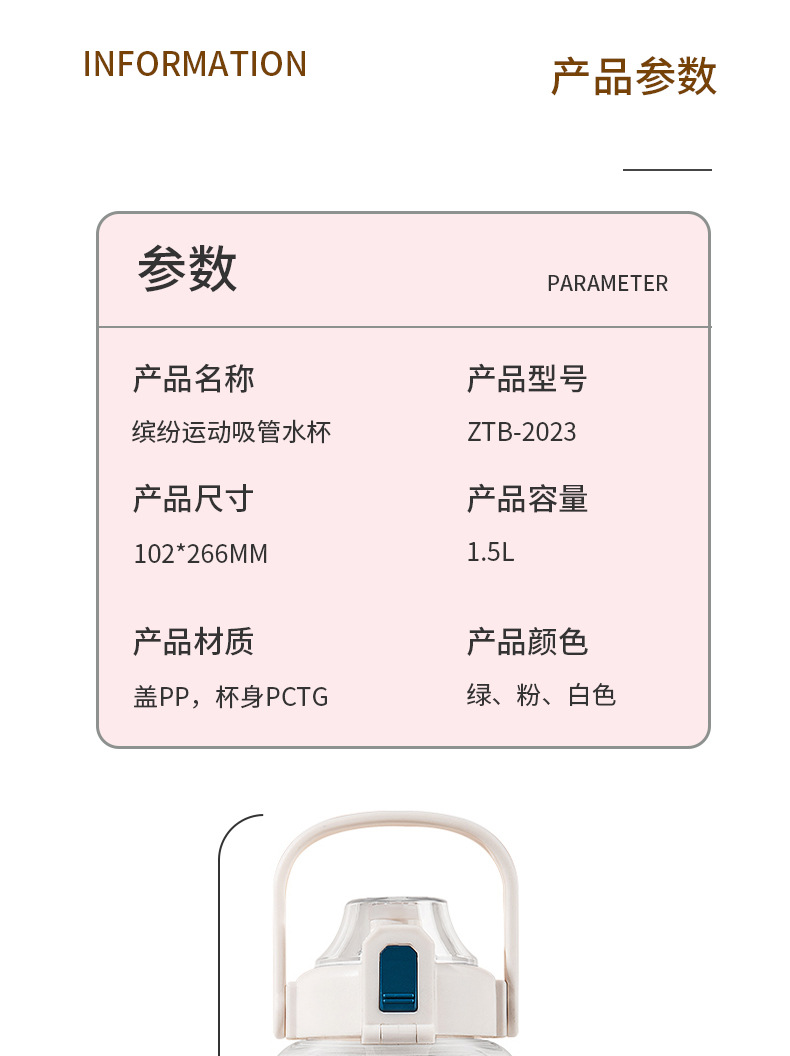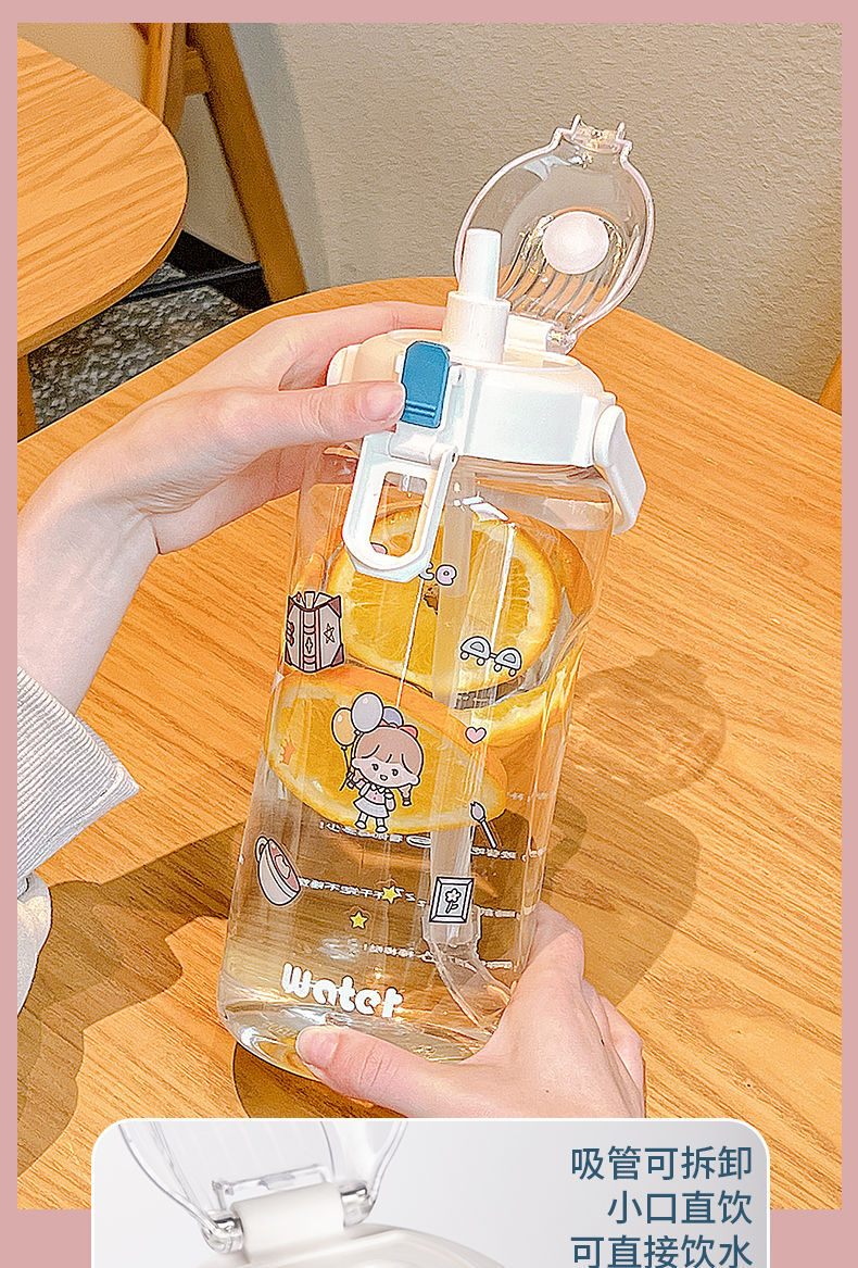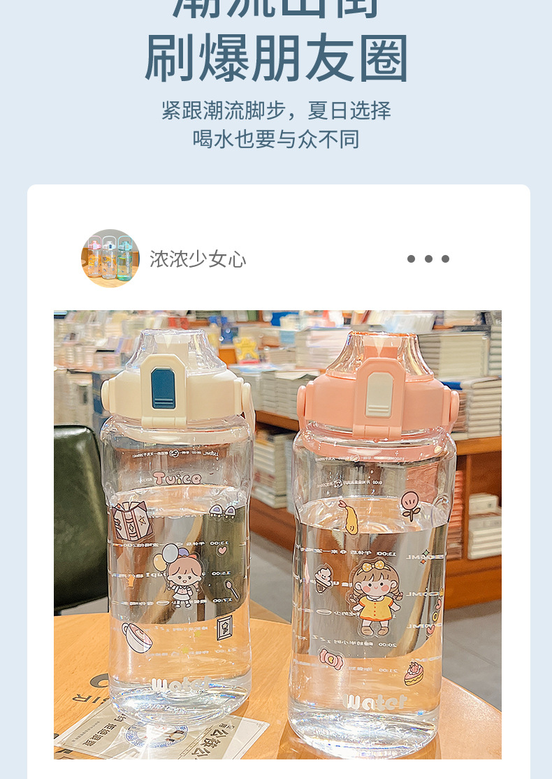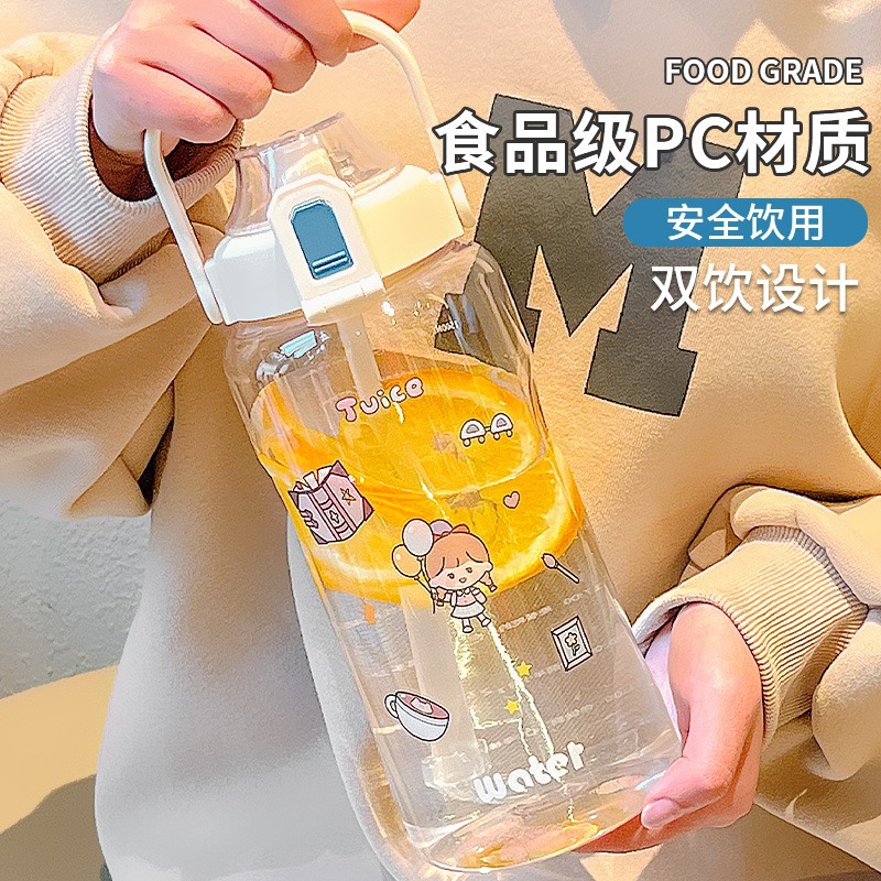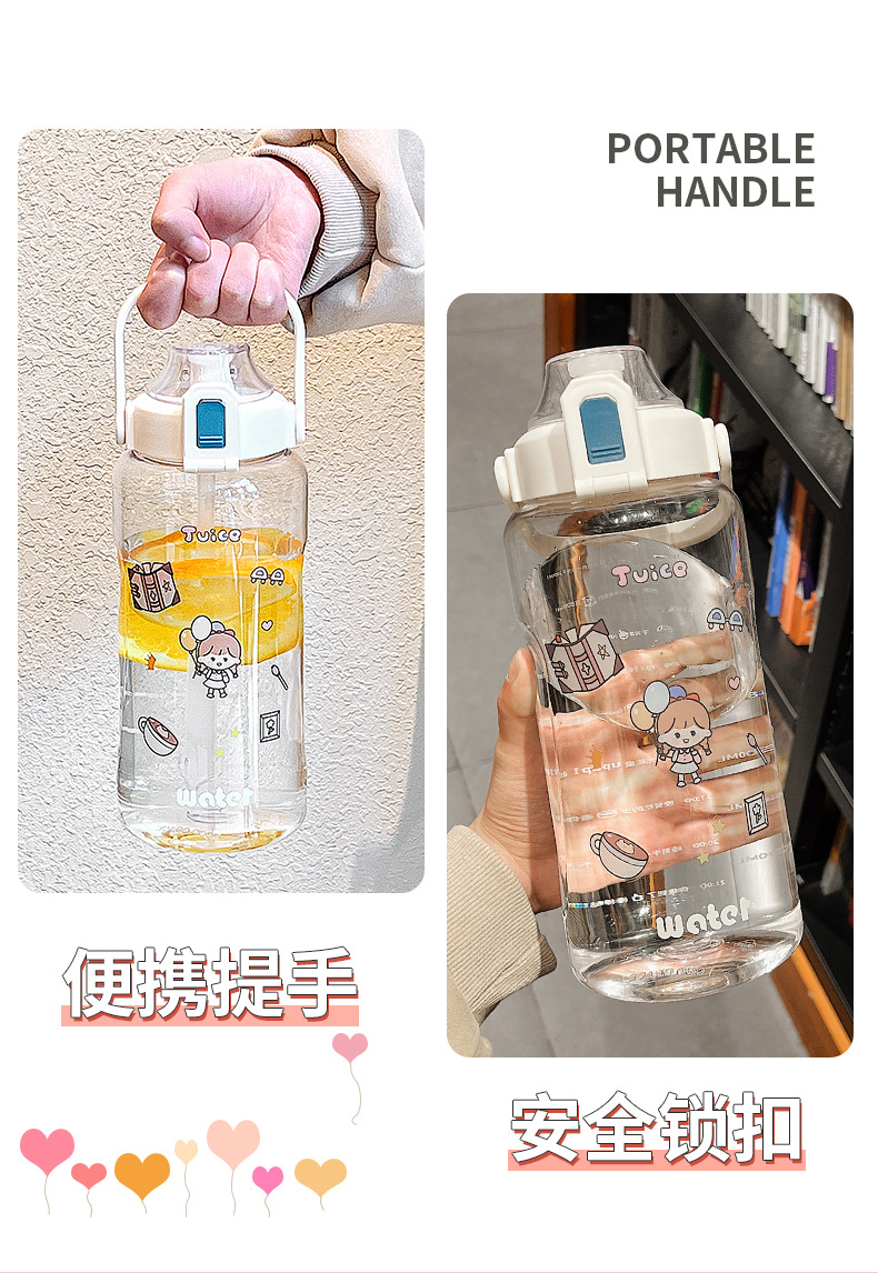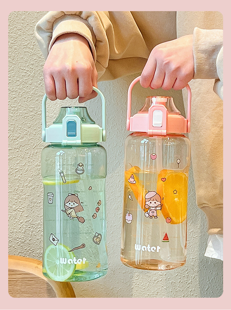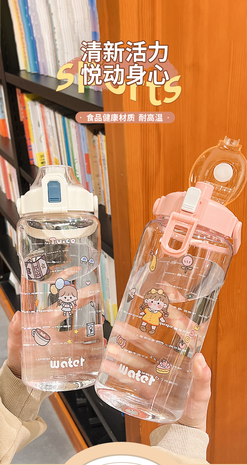 大容量水杯女生可爱吸管杯子便携耐高温塑料运动大水壶便携式