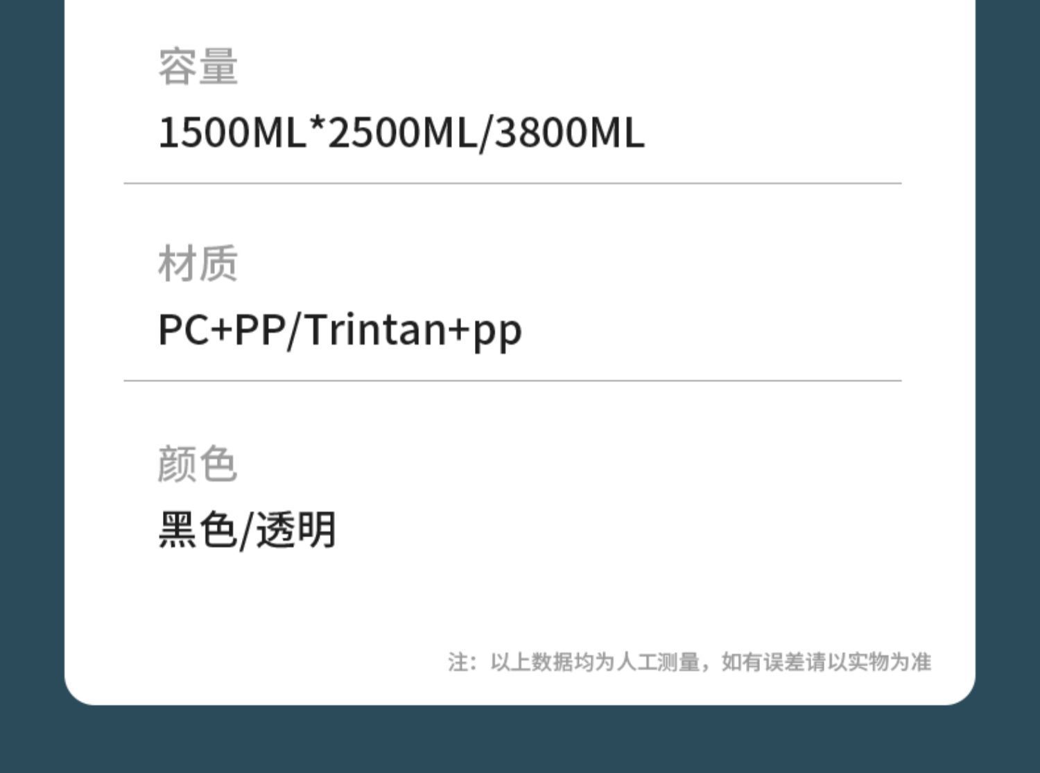 - 黑色4001ml(食品PC/带吸管/提绳)