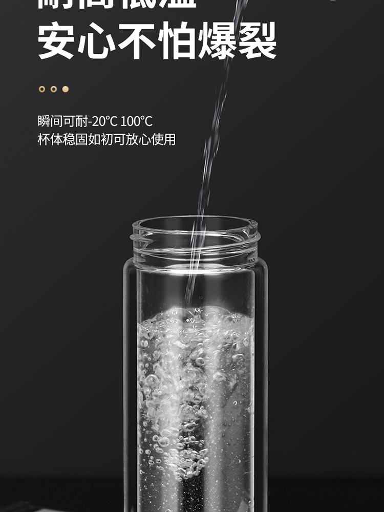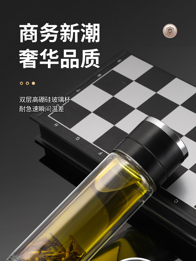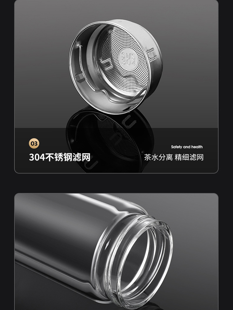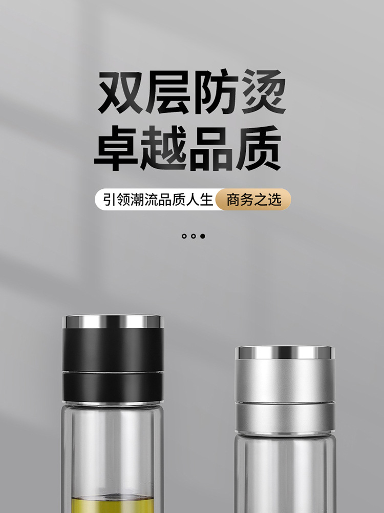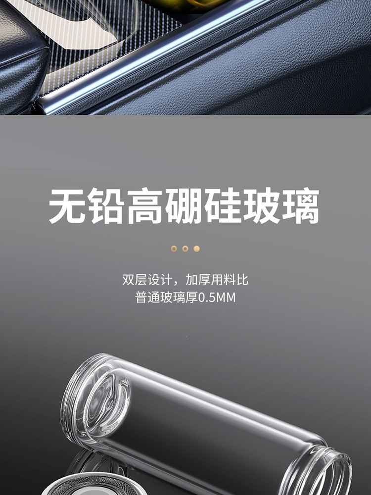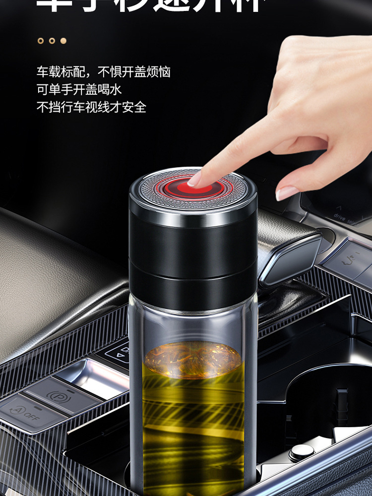 车载速开杯茶水分离杯密封弹扣双层男士一键开盖户外玻璃水杯