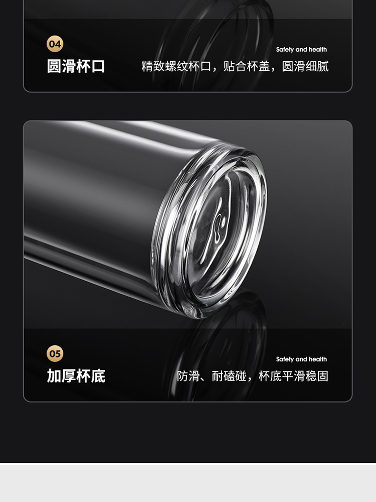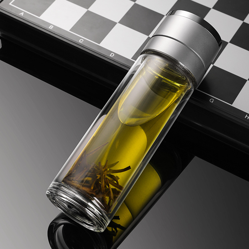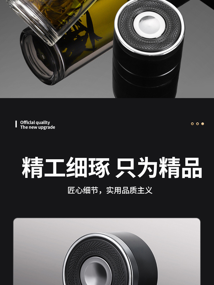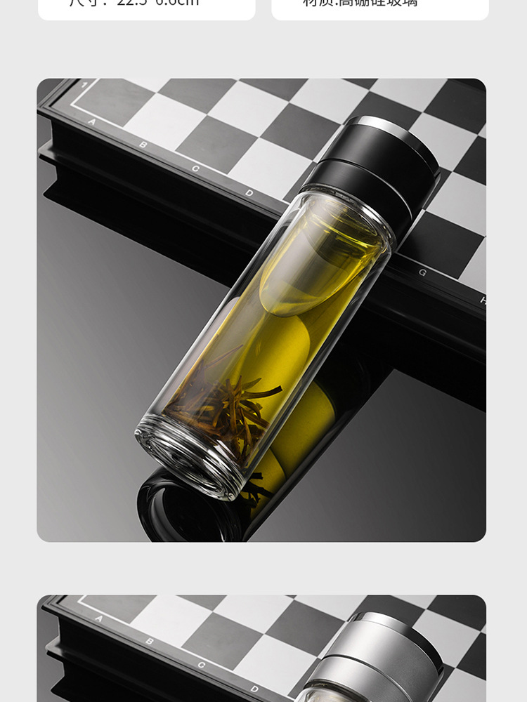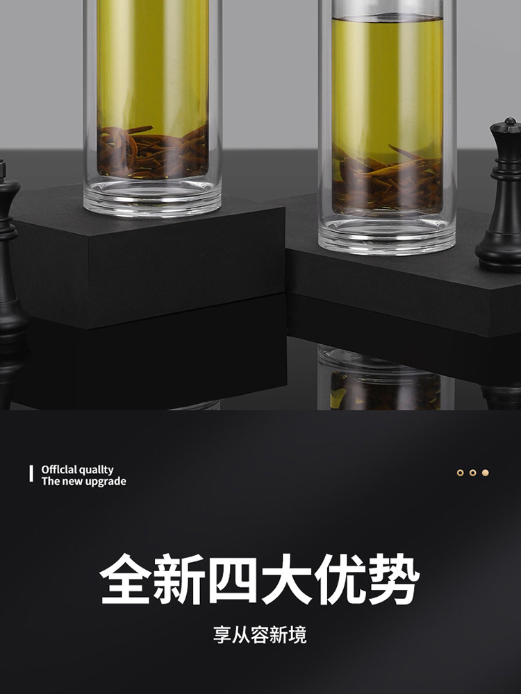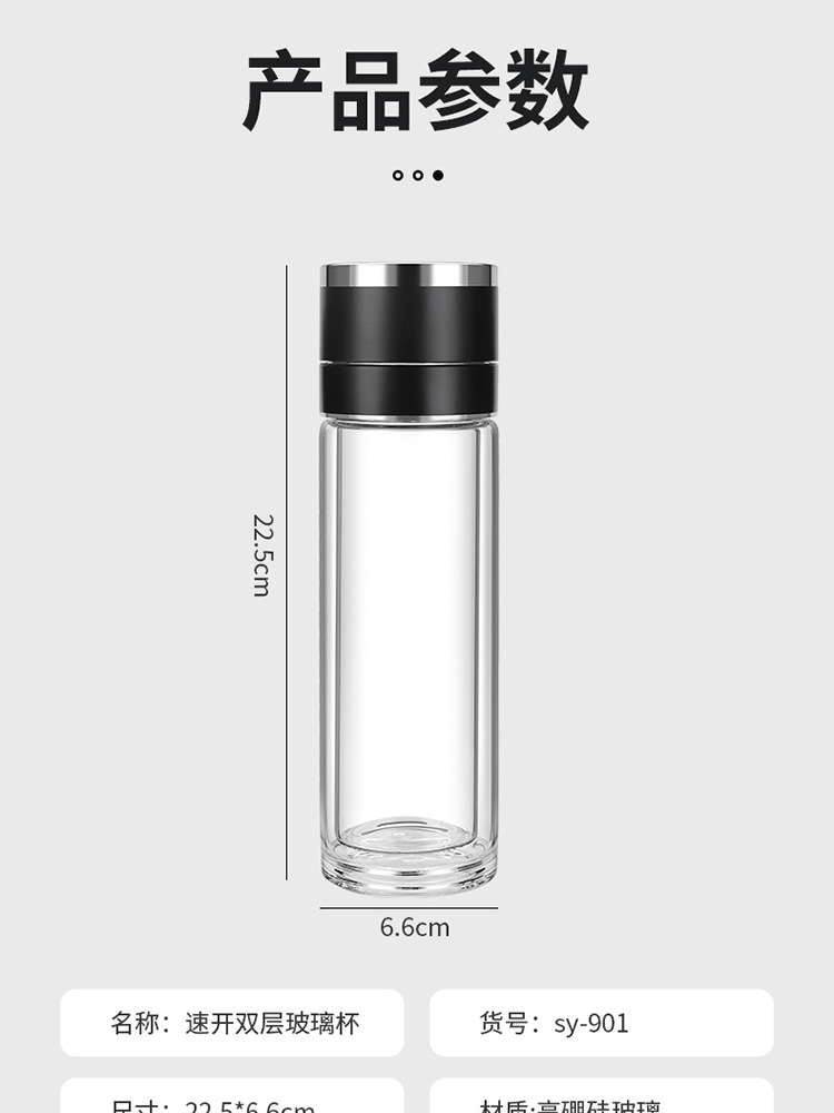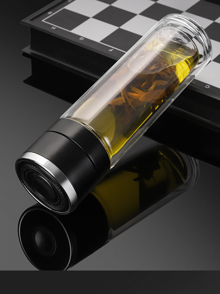 车载速开杯茶水分离杯密封弹扣双层男士一键开盖户外玻璃水杯