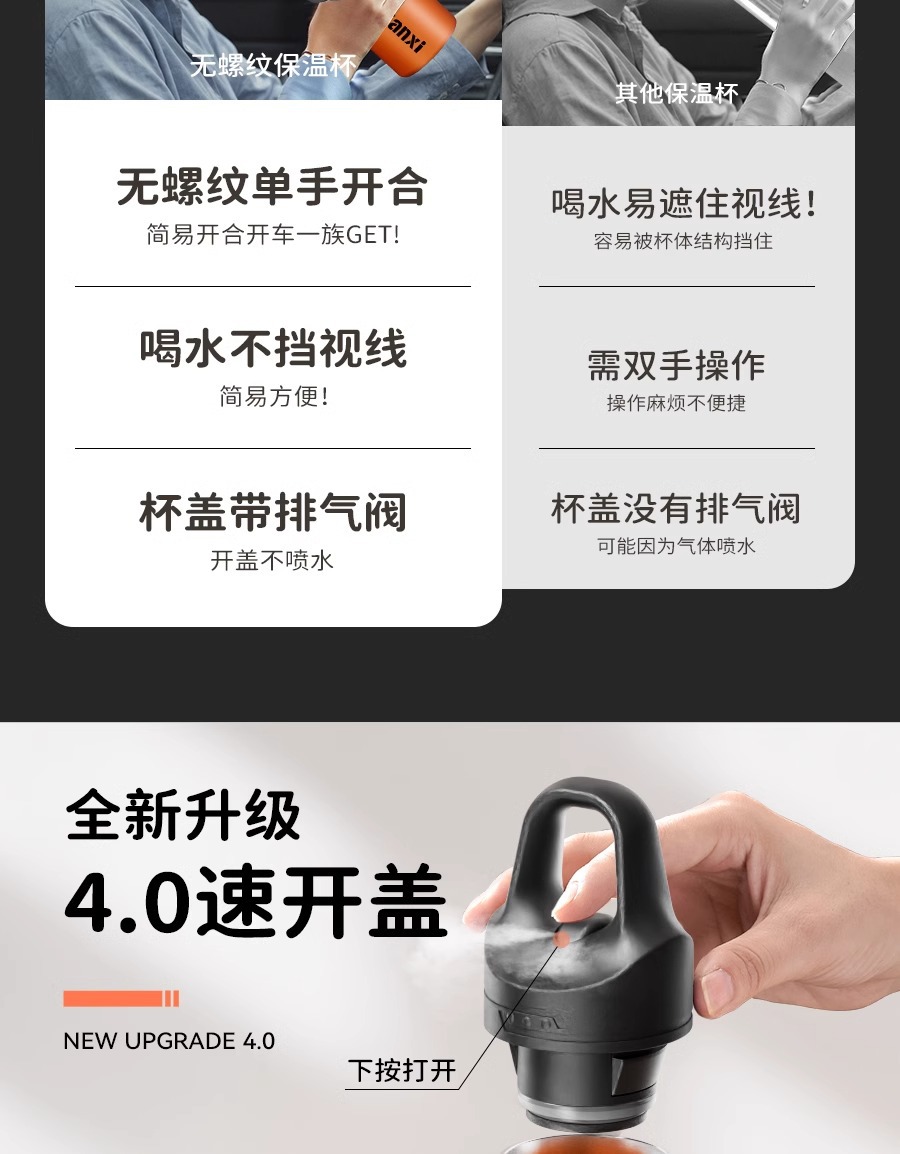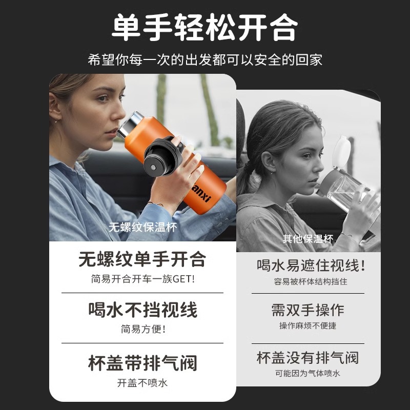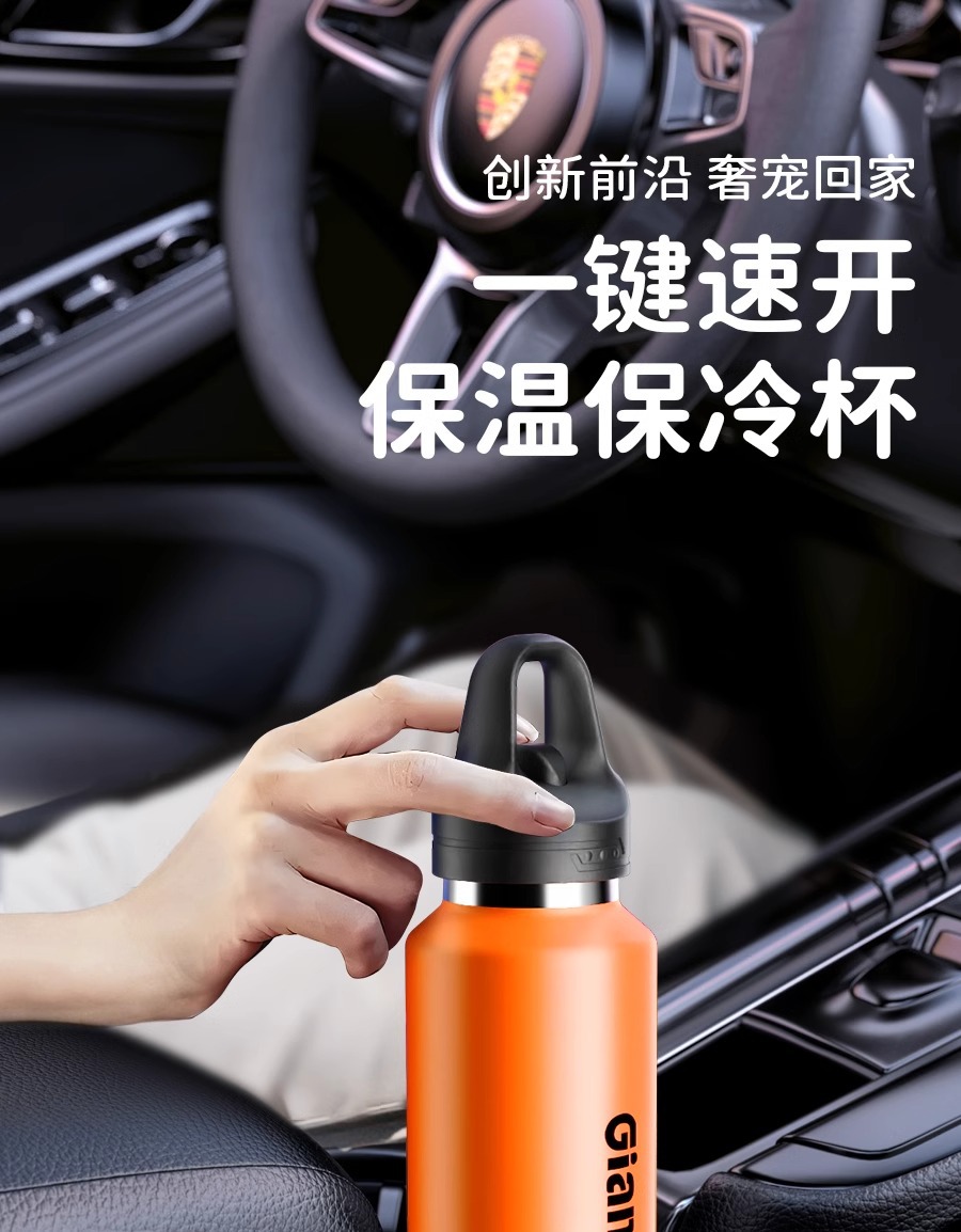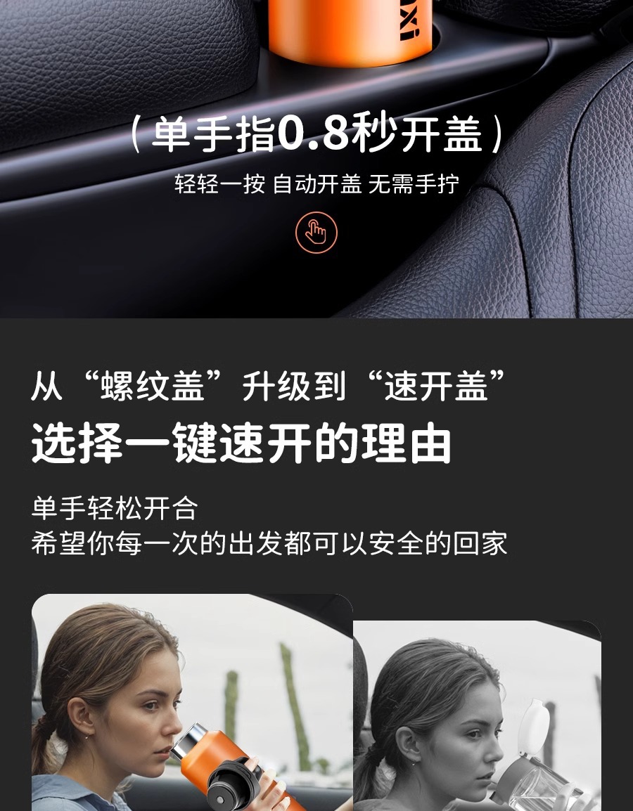 骑行车载一键开盖泡茶保温杯户外运动便携不锈钢保温大容量水杯