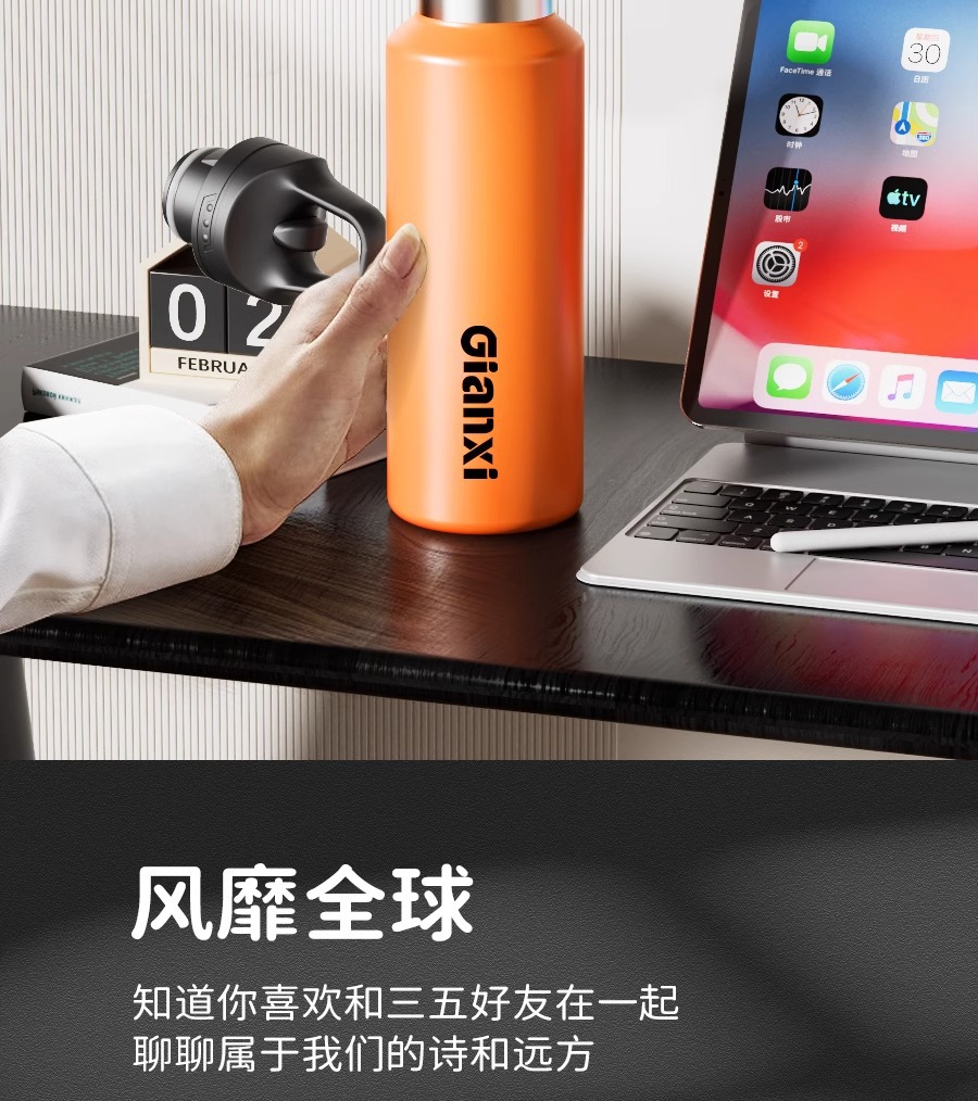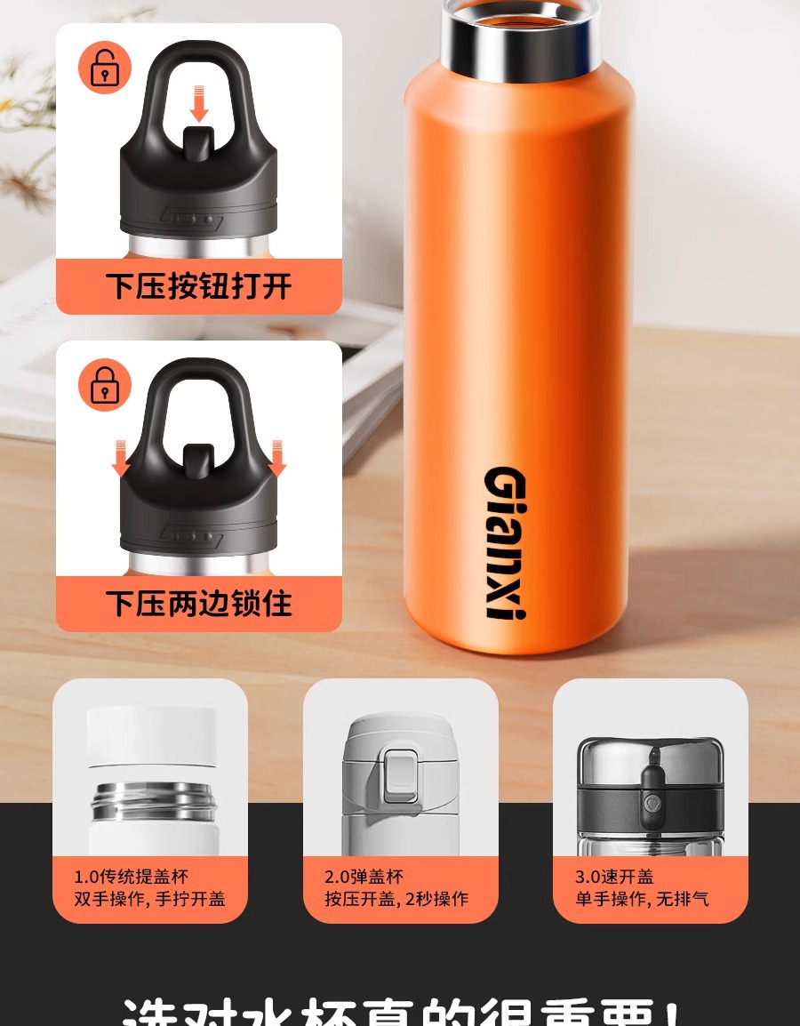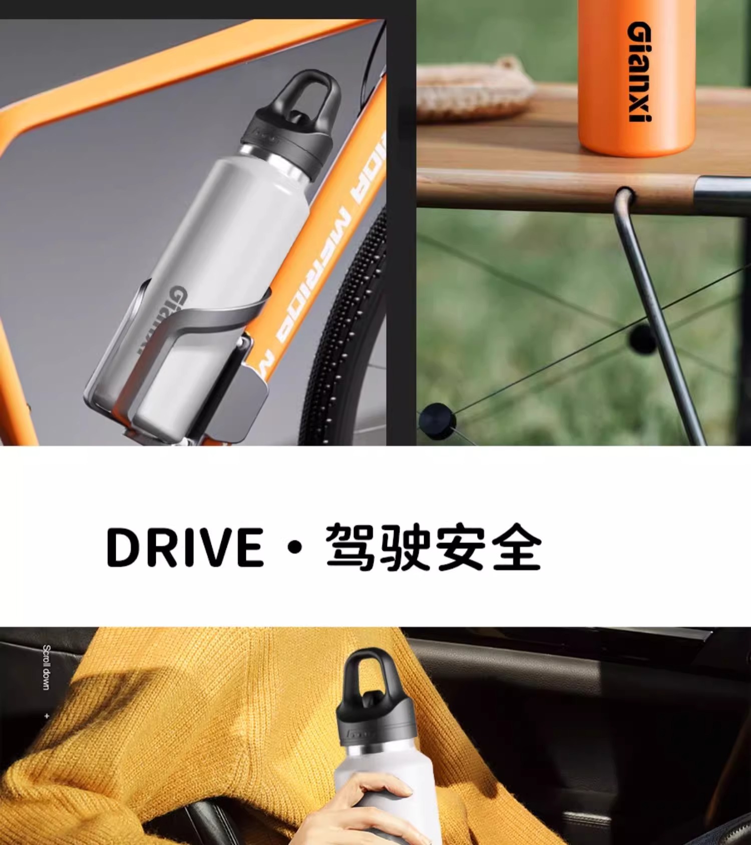 骑行车载一键开盖泡茶保温杯户外运动便携不锈钢保温大容量水杯