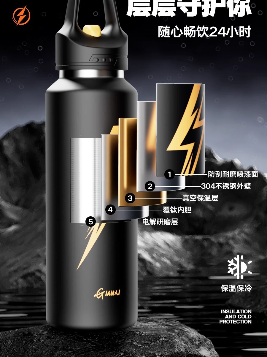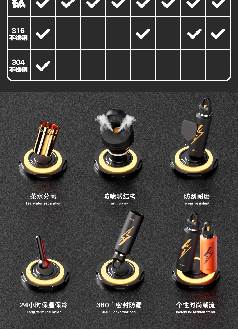 - 【闪电覆钛+独立茶仓】星辰黑900ml